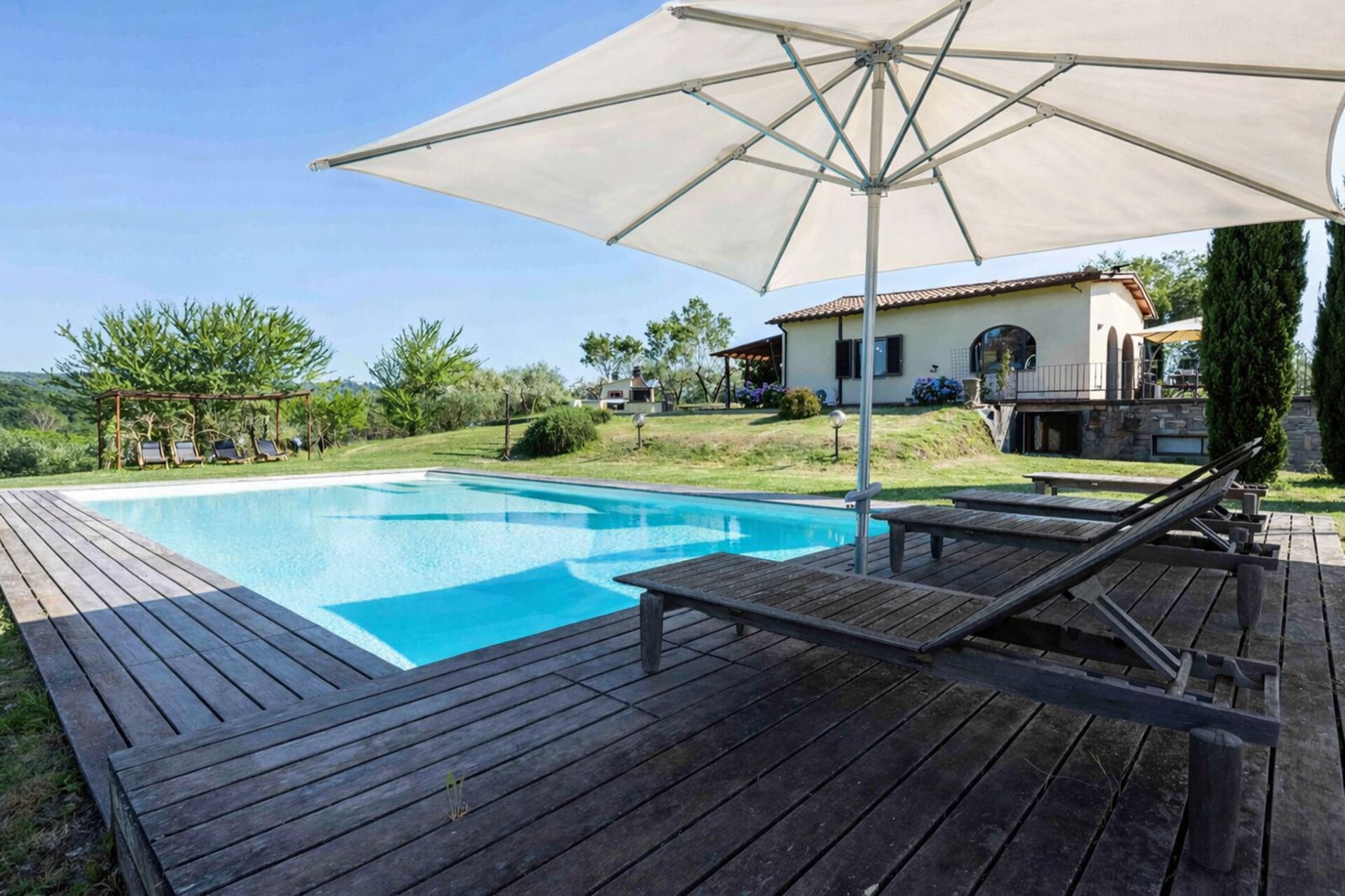 Tras llegar será bienvenido por el propietario u ama de llaves y encontrará una hermosa propiedad limpia y acogedora with views of las colinas ideal para unas vacaciones tranquilas en Toscana. Después un día pasado haciendo compras, disfrute de una buena copa de vino con sus amigos y su familia al lado de la piscina - lo mejor para relajarse después de un largo día. Hay una cocina incluso máquina de café, microondas y nevera, así como , muchas vajillas y cubiertos para hasta seis personas. Si prefiere comer afuera 'al fresco', hay el jardín, un espacio bien equipado donde puede disfrutar el buen clima comiendo afuera.