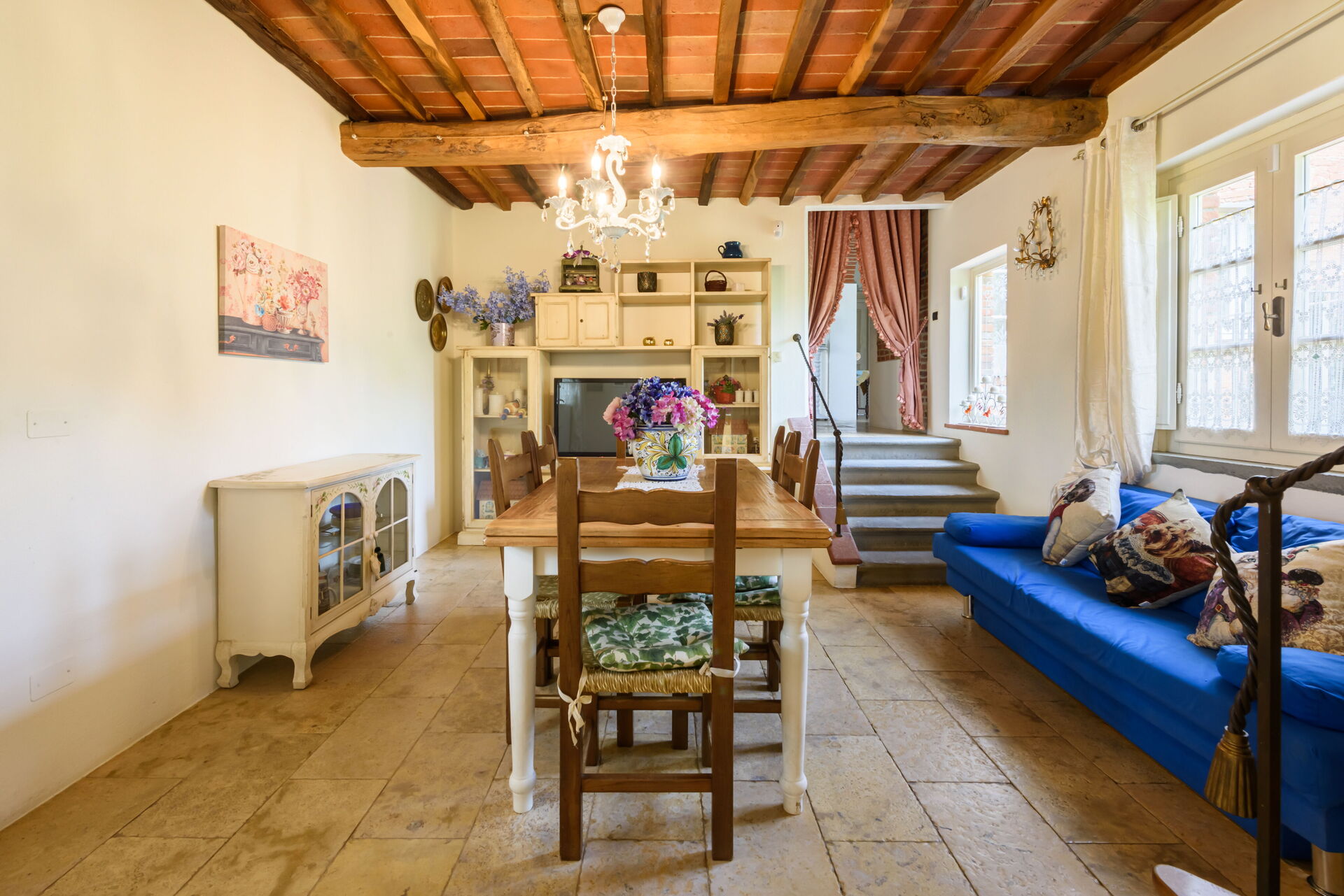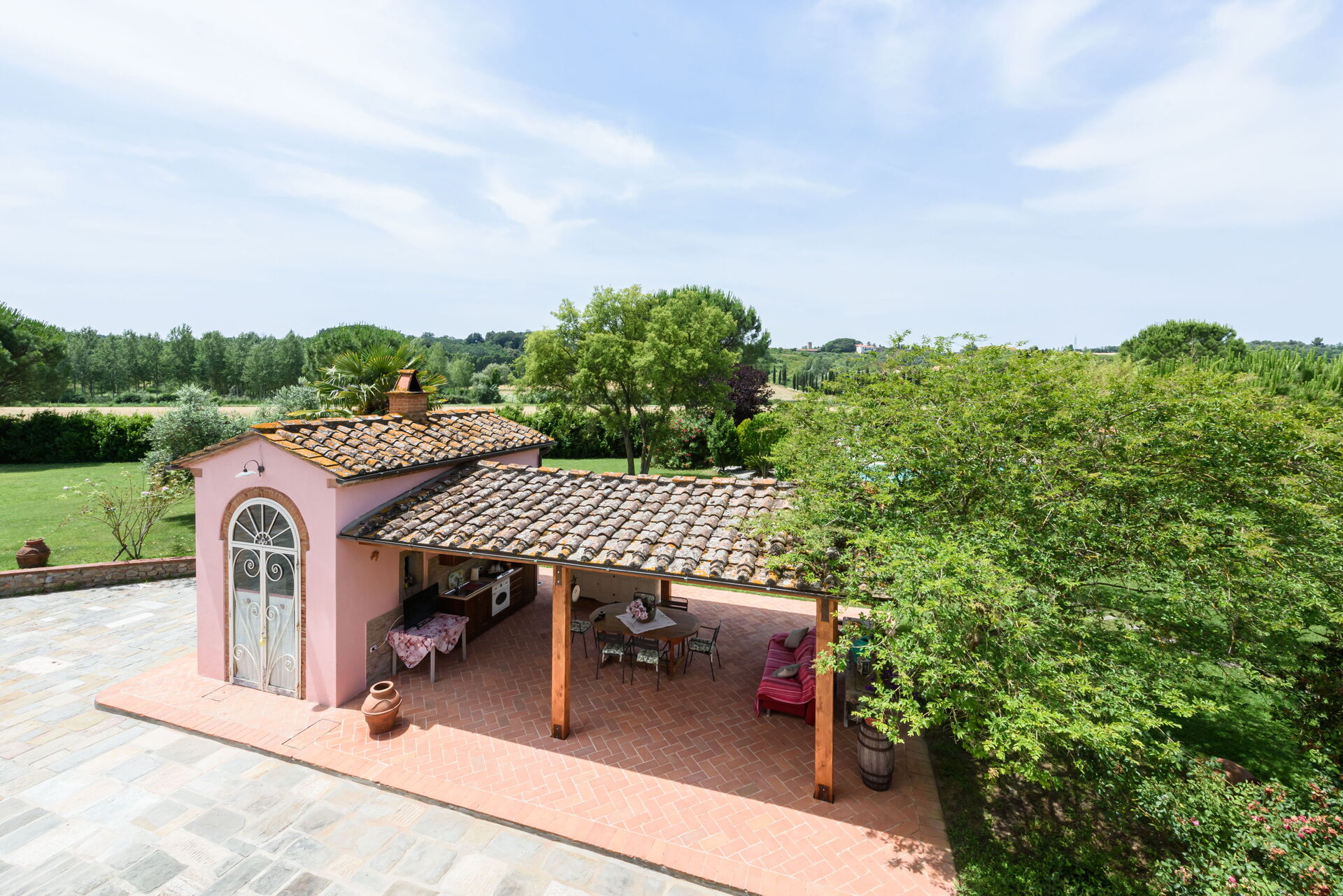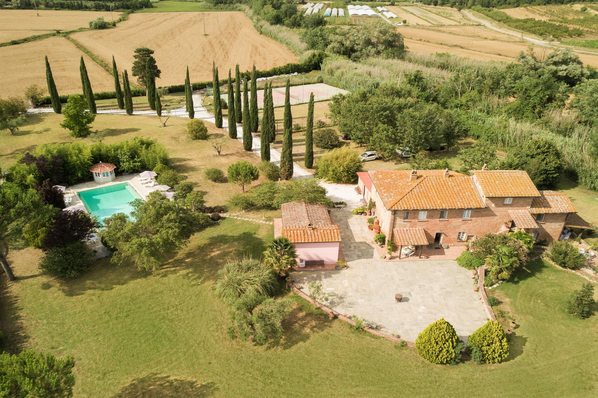 Tras llegar a Villa Lorenzana encontraras una estupenda propiedad limpia y acogedora perfecta para unas vacaciones tranquilas en Toscana. Después un día pasado a visitar lugares turísticos, disfrute de una buena copa de vino con sus amigos y su familia al lado de la piscina - lo mejor para descansar después de un largo día. Para su placer, afuera hay pista de tenis y barbacoa. Si le gusta cocinar para su familia y amigos hay una cocina bien equipada incluso máquina de café, microondas, tostador y nevera, así como , muchas vajillas y cubiertos para hasta 12 personas. Si prefiere comer afuera 'al fresco', hay el jardín, un espacio bien equipado donde puede disfrutar el buen clima comiendo afuera.