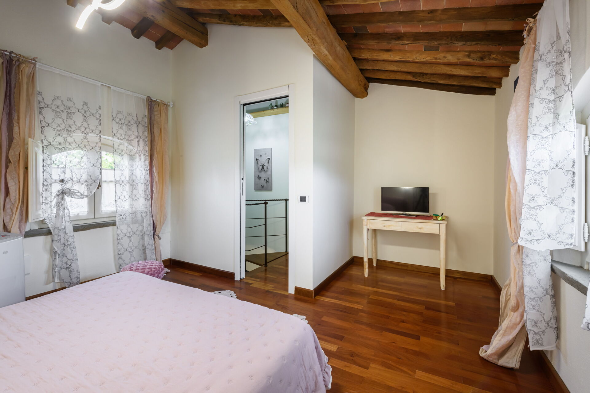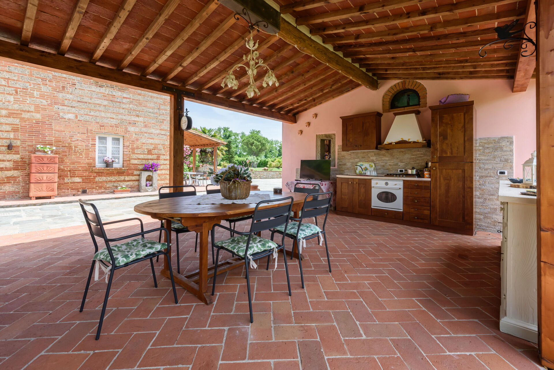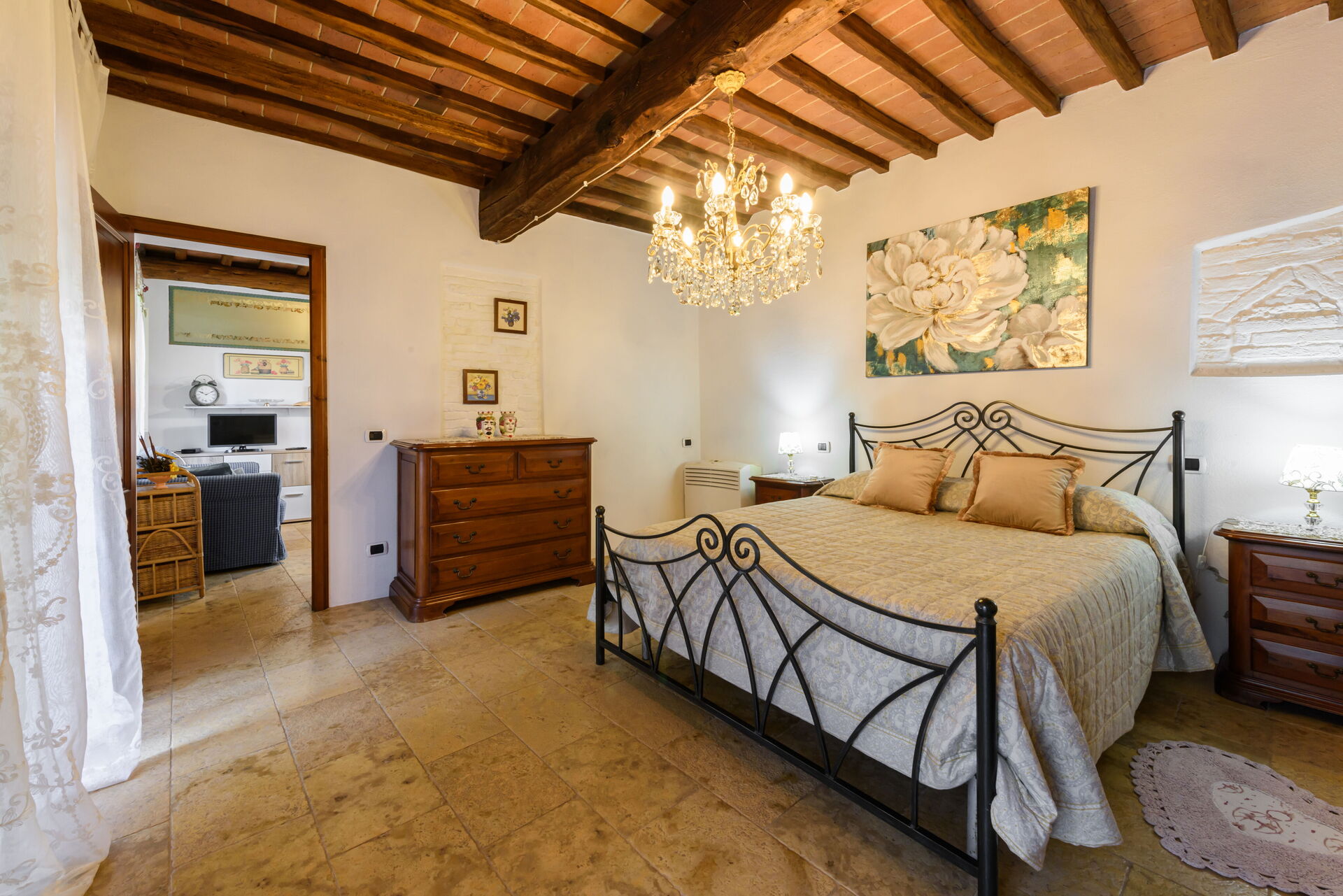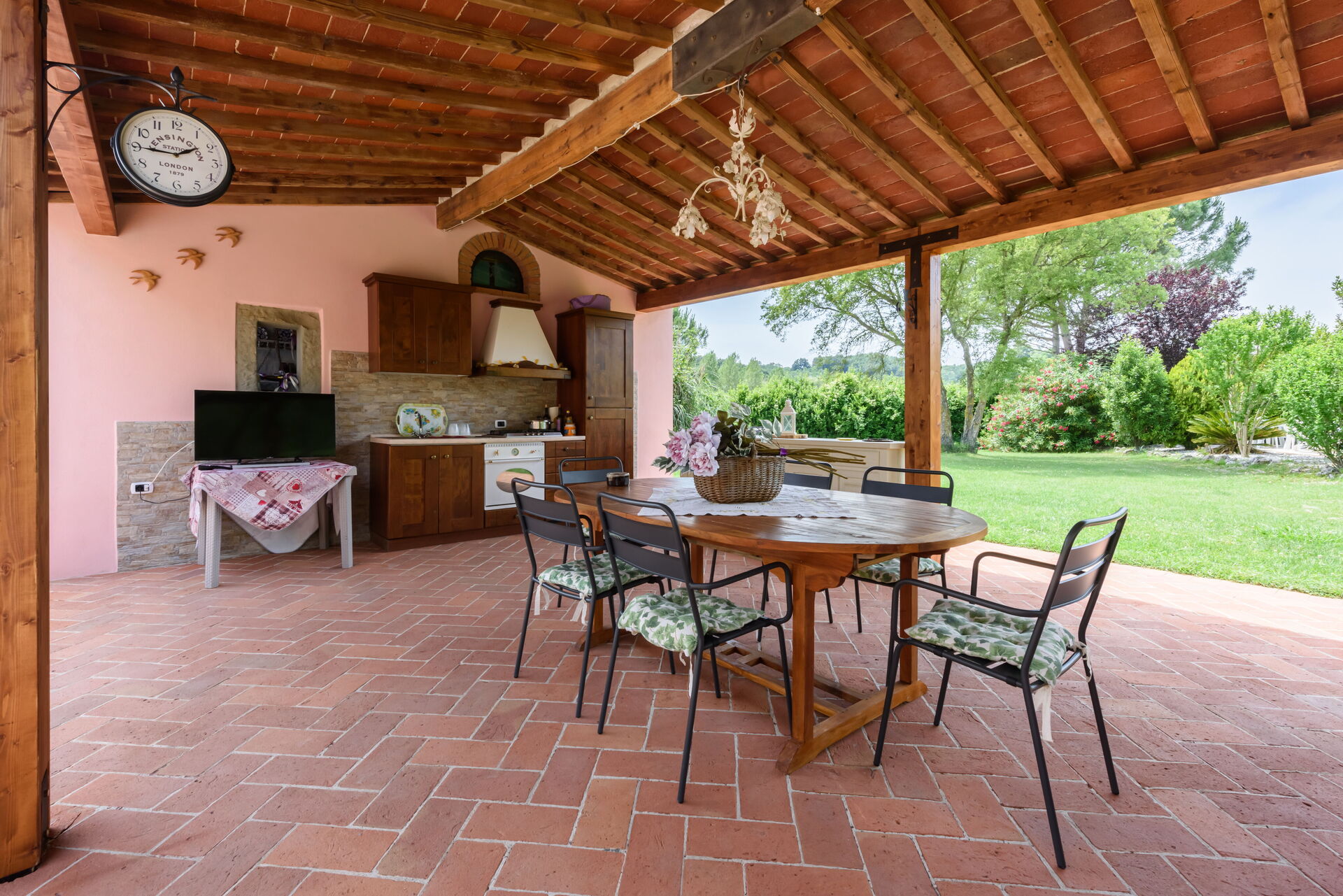 Tras llegar a Villa Lorenzana encontraras una estupenda propiedad limpia y acogedora perfecta para unas vacaciones tranquilas en Toscana. Después un día pasado a visitar lugares turísticos, disfrute de una buena copa de vino con sus amigos y su familia al lado de la piscina - lo mejor para descansar después de un largo día. Para su placer, afuera hay pista de tenis y barbacoa. Si le gusta cocinar para su familia y amigos hay una cocina bien equipada incluso máquina de café, microondas, tostador y nevera, así como , muchas vajillas y cubiertos para hasta 12 personas. Si prefiere comer afuera 'al fresco', hay el jardín, un espacio bien equipado donde puede disfrutar el buen clima comiendo afuera.