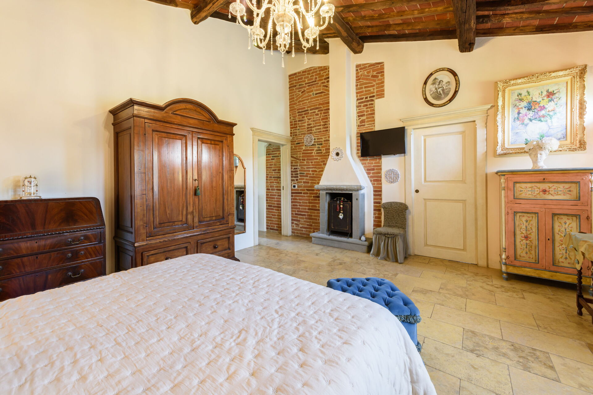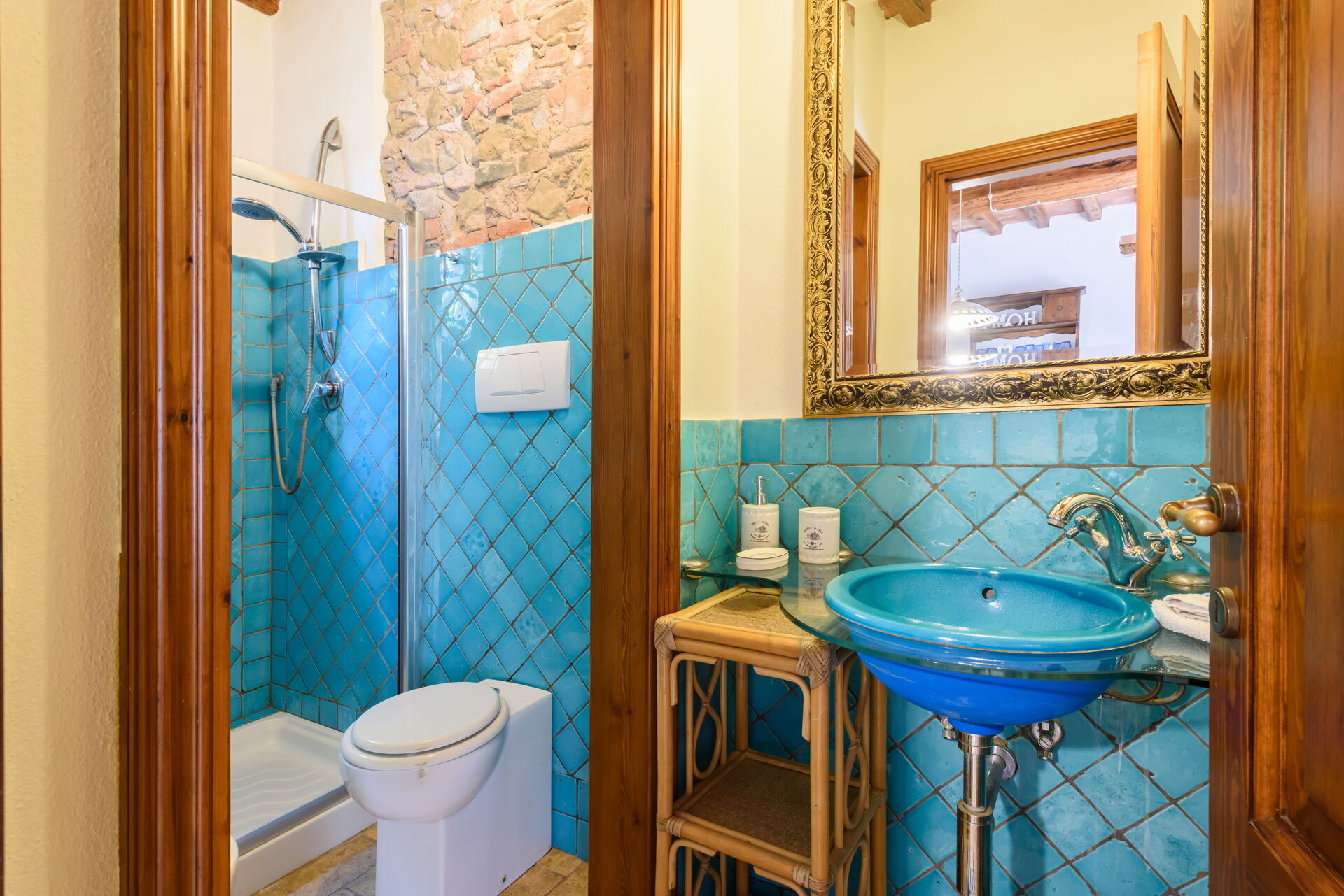 Uno de los baños con ducha no está en el edificio principal sino en un anexo con acceso a través del jardín, también hay otra habitación independiente con cocina y horno de leña/pizza.
