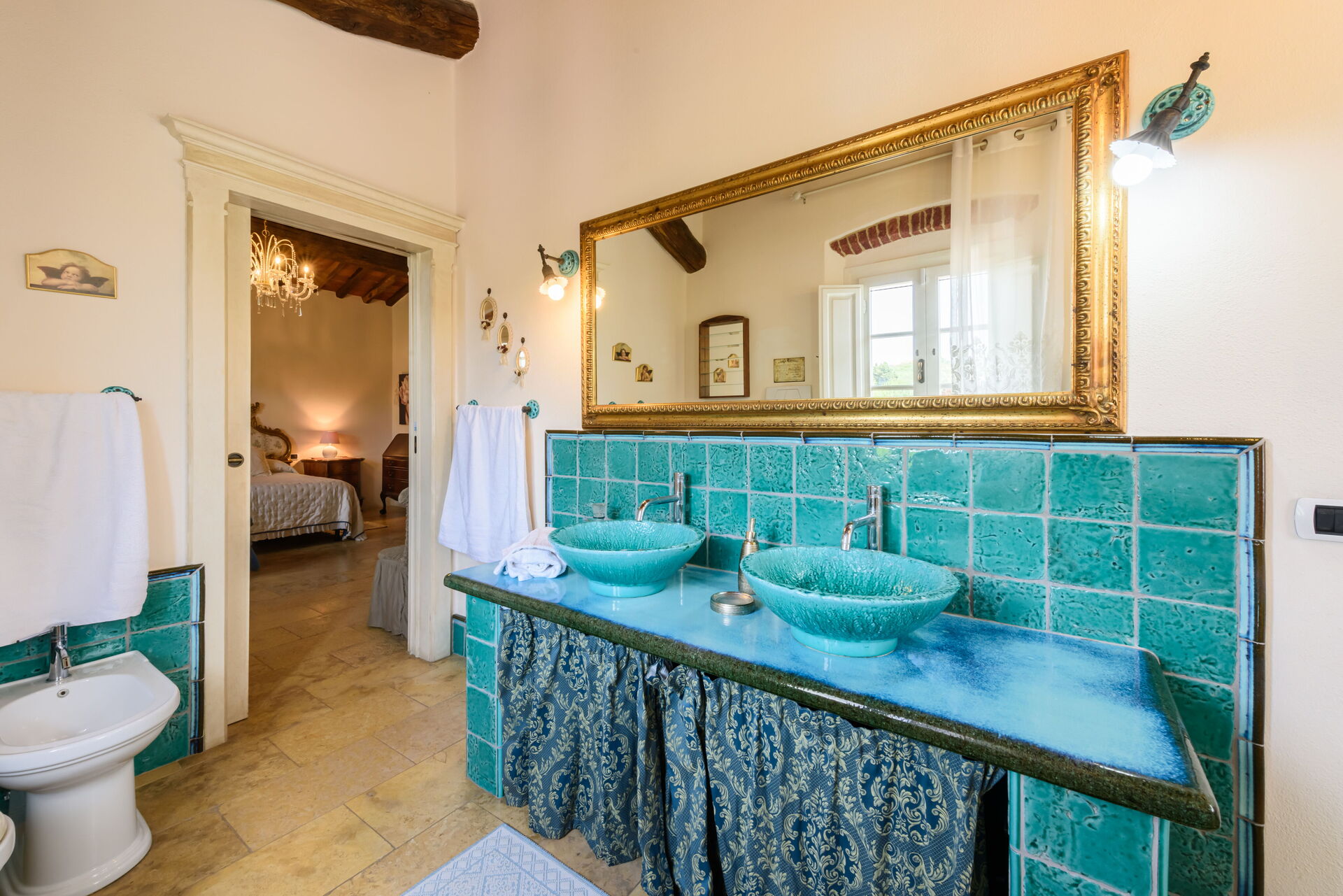 Baño 2: lavabo, baño, bidé, bañera.