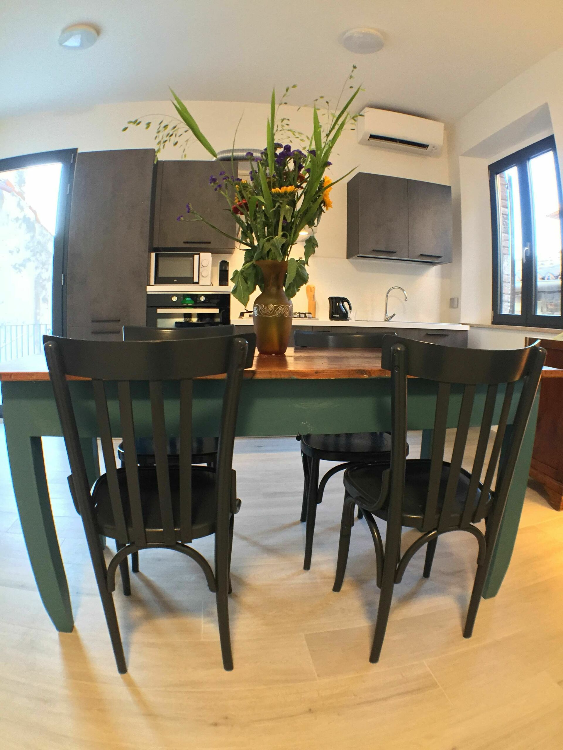 Cocina-salón (25 m2): cocina bien equipada, mesa de comedor (gente: 6), lavavajillas, frigorífico, congelador, microondas, cocina de gas, horno, plancha, máquina de café italiana, sofa (gente: 3), WIFI internet, aire acondicionado, silla alta, televisión, detector de humo, detector de co2, acceso a la terraza.