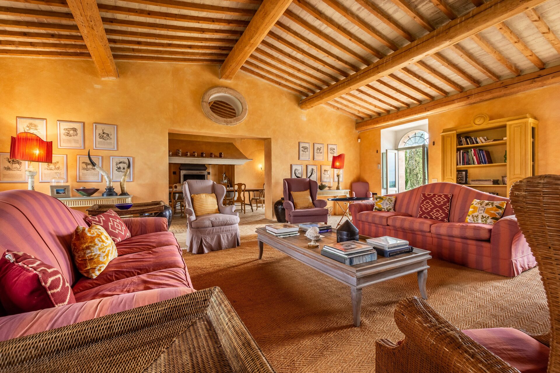 Salón 1: dos sofas (gente: 6), cuatro sillones, chimenea, WIFI internet, televisión, reproductor de video, estéreo hifi, acceso al jardín, acceso a la terraza.