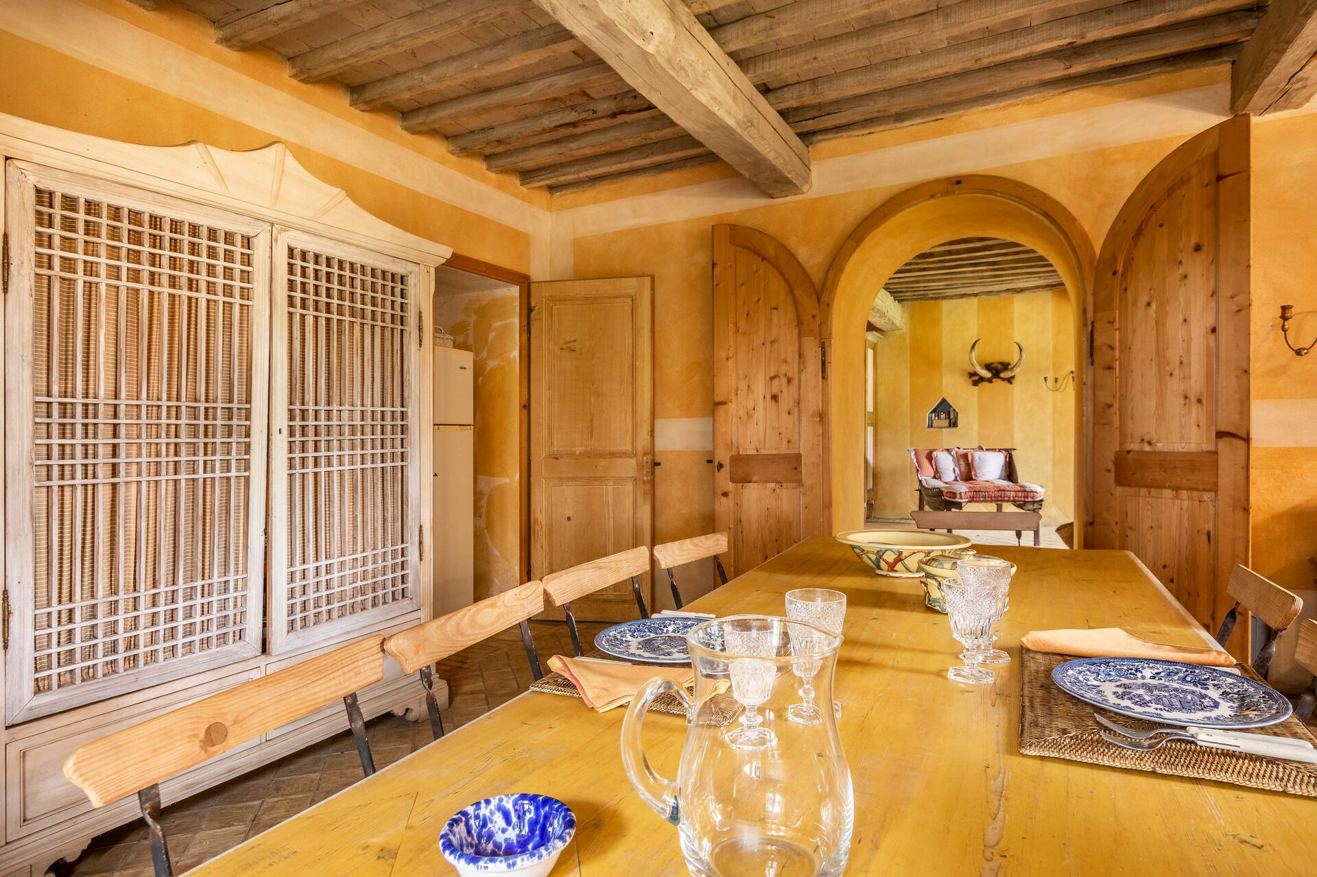 Comedor: mesa de comedor (gente: 16), WIFI internet, chimenea, acceso al jardín, acceso a la terraza.
