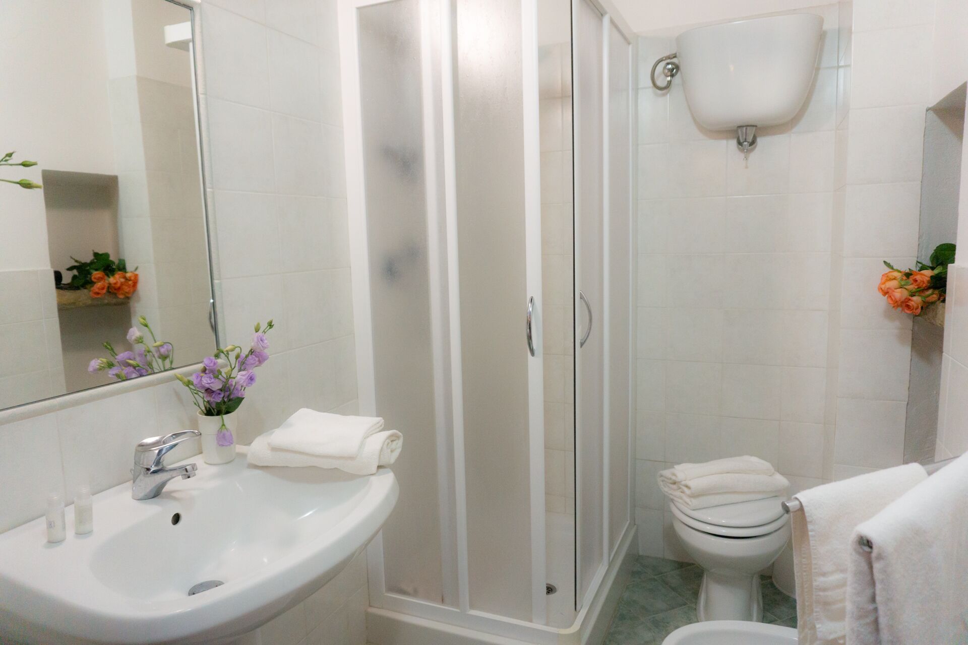 Habitación con baño 2: cama doble, WIFI internet, lavabo, baño, bidé, ducha.