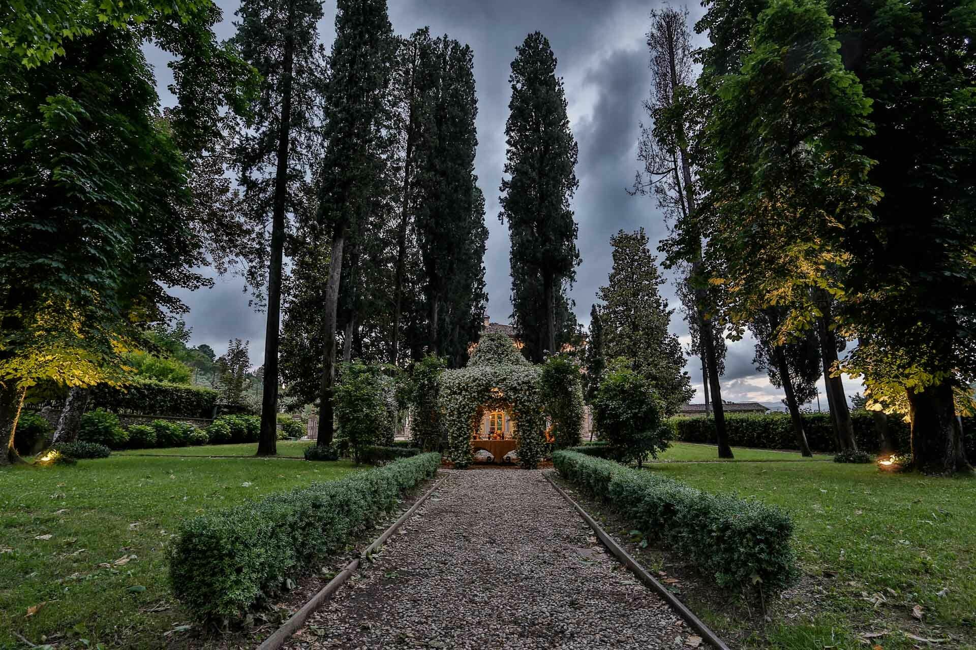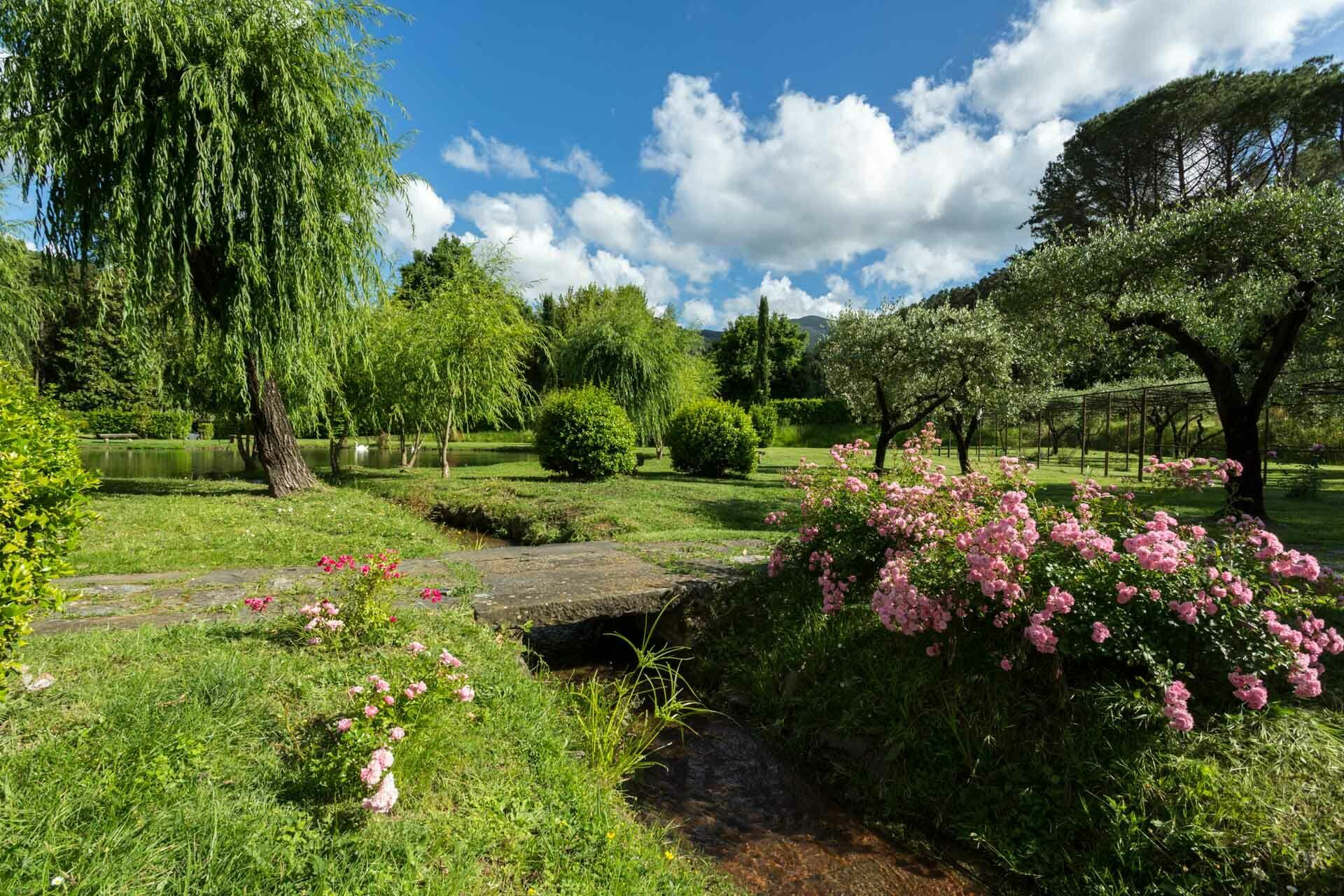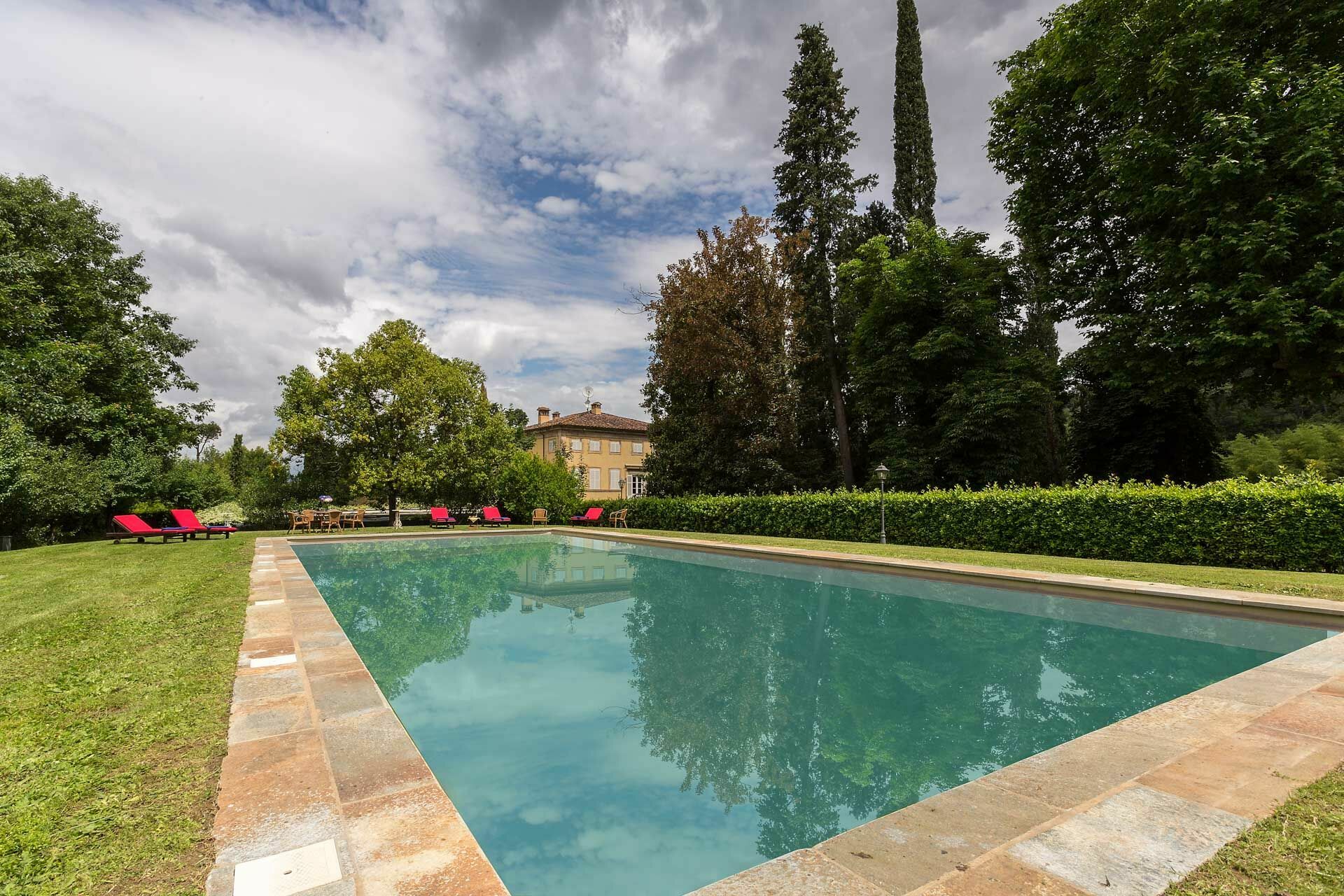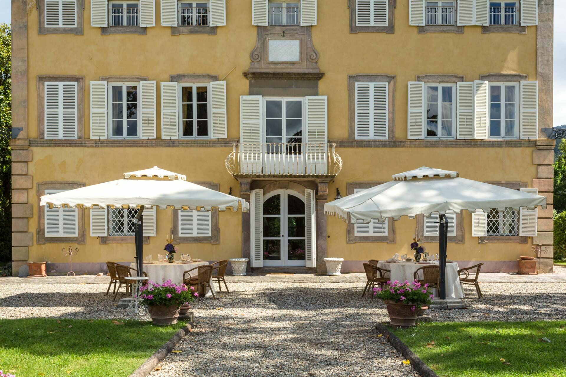 exclusive and elegant atmosphere. The villa is nestled in the midst of tranquil Italian gardens through which