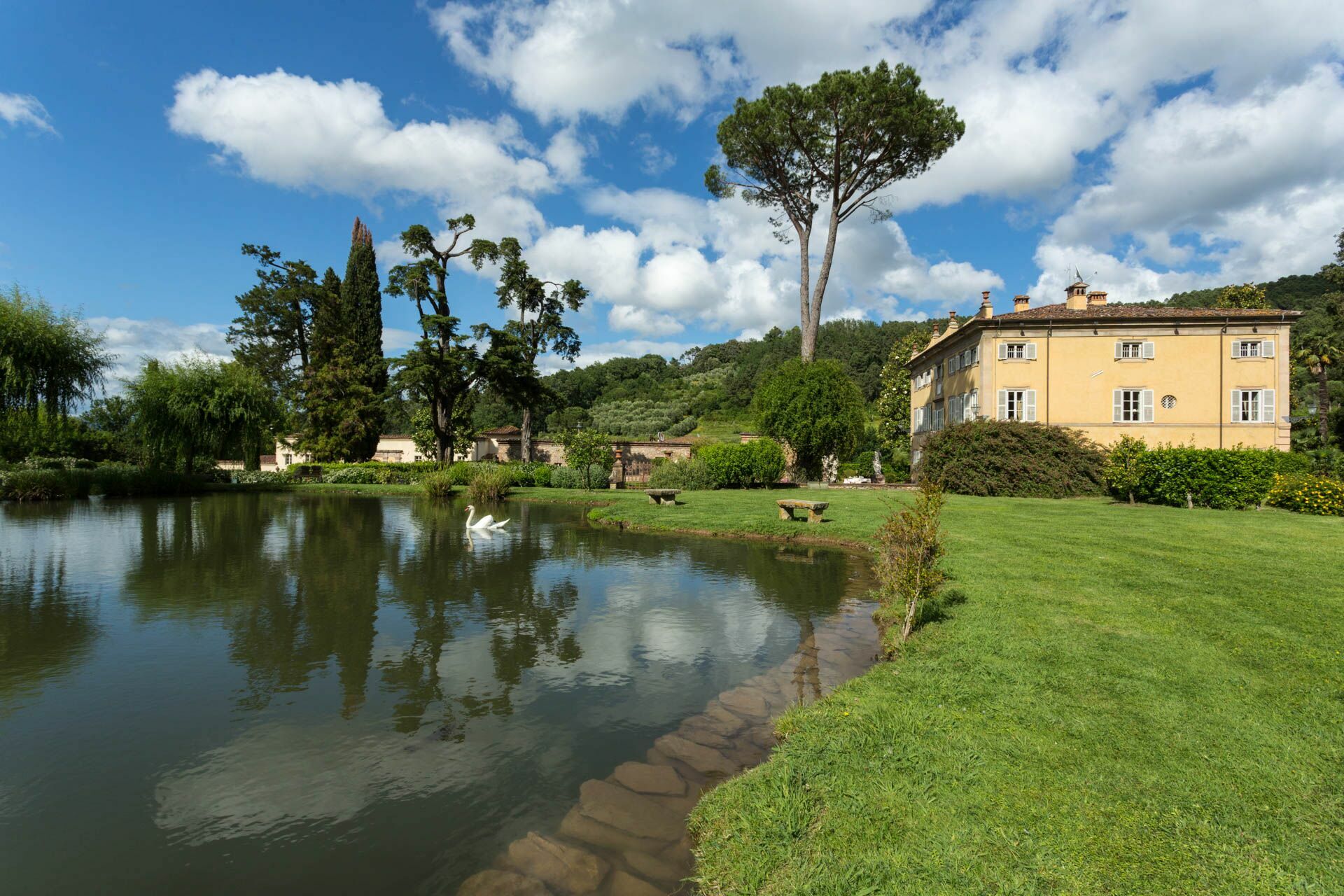 and private pond with graceful swans. Our guests will profit from 2 huge alfresco dining areas and a