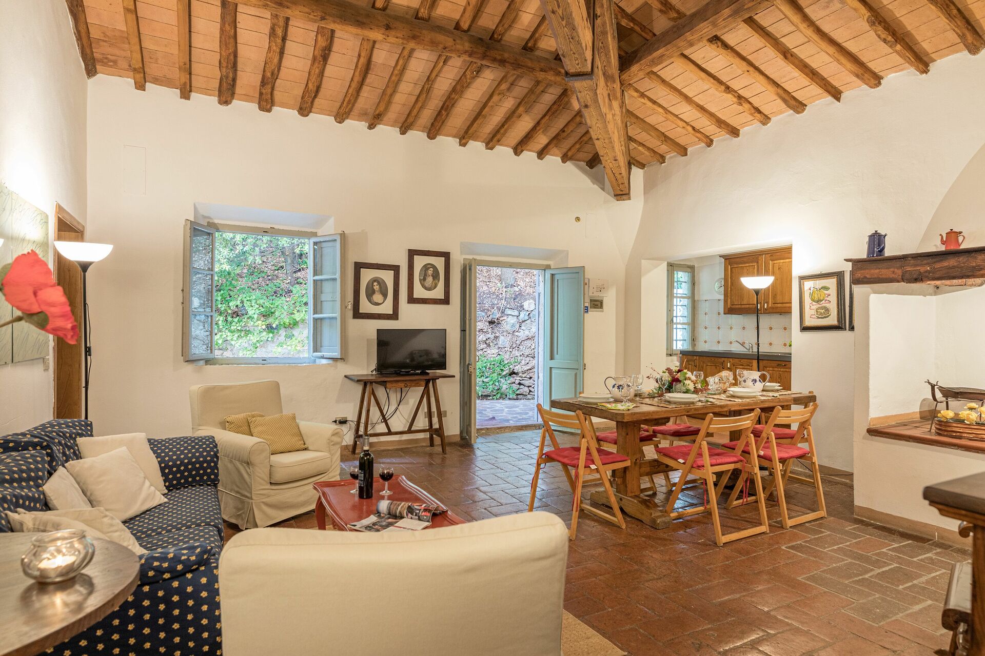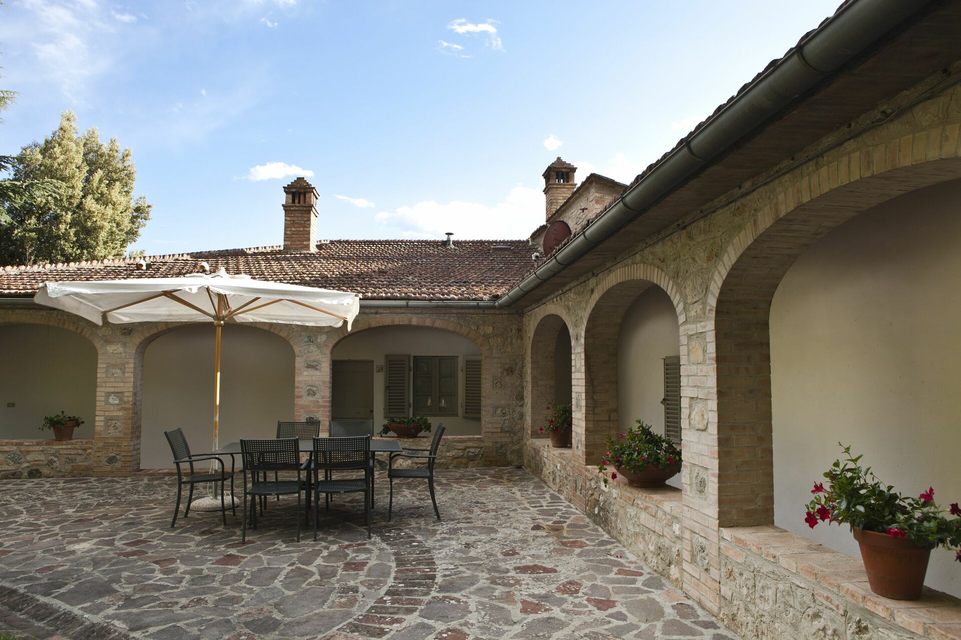 Tras llegar a Chianti Resort encontraras una hermosa propiedad limpia y acogedora con vista sobre las colinas y las montañas ideal para unas vacaciones tranquilas en Toscana. Después un día pasado haciendo compras, disfrute de una buena copa de vino con sus amigos y su familia al lado de la piscina - lo mejor para relajarse después de un largo día. Para su placer, afuera hay porche, parque infantil y barbacoa. Esta propiedad tiene unidades multiplas perfecta para un grupo numeroso de amigos y conocidos que viajan juntos y que quieren tener su propio espacio privado pero con areas comunes, como el parque y la piscina, donde estar todos juntos en grupo. Cada piso tiene su cocina bien equipada para la preparación de comidas.