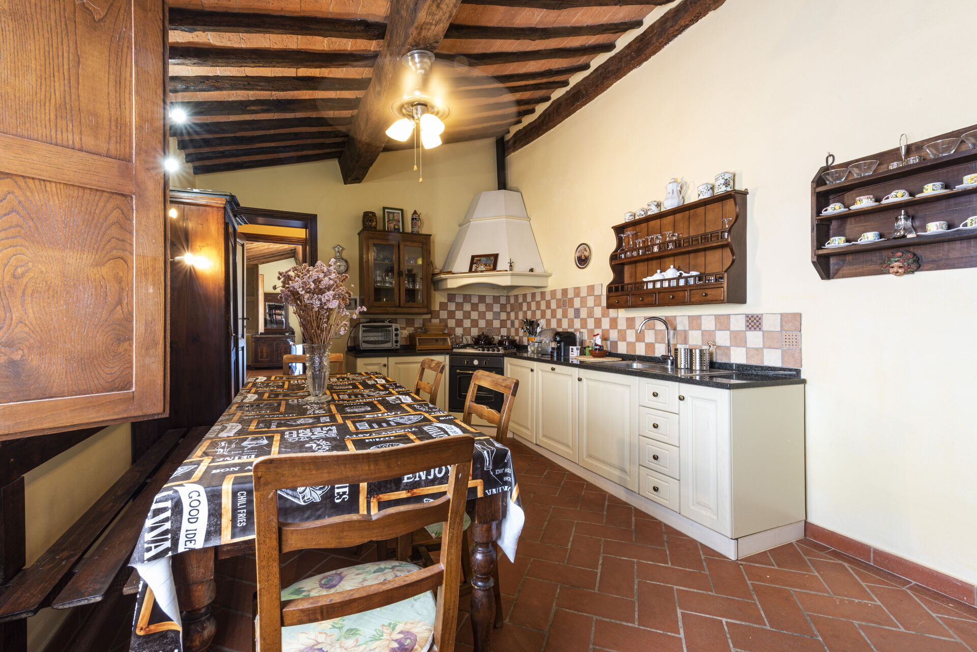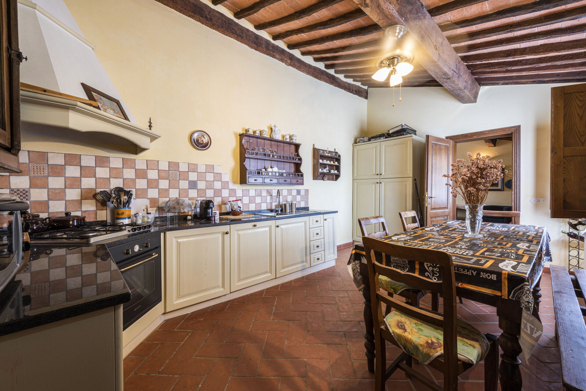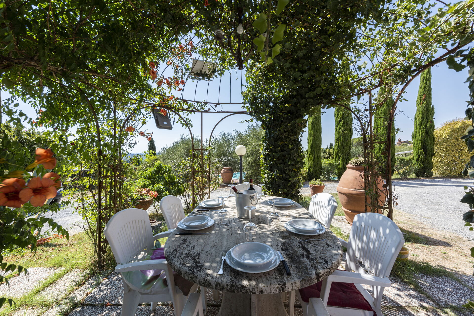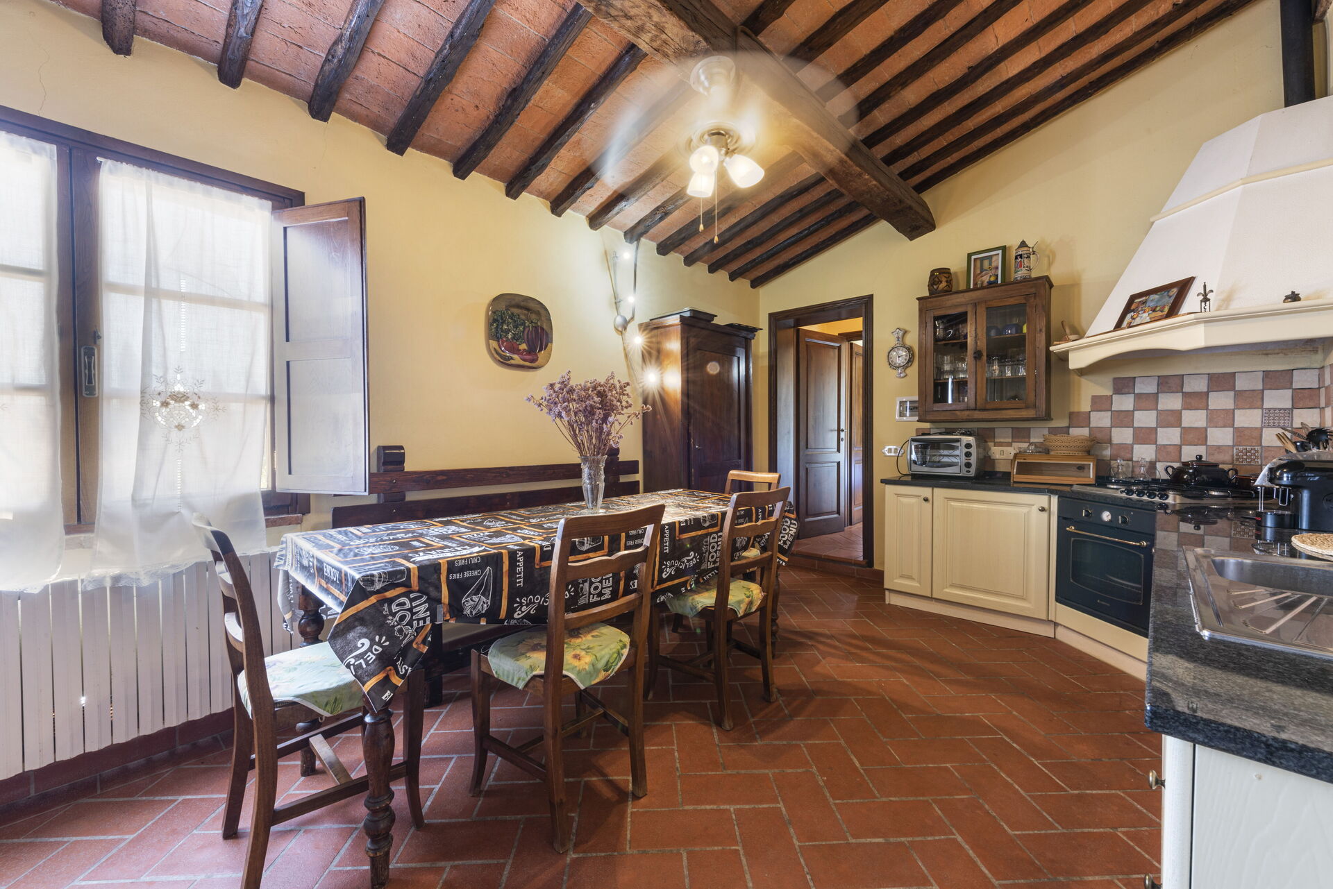 Tras llegar encontrará una hermosa propiedad limpia y acogedora ideal para unas vacaciones relajantes en Toscana. Para su disfrute encontrará una piscina privada donde puede descansar disfutando de un buen refresco después de un día pasado a visitar lugares turísticos. Otras comodidades disponibles afuera son parrilla y patio. Hay una cocina incluso máquina de café, microondas y nevera, así como , muchas vajillas y cubiertos para hasta 12 personas. Si prefiere comer afuera 'al fresco', hay patio, un espacio bien equipado donde puede disfrutar el buen clima comiendo afuera.