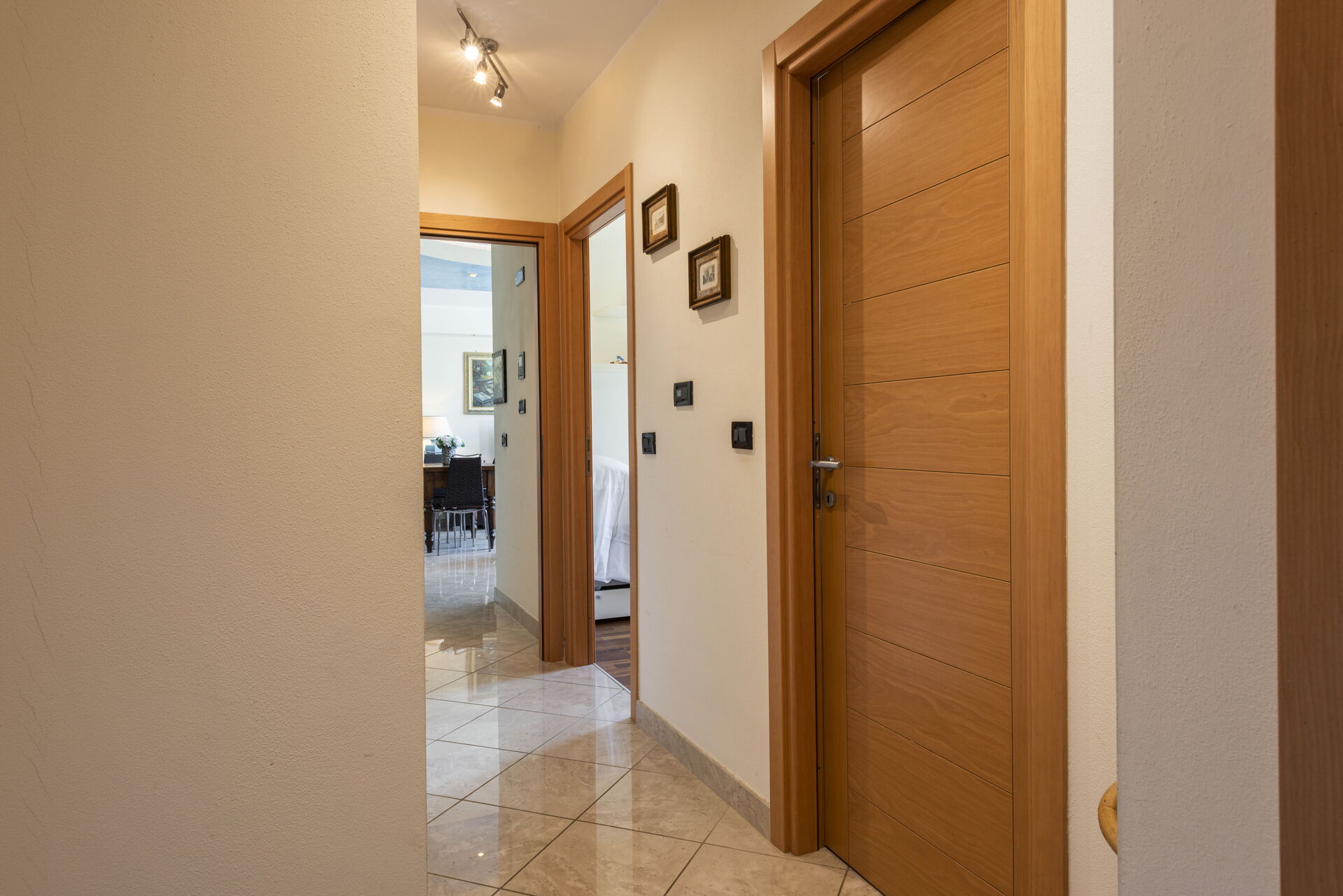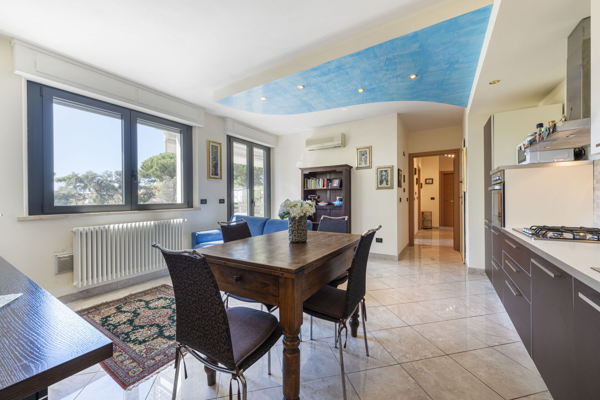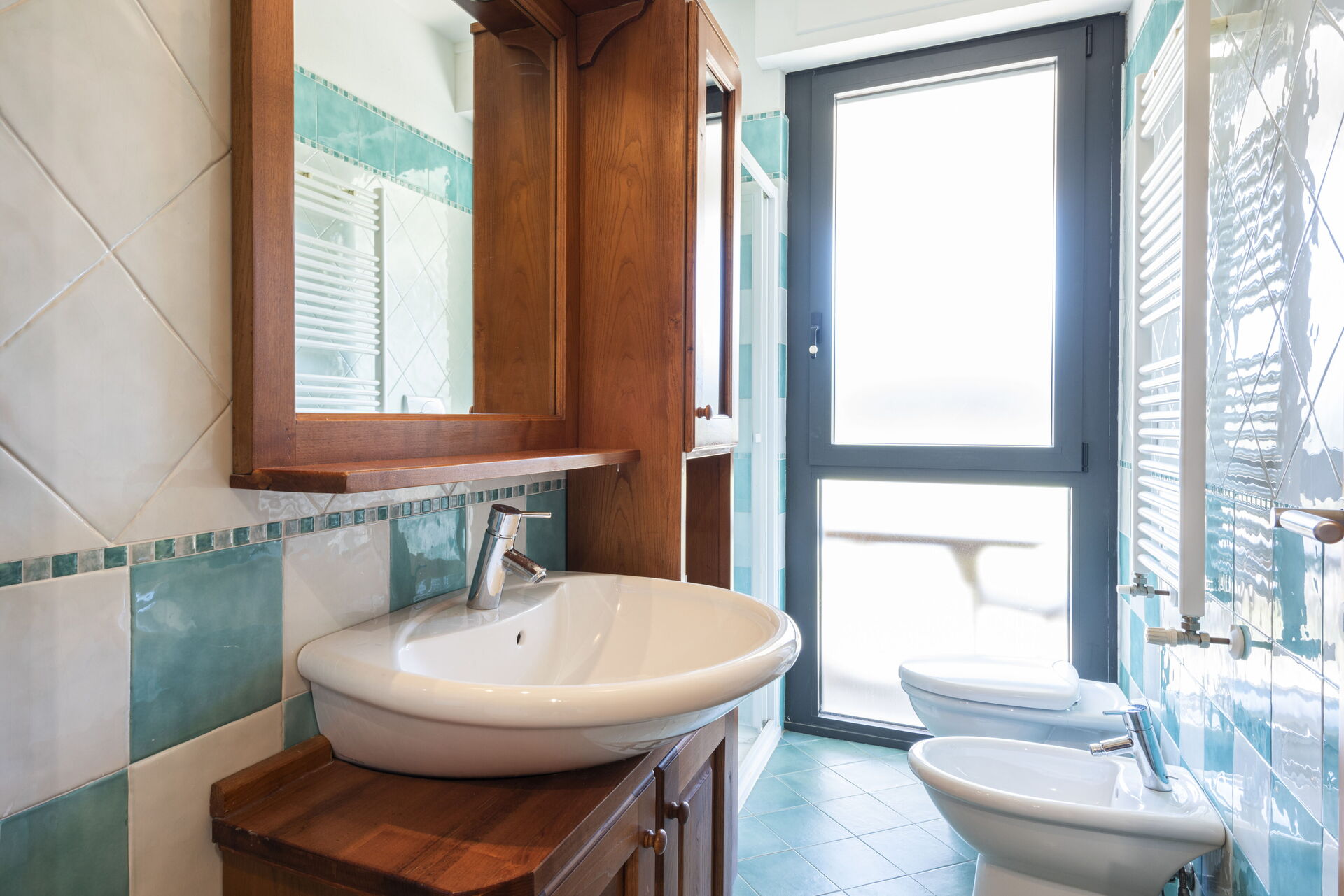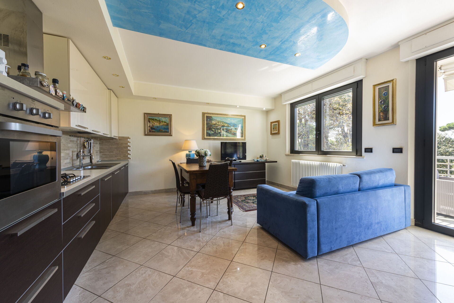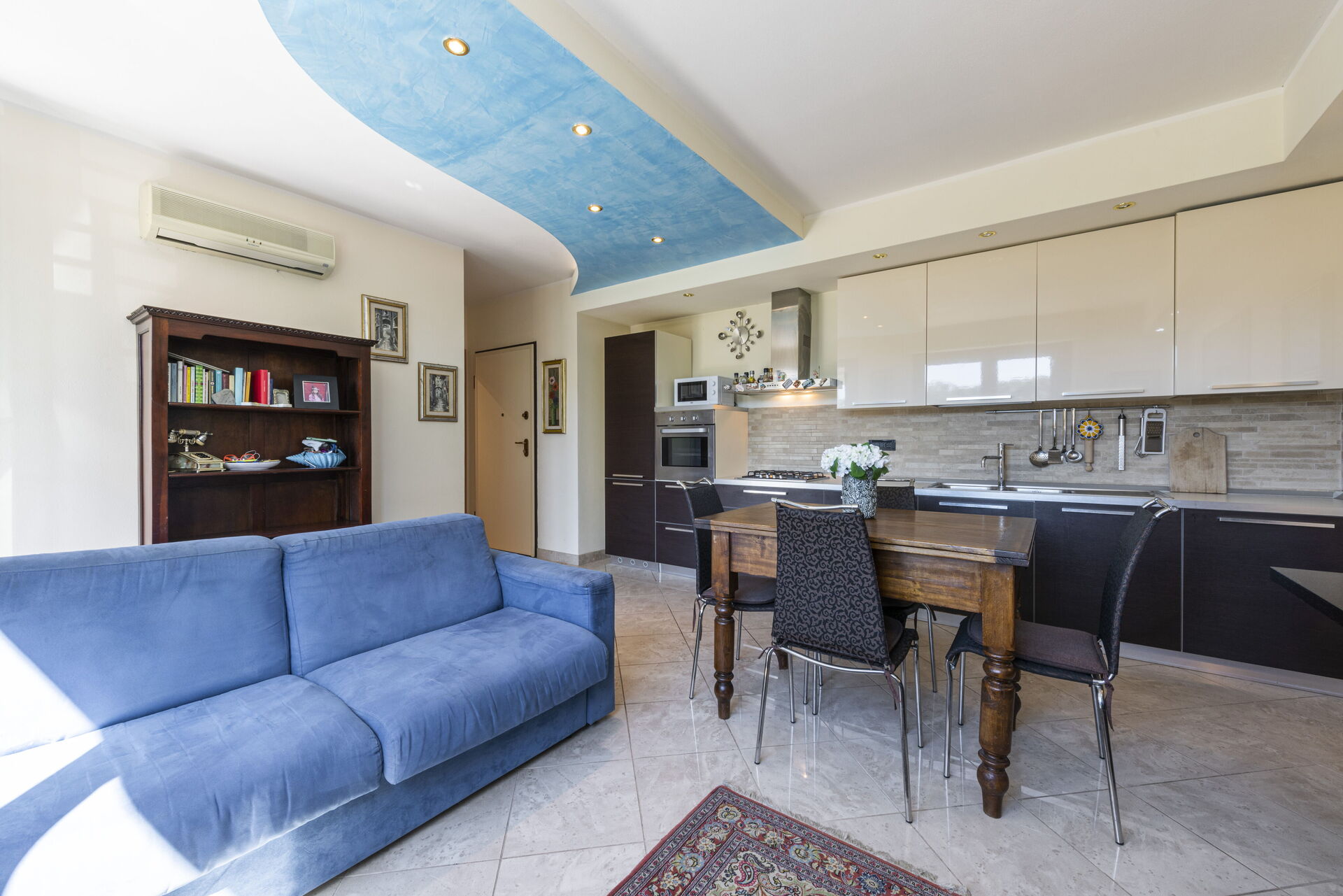 Cocina-salón: mesa de comedor (gente: 6), lavavajillas, frigorífico, congelador, microondas, cocina de gas, horno, tostadora, máquina de café italiana, lavadora, sofá cama de matrimonio, aire acondicionado, televisión, acceso al balcón.