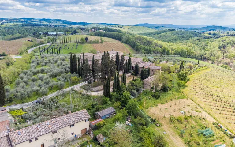 Chianti Classico y, sin duda, uno de los productores de vino más antiguos de la Toscana. El castillo fue construido en el emplazamiento de una antigua torre de vigilancia, la fortaleza de Cepparello, que se encontraba un poco más abajo de la ladera y fue abandonada y destruida tras la batalla de Montaperti en 1260. Construido en el siglo 14, el Castello della Paneretta es un impresionante bastión medieval caracterizado por murallas macizas, una almena güelfa y torres en las esquinas, todo ello enmarcado por una torre del homenaje en el centro.