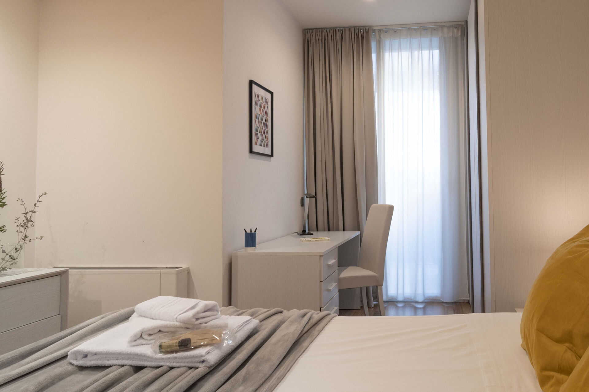 Habitación: cama doble, WIFI internet, aire acondicionado, sillón, escritorio, acceso a la terraza.