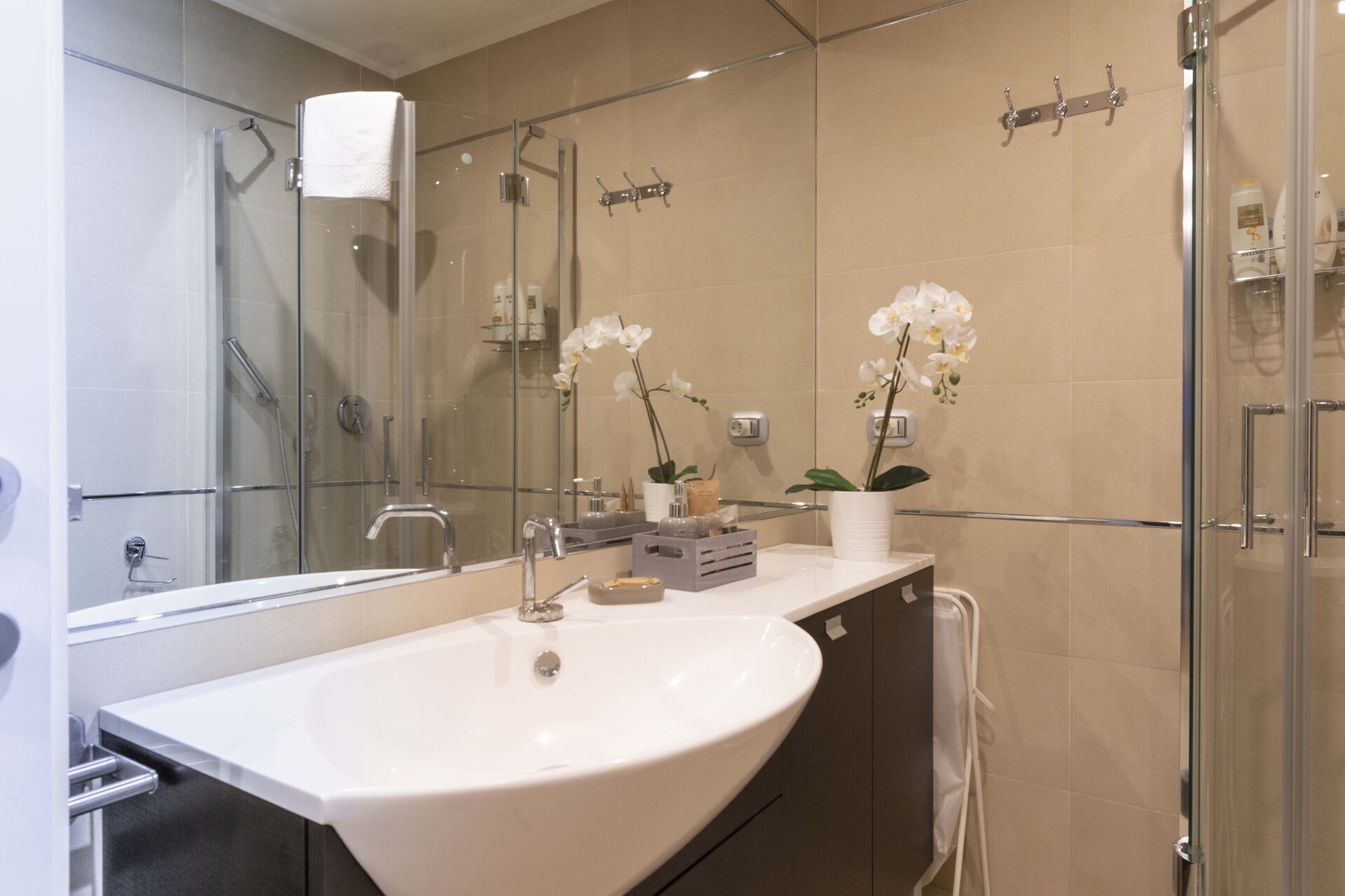 Baño: lavabo, baño, bidé, ducha, secador, lavadora, sin ventana.