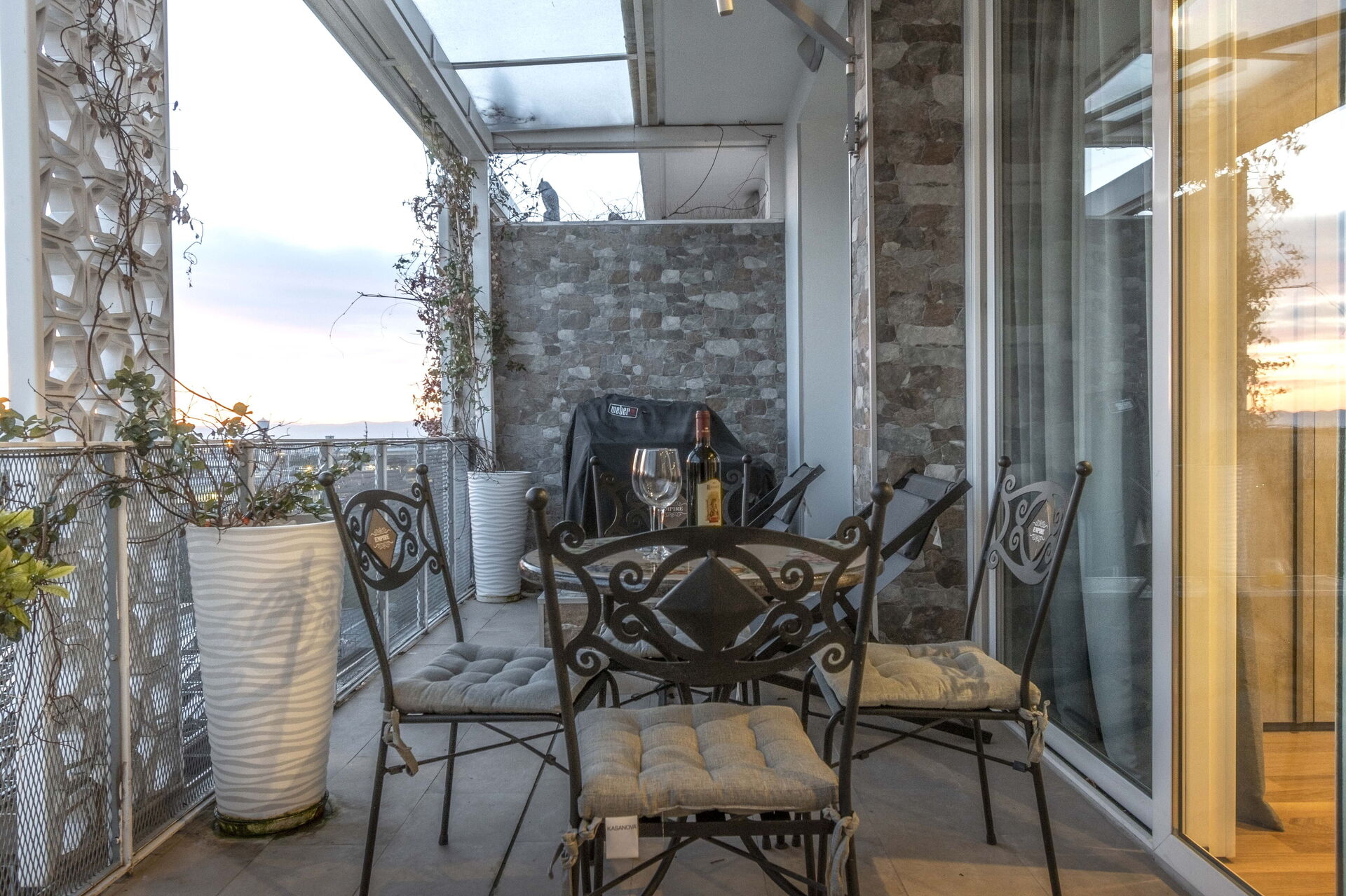 Cocina-salón: cocina bien equipada, mesa de comedor, lavavajillas, frigorífico, congelador, microondas, horno, tostadora, máquina de café italiana, máquina de café americana, escritorio, sofá cama de matrimonio, WIFI internet, internet, aire acondicionado, tv vía satélite, acceso a la terraza.