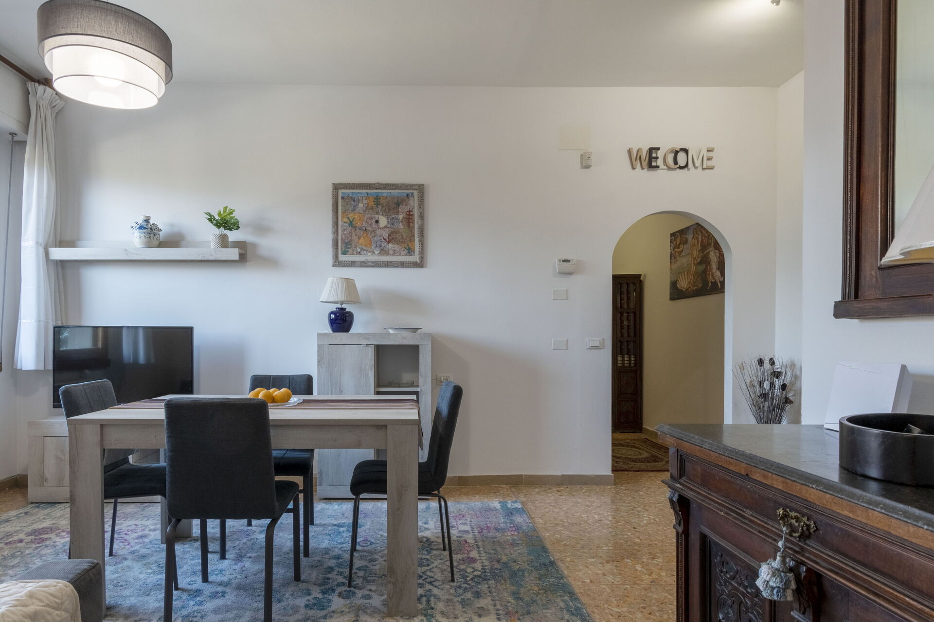 Salón: escritorio, mesa de comedor, sofá cama de matrimonio, WIFI internet, tv vía satélite.
