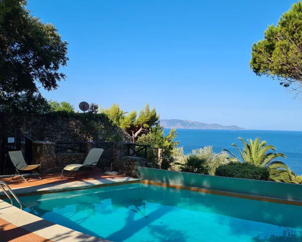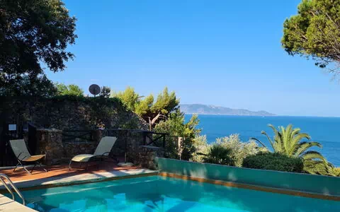 Acceso al Mar: Para llegar al mar, hay un sendero privado que solo puede ser recorrido a pie. La última parte del acceso consta de escalones y bordea el mar, lo que permite llegar a una encantadora piscina natural formada por las rocas con una plataforma para tomar el sol.