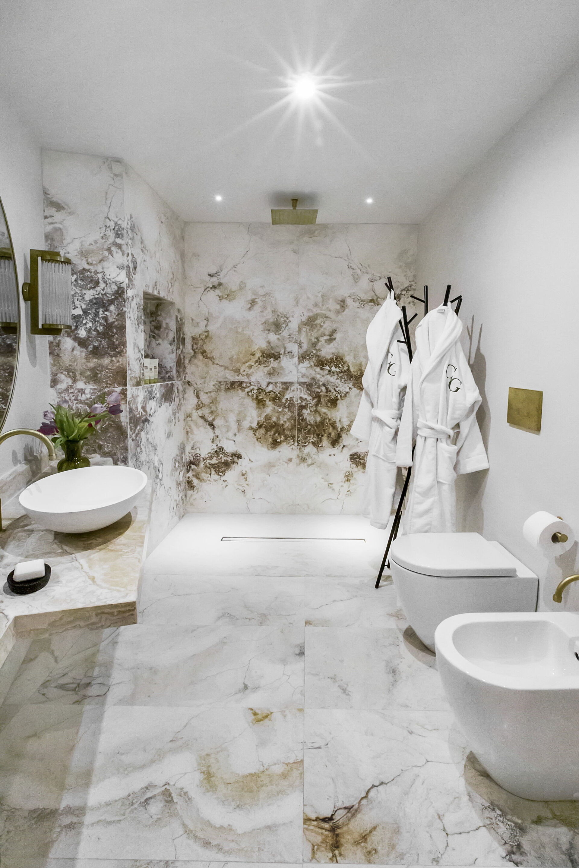 Habitación con baño 3: cama de matrimonio, WIFI internet, aire acondicionado, mosquitero, tv vía satélite, lavabo doble, baño, bidé, bañera, secador.