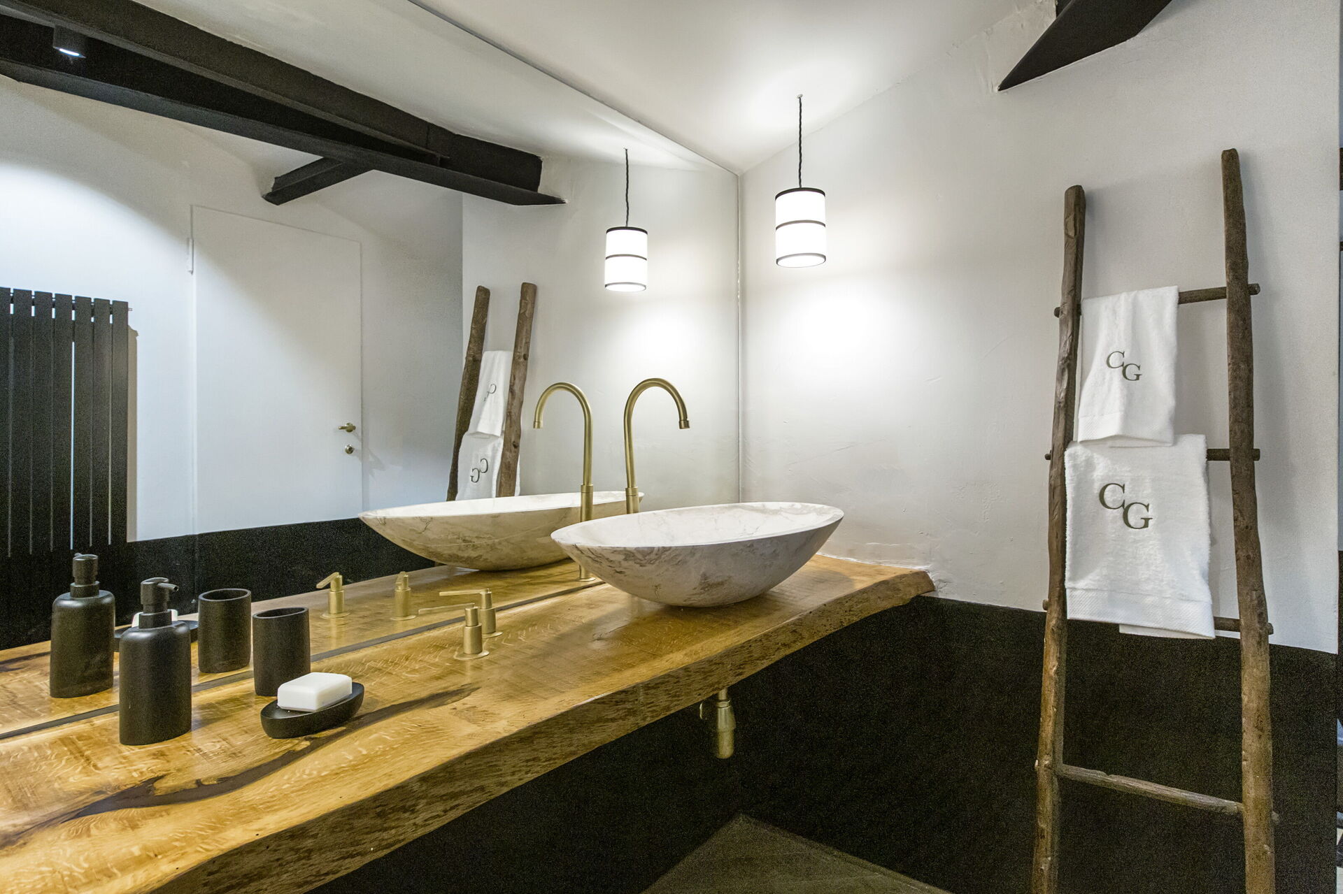 Habitación con baño 1: cama de matrimonio, WIFI internet, aire acondicionado, mosquitero, tv vía satélite, lavabo, baño, bidé, ducha, secador.