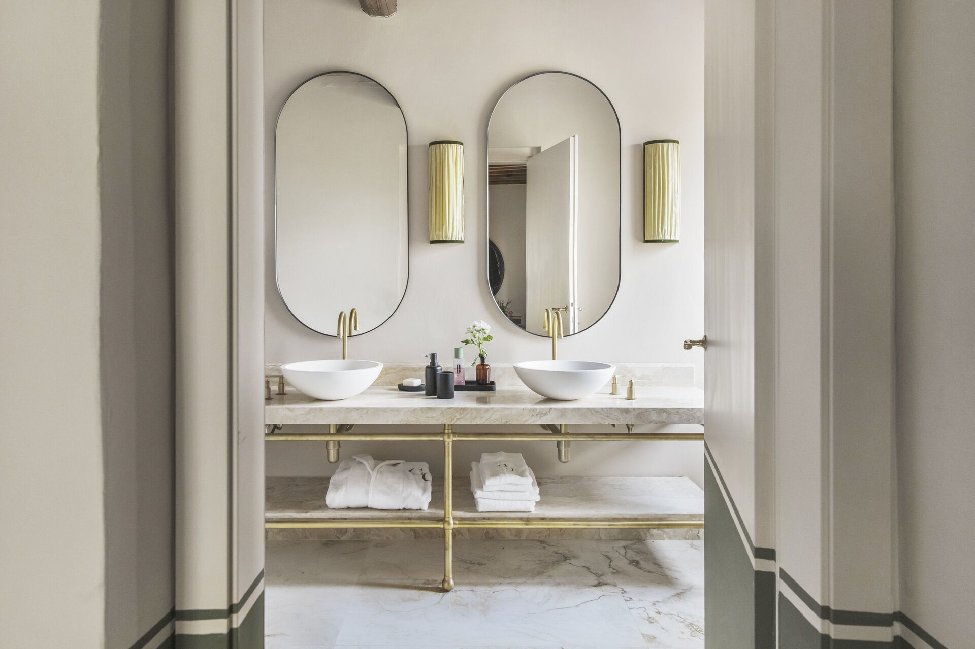 Habitación con baño 5: dos camas individuales, WIFI internet, aire acondicionado, mosquitero, lavabo, baño, bidé, ducha, secador.