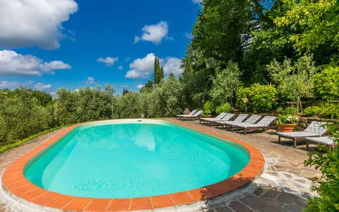Casa de dos viviendas "Ortensia", 500 m s.n. m., muy confortable de 3 plantas, del siglo 16°, rodeada de árboles y viñedos. 2 casas en la residencia. A 5 km del centro de Greve in Chianti, lugar aislado, tranquilo, elevado, a 200 m de un bosque, en el campo. Comunitario: piscina vallada (6 x 12 m, Disponible por temporada: 15.May. - 30.Sep. horario piscina: 80:00-20:00). Ducha/WC en zona de piscina, terraza-jardín, terraza, barbacoa, mantenimiento de la piscina a través del propietario/jardinero. En el inmueble: lavadora. Cambio de sábanas (suplemento extra). Cambio de toallas (suplemento extra). Posibilidad de limpieza diaria (extra). Posibilidad de cocinero (extra). Trastero a disposición. Acceso brusco durante 2200 km. En invierno las cadenas de nieve son necesarias. Aparcamiento junto a la casa. Tienda 5 km, tienda de comestibles 5 km, supermercado 5 km, restaurante 5 km, parada autobús "Greve in Chianti" 4 km. Campo de golf (18 hoyos) 25 km, tenis 5 km. Atracciones en los alrededores: Panzano in Chianti 7 km, Castellina in Chianti 20 km, Firenze 40 km, San Gimignano 46 km, Siena 46 km. A tener en cuenta: coche recomendable. Equipamiento para bebés (incluido). El propietario no acepta grupos de adolescentes/jóvenes.