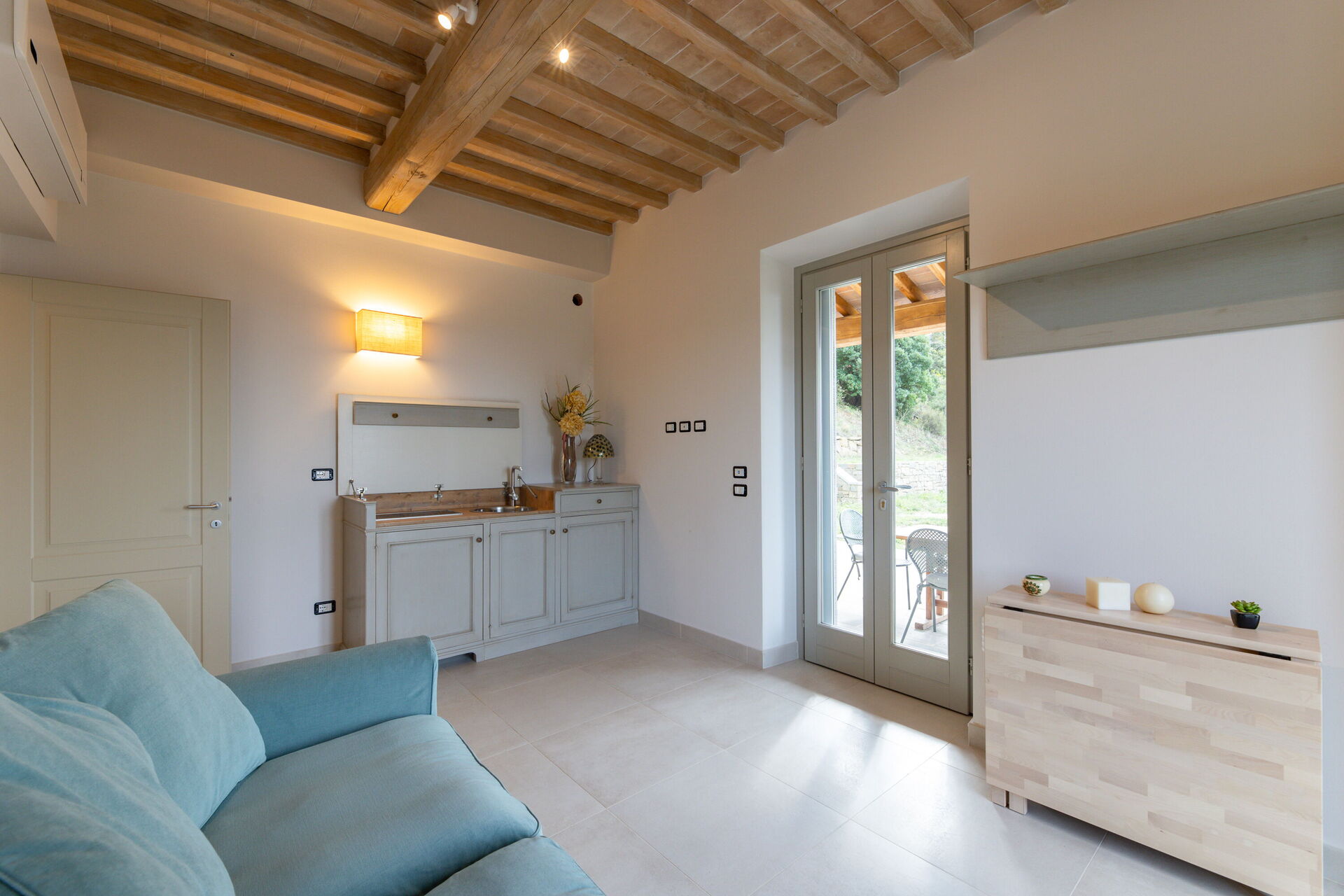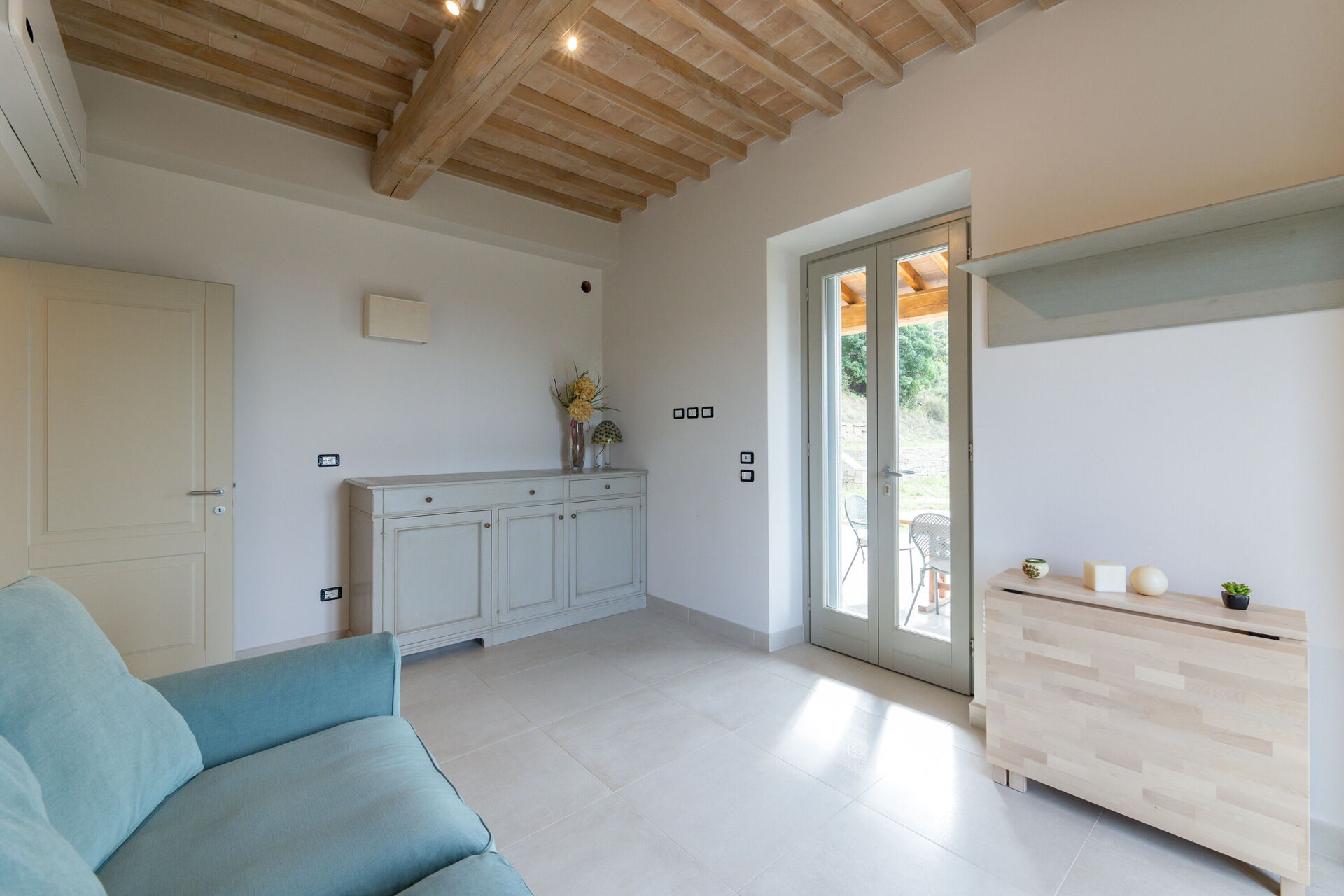 Salón: sofá cama de matrimonio, WIFI internet, aire acondicionado, mosquitero, acceso al jardín, acceso al porche.