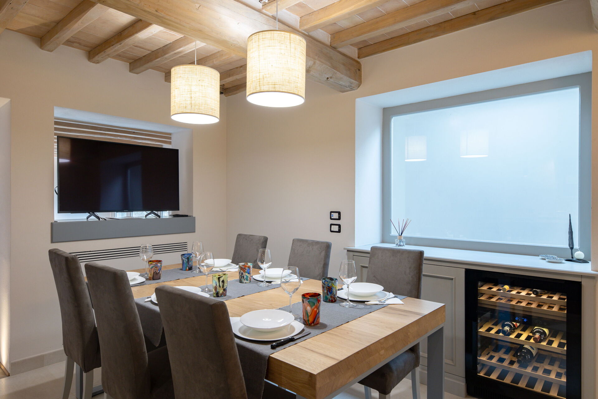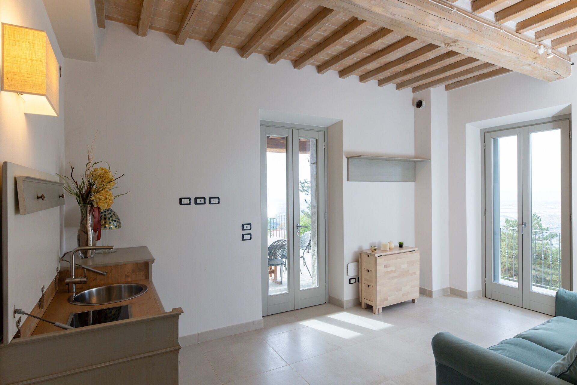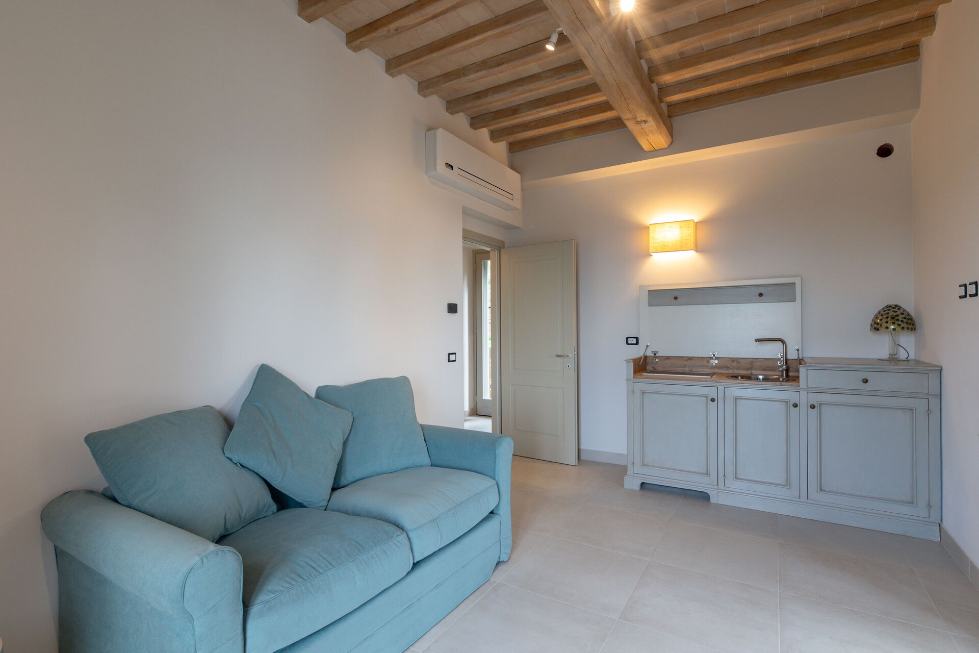 Cocina-salón: cocina bien equipada, mesa de comedor, lavavajillas, frigorífico, congelador, microondas, cocina de gas, horno, tostadora, máquina de café italiana, máquina de café americana, sofa, WIFI internet, aire acondicionado, mosquitero, tv vía satélite, acceso al jardín.