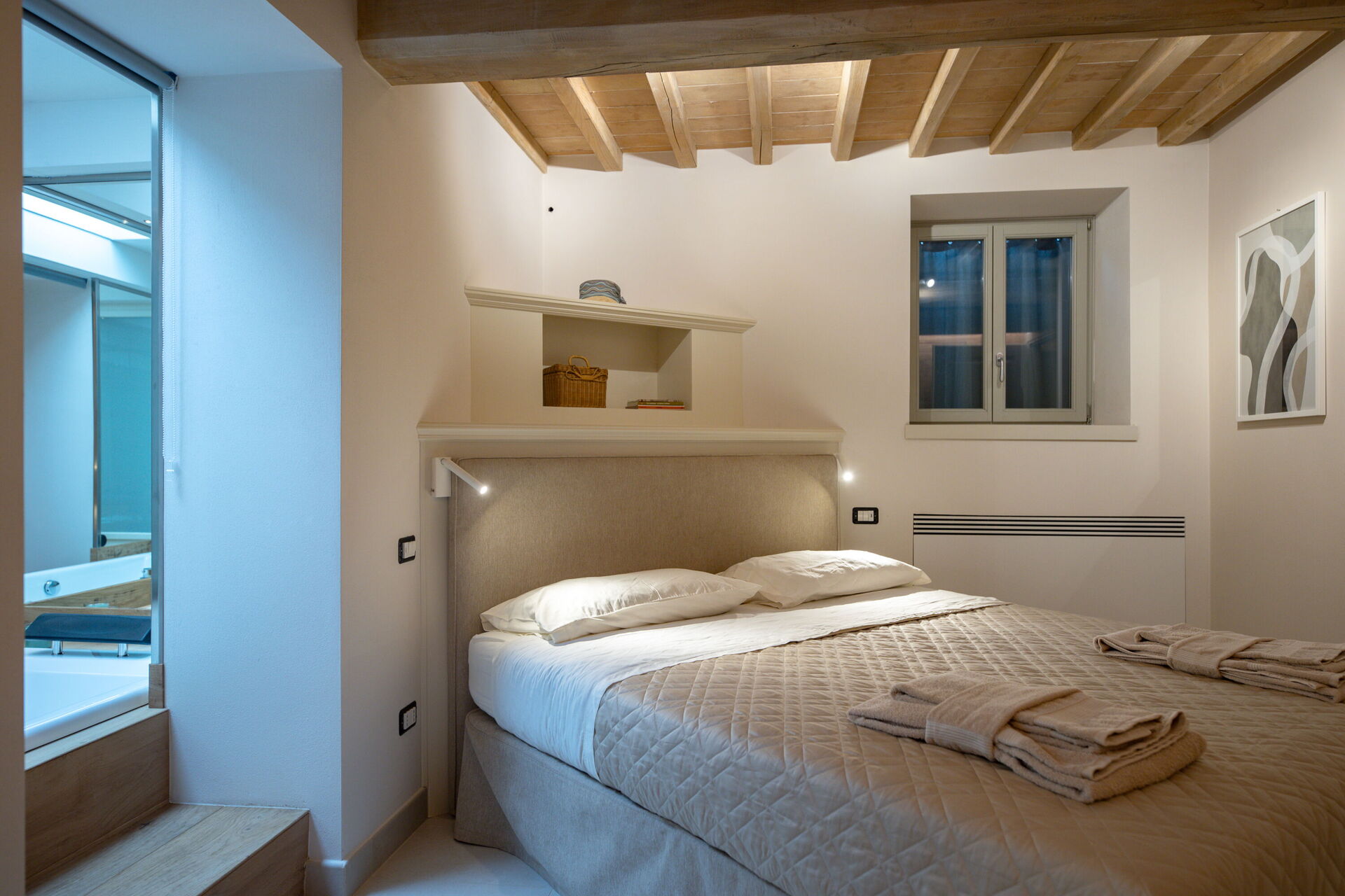 Habitación con baño: cama doble, WIFI internet, aire acondicionado, mosquitero, jacuzzi, lavabo, baño, bidé, ducha, secador.