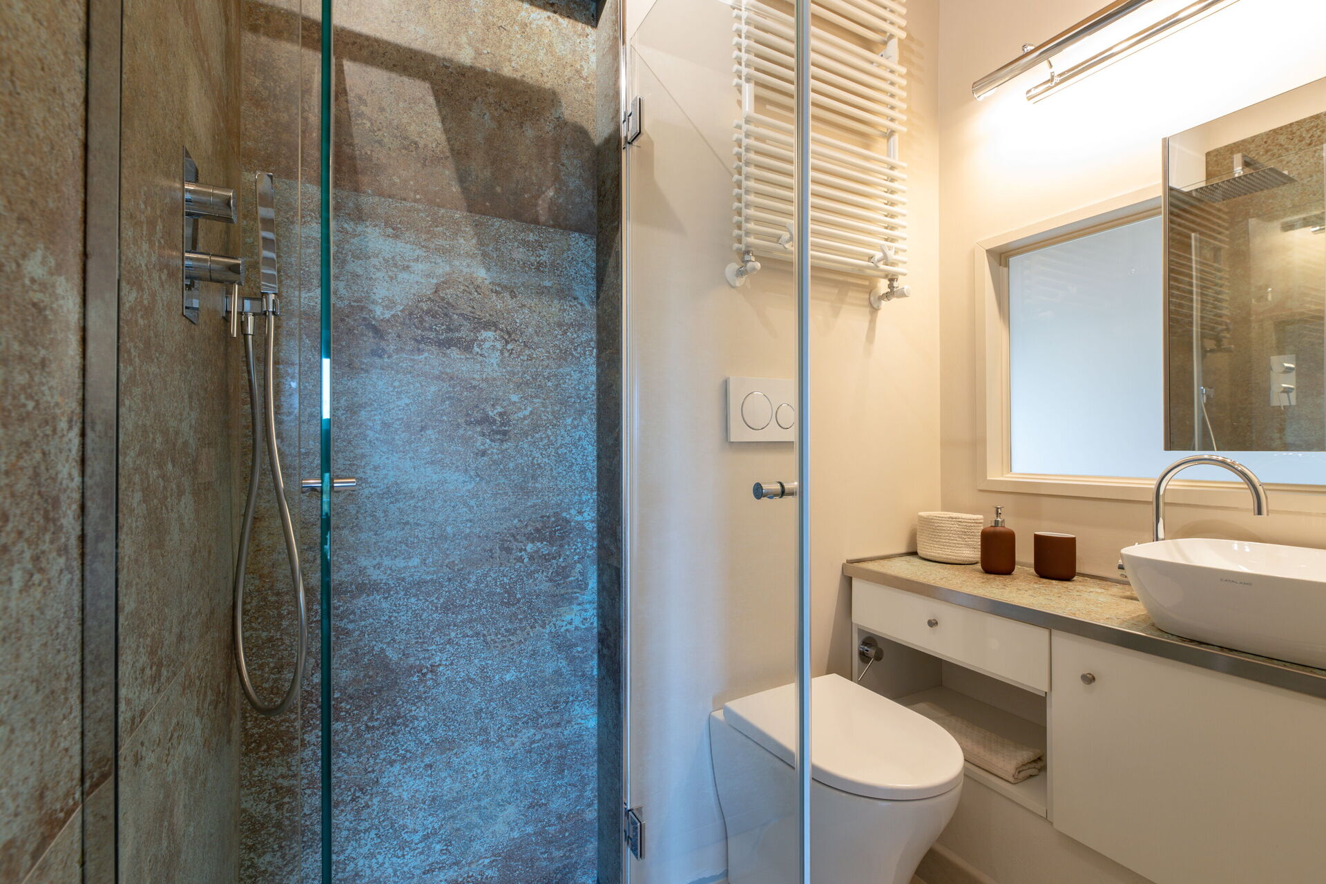 Habitación con baño: cama doble, WIFI internet, aire acondicionado, mosquitero, lavabo, baño, ducha, secador, acceso a la terraza.