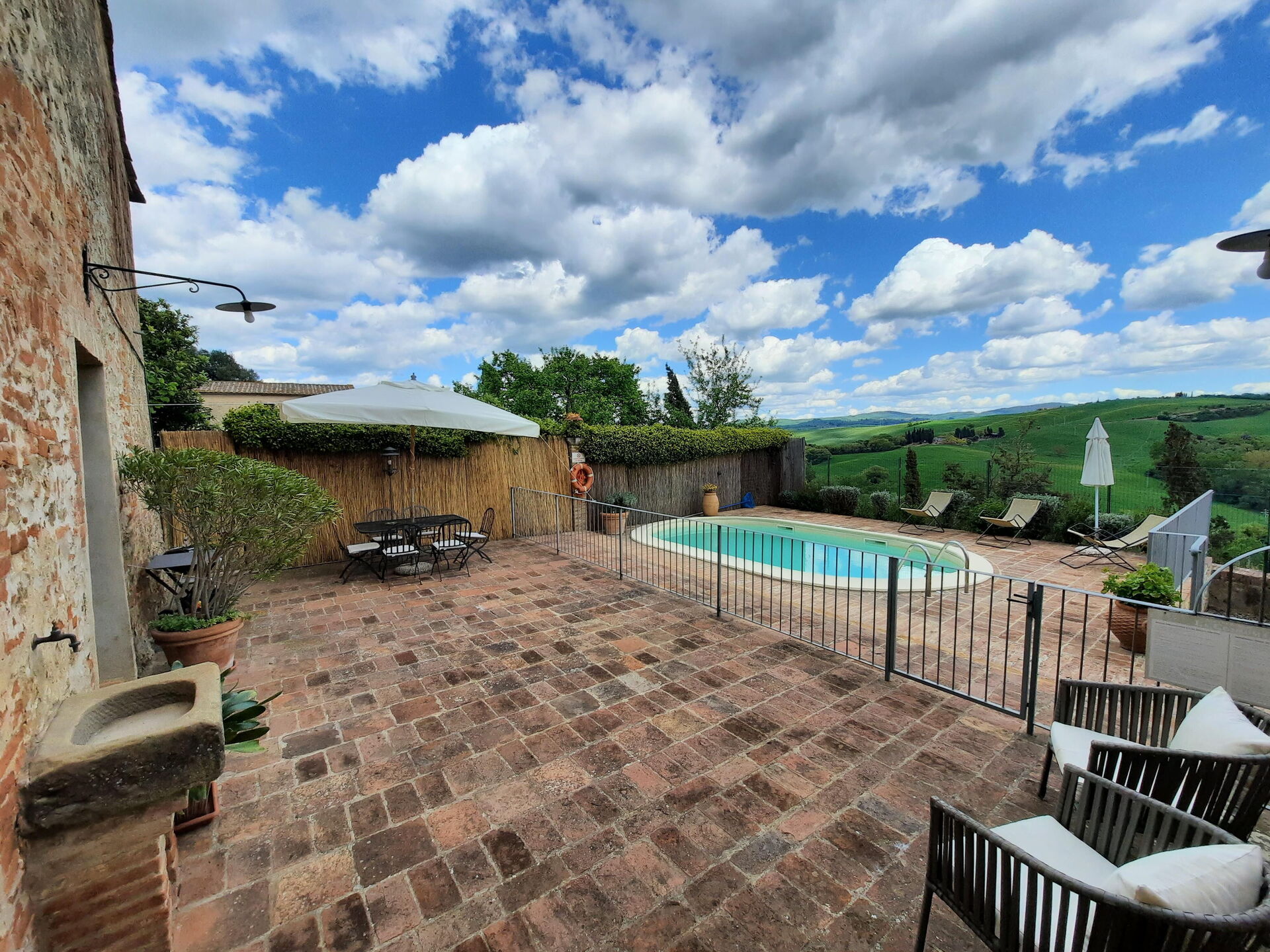 Después de llegar encontrará una estupenda propiedad limpia y acogedora con vista las colinas perfecta para unas vacaciones tranquilas en Toscana. Después un día pasado visitando museos, disfrute de una buena copa de vino con sus amigos y su familia al lado de la piscina - lo mejor para relajarse después de un largo día. Para su placer, afuera hay barbacoa y patio. Si le gusta cocinar para su familia y amigos hay una cocina bien equipada incluso máquina de café, tostador, estufa y nevera, así como , muchas vajillas y cubiertos para hasta cinco personas. Si prefiere comer afuera 'al fresco', hay patio, un espacio bien equipado donde puede disfrutar el buen clima comiendo afuera.
