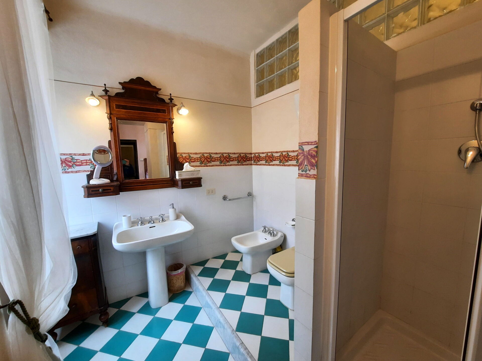 Baño 2: lavabo, baño, bidé, ducha, secador, internet, sin ventana.