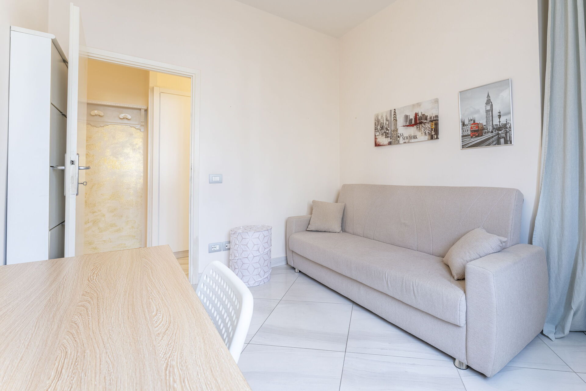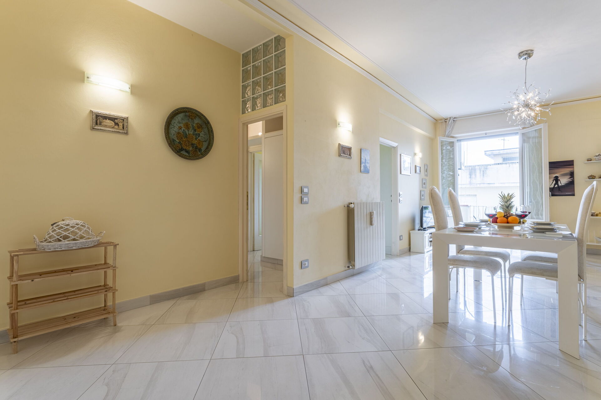 Cocina-salón: cocina bien equipada, mesa de comedor, frigorífico, congelador, microondas, horno, máquina de café italiana, sofa, WIFI internet, aire acondicionado, televisión, acceso al balcón.