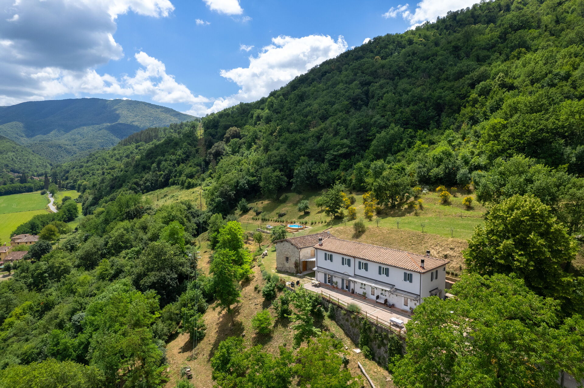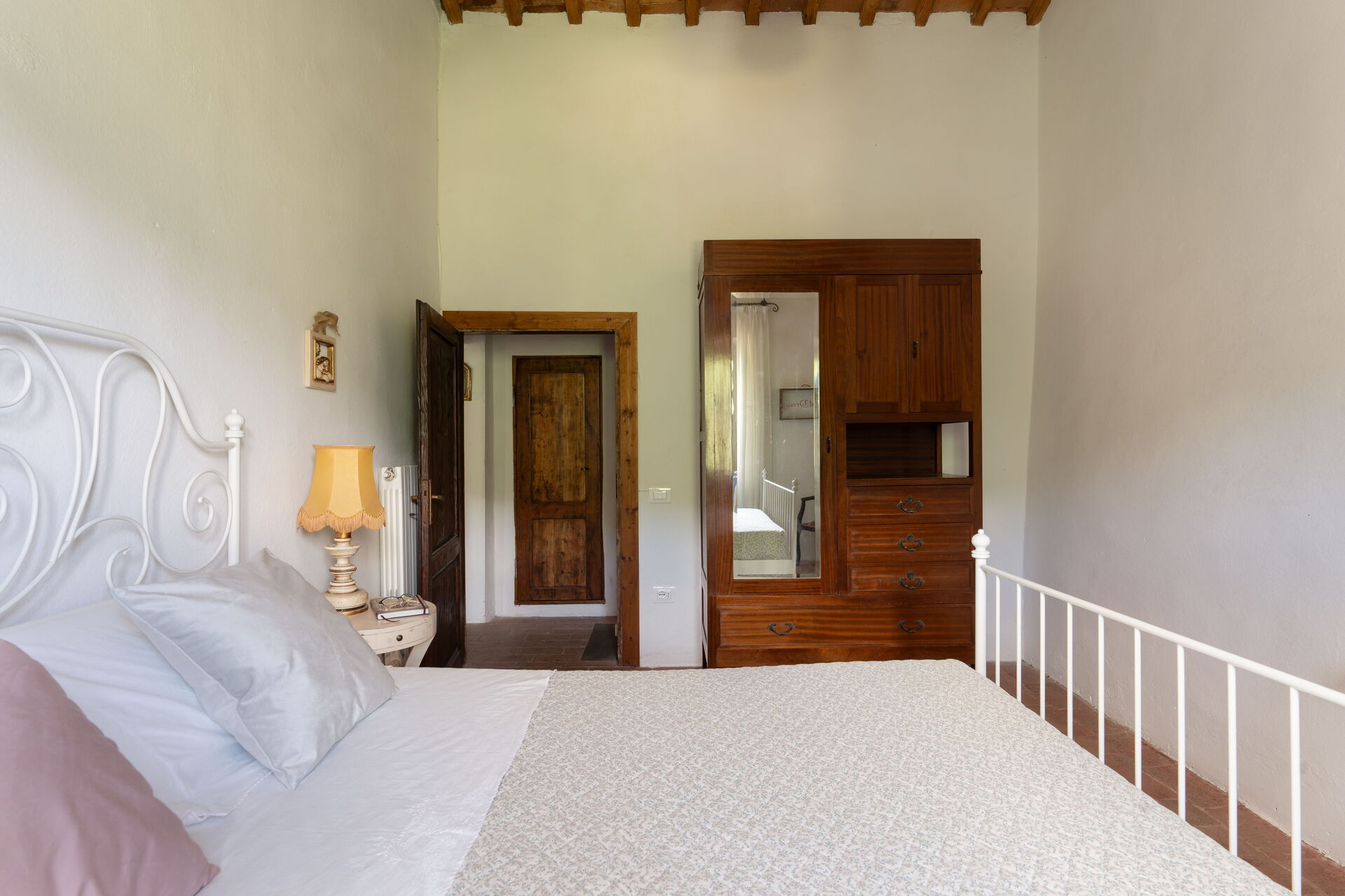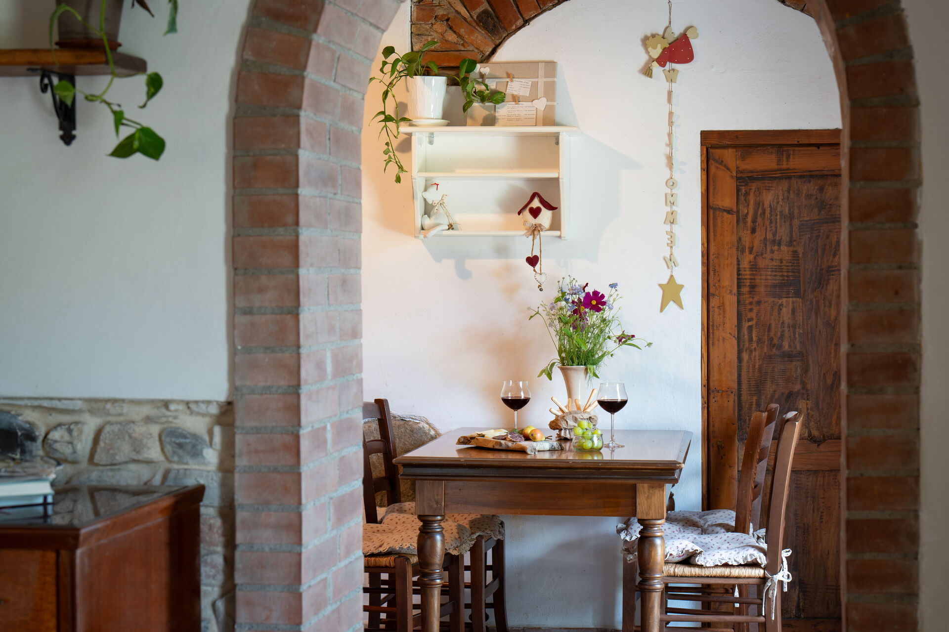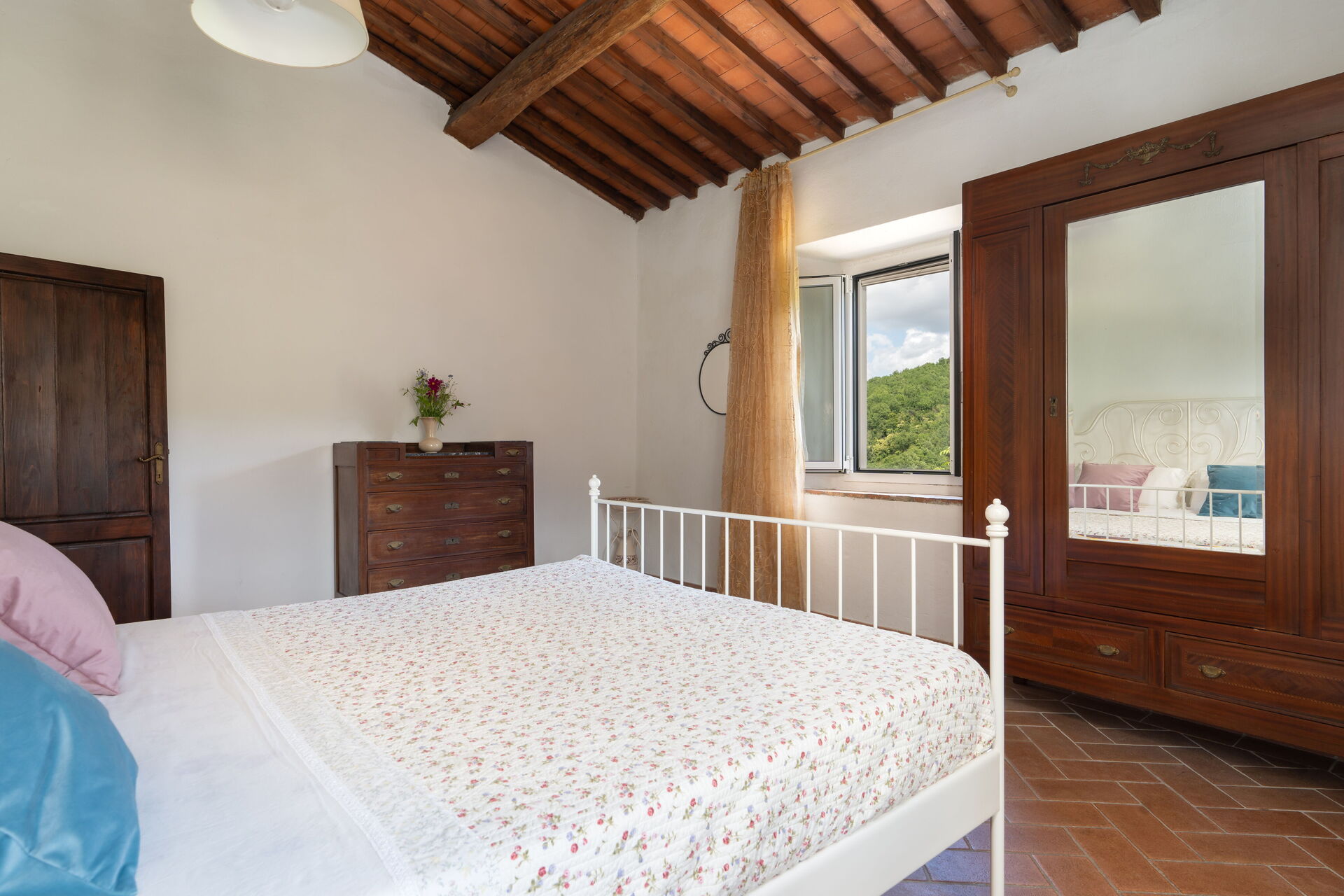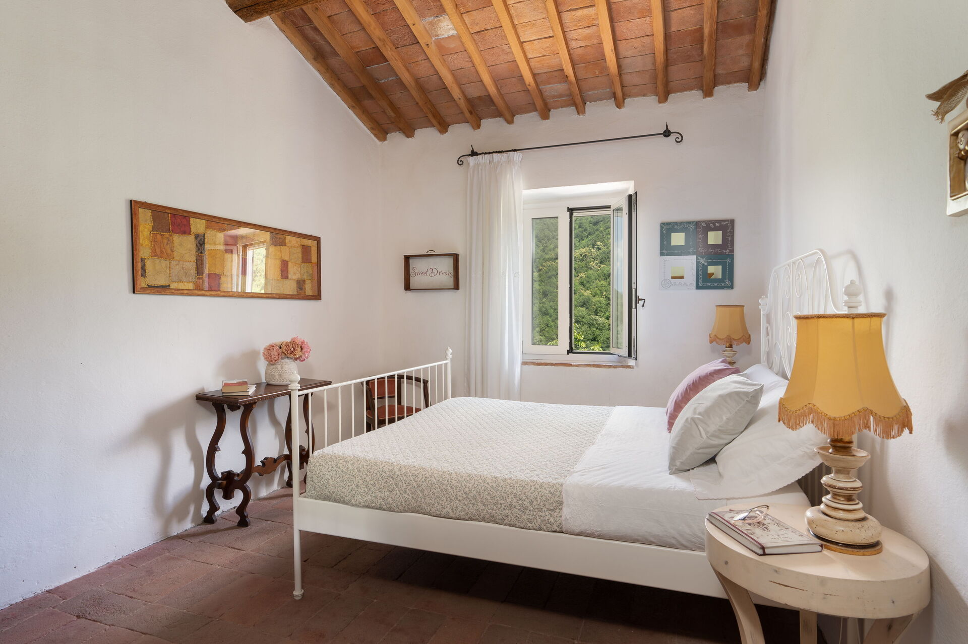 La propiedad, a la que se accede a través de unos 200 metros de camino «blanco» sin asfaltar, está inmersa en la tranquila campiña toscana, rodeada de bosques de robles y castaños. Parte del edificio está ocupada por los propietarios, que disponen de su propia entrada privada.