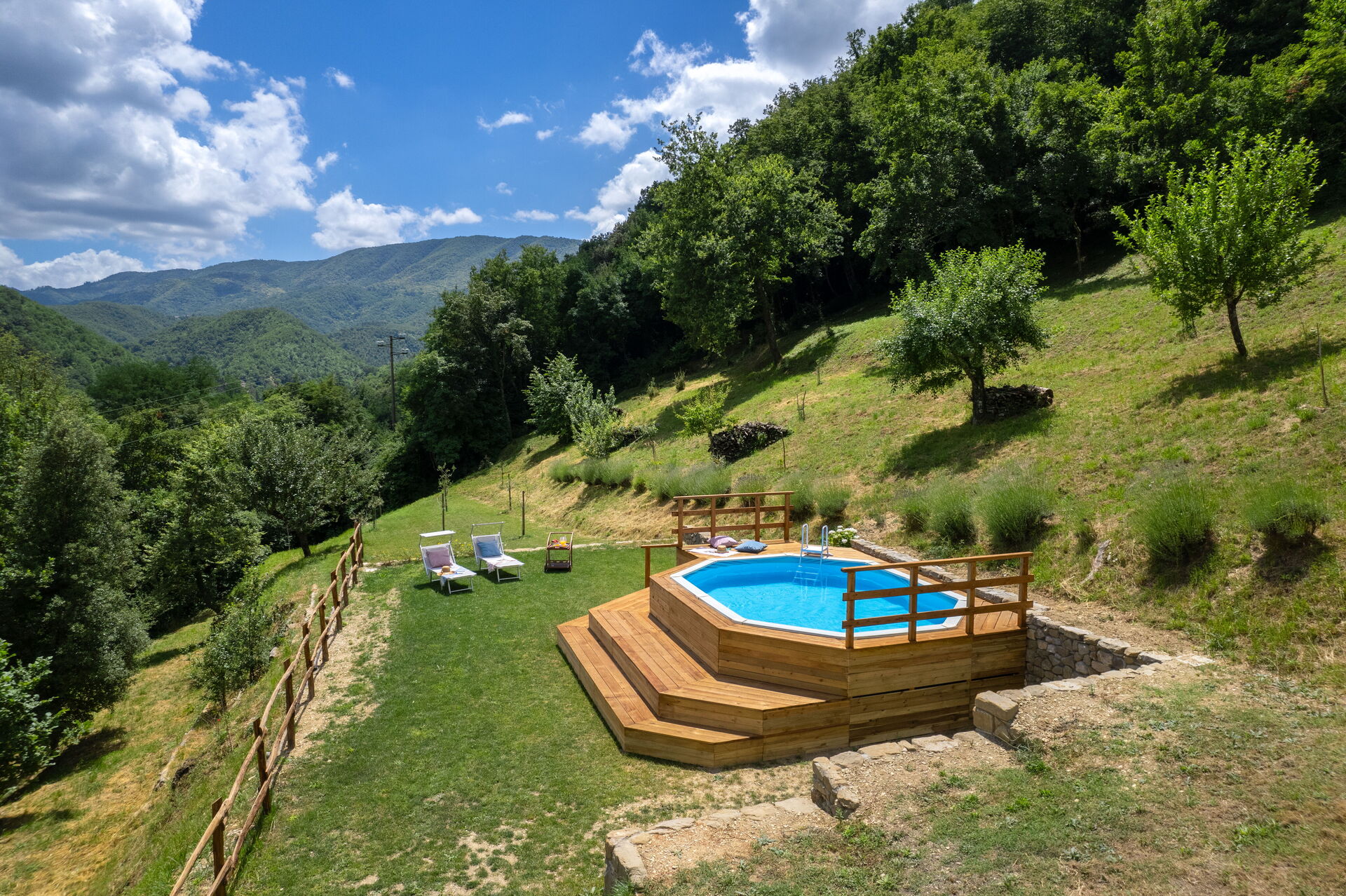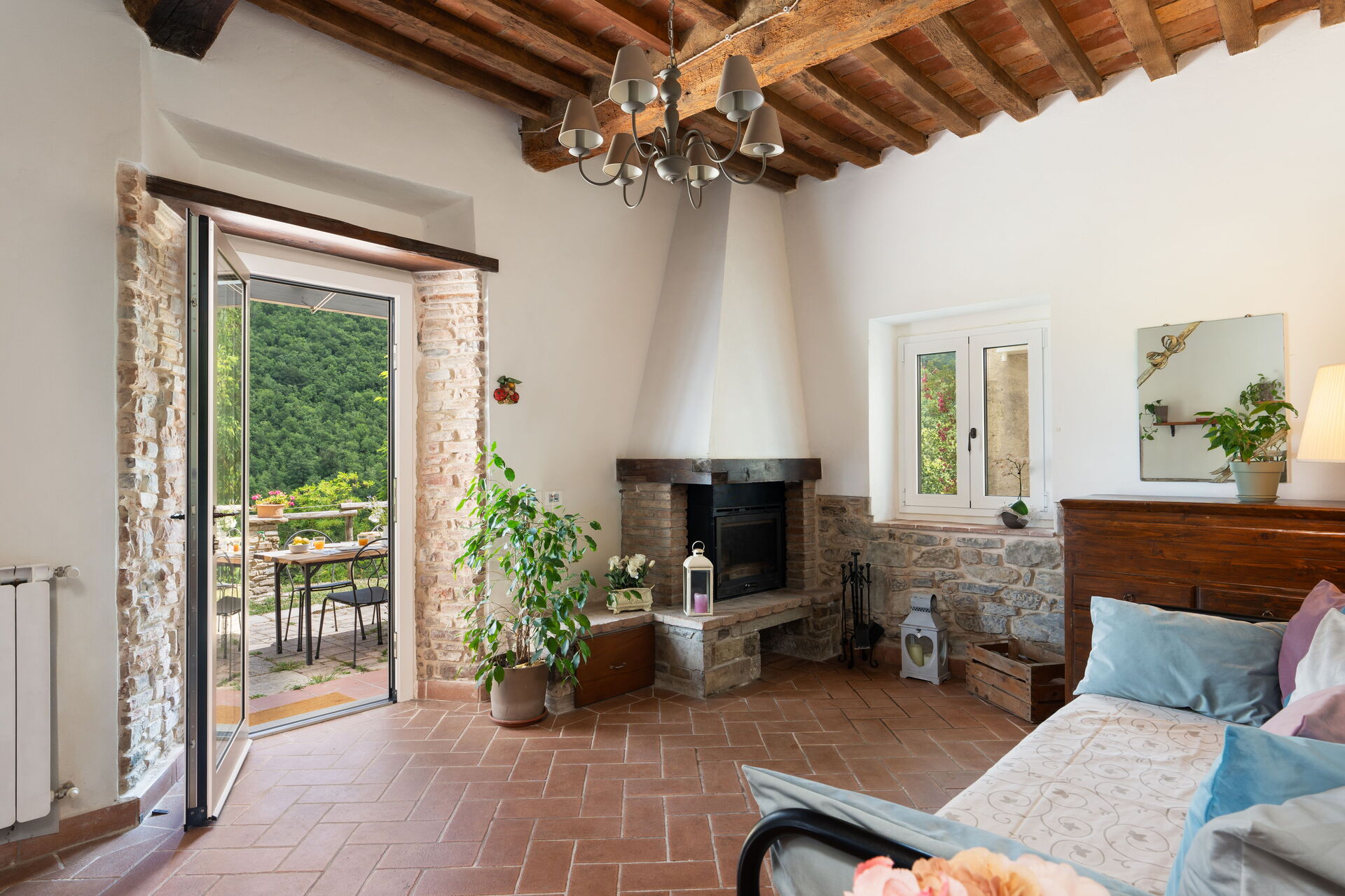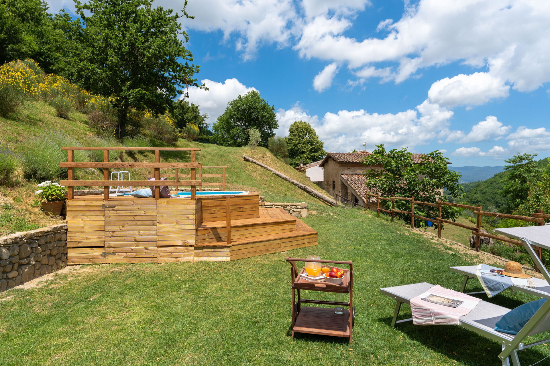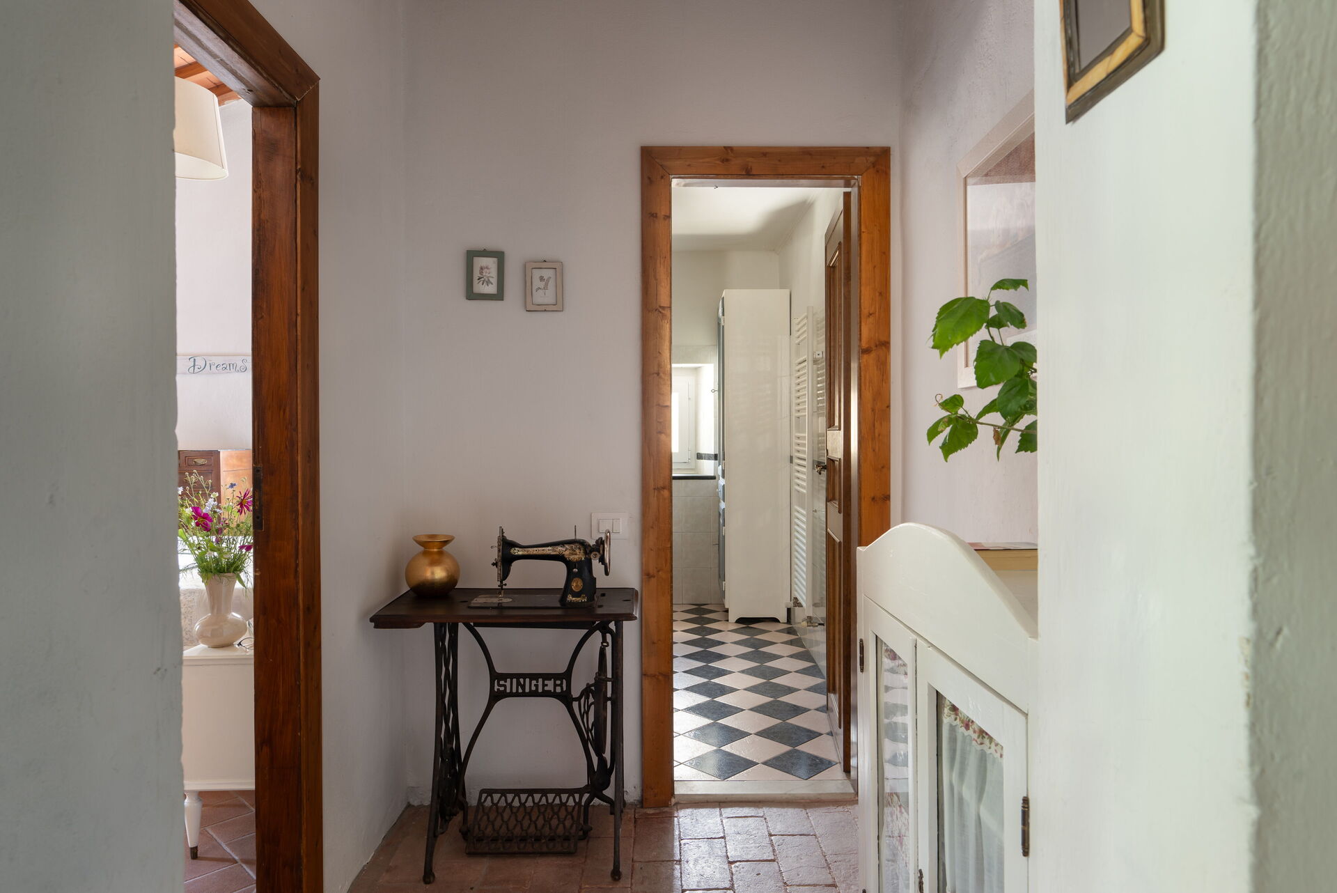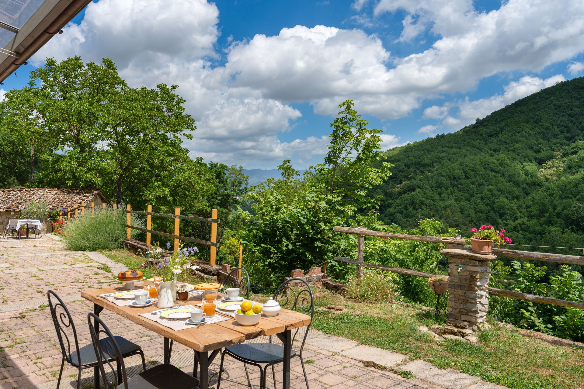 La propiedad, a la que se accede a través de unos 200 metros de camino «blanco» sin asfaltar, está inmersa en la tranquila campiña toscana, rodeada de bosques de robles y castaños. Parte del edificio está ocupada por los propietarios, que disponen de su propia entrada privada.