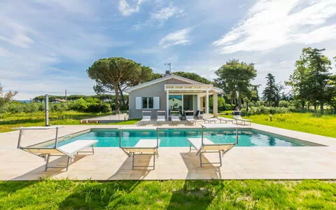 Casa unifamiliar "Veronica", moderna, bonita de 2 plantas del año 2023, rodeada de árboles y campos. A 3 km del centro de Cecina, a 6 km del centro de Marina di Bibbona, a 3 km del mar, a 3 km de la playa. Privado: terreno 1 ha (vallada), jardín natural, piscina (10 x 5 m, 90 - 150 cm de profundidad, Disponible por temporada: 20.Abr. - 10.Oct.). Barbacoa, mantenimiento de la piscina a través del propietario/jardinero. En el inmueble: tenis de mesa, futbolín, lavadora. Cambio de sábanas (suplemento extra). Cambio de toallas (suplemento extra). Aparcamiento junto a la casa. Tienda 1.2 km, tienda de comestibles 1.2 km, supermercado 2.7 km, restaurante 1.2 km, panadería 1.2 km, parada autobús "V. Della Macchia, Aurelia" 200 m, estación de tren "Cecina" 5 km, playa de arena "Marina di Cecina" 4.5 km. Atracciones en los alrededores: Bogheri 12 km, Pisa 60 km, Lucca 90 km, Firenze 120 km. El propietario no acepta grupos de adolescentes/jóvenes. A tener en cuenta: calle principal en la proximidad 100 m de la casa.