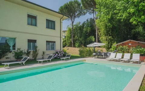 Casa de dos viviendas "Gerry House", reformada en 2024, rodeada de campos. 2 apartamentos en la propiedad. A 2.4 km del centro de Camaiore, en la periferia, a 8.5 km del centro de Lido di Camaiore, a 26 km del centro de Lucca, a 8.5 km del mar, a 8.5 km de la playa. Privado: terreno 500 m2, jardín en diferentes niveles, 150 m2 con plantas, jardín natural, piscina (12 x 6 m, 130 cm de profundidad, Disponible por temporada: 04.May. - 04.Oct.). Ducha exterior, muebles de jardín, barbacoa, mantenimiento de la piscina a través del propietario/jardinero. En el inmueble: calefacción central, lavadora, posibilidad de pagar la calefacción en plaza (20.Mar. - 30.Oct.), calefacción disponible desde el 31.Oct. - 19.Mar.. Aparcamiento (para 4 coches) junto a la casa en el mismo terreno. Tienda de comestibles 1.3 km, supermercado 1.4 km, restaurante 1.6 km, bar 950 m, panadería 750 m, alquiler de bicicletas 11 km, parada autobús 750 m, estación de tren "Viareggio" 11 km, playa de arena "Lido di Camaiore" 8.5 km. Atracciones en los alrededores: Pietrasanta 9 km, Forte dei Marmi 16 km, Marina di Pietrasanta 12 km, Pisa 32 km, Carrara Cave Fantiscritti 45 km, Riomaggiore 5 Terre 78 km. Lagos conocidos fácilmente accesibles: Torre del Lago 17 km, Lago di Massaciuccoli 24 km. Zona de senderismo Antro del Corchia Levigliani 28 km, Grotta all´Onda Casoli 12 km. A tener en cuenta: coche recomendable. El propietario no acepta grupos de adolescentes/jóvenes. Vecindario muy sensible a ruidos. Se ruega respetar la tranquilidad y normas de buen comportamiento.