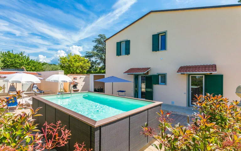 Casa "Da Lisa", confortable de 2 plantas, adosada por un lado, reformada en 2024, rodeada de prados y campos. A 3 km del centro de San Pietro in Palazzi, a 5 km del centro de Cecina, lugar elevado, a 5 km del mar, a 5 km de la playa. Privado: terreno 700 m2 (vallada), Piscina elevada (3 x 5 m, 120 - 120 cm de profundidad, Disponible por temporada: 12.Abr. - 13.Oct.). Ducha/WC en zona de piscina, terraza (100 m2), muebles de jardín, barbacoa, parque infantil. Cambio de sábanas (suplemento extra). Cambio de toallas (suplemento extra). Trastero a disposición. Aparcamiento (para 2 coches, cubierto). Estación de carga eléctrica. Tienda 1 km, supermercado 1 km, restaurante 1 km, panadería 1 km, parada autobús "Sp 68 - Bivio Loc. Giardino" 90 m, estación de tren "Cecina" 5 km, piscina termal "Calidario" 35 km. Puerto para yates 6 km. Atracciones en los alrededores: Pisa 50 km, Lucca 70 km, Firenze 112 km.