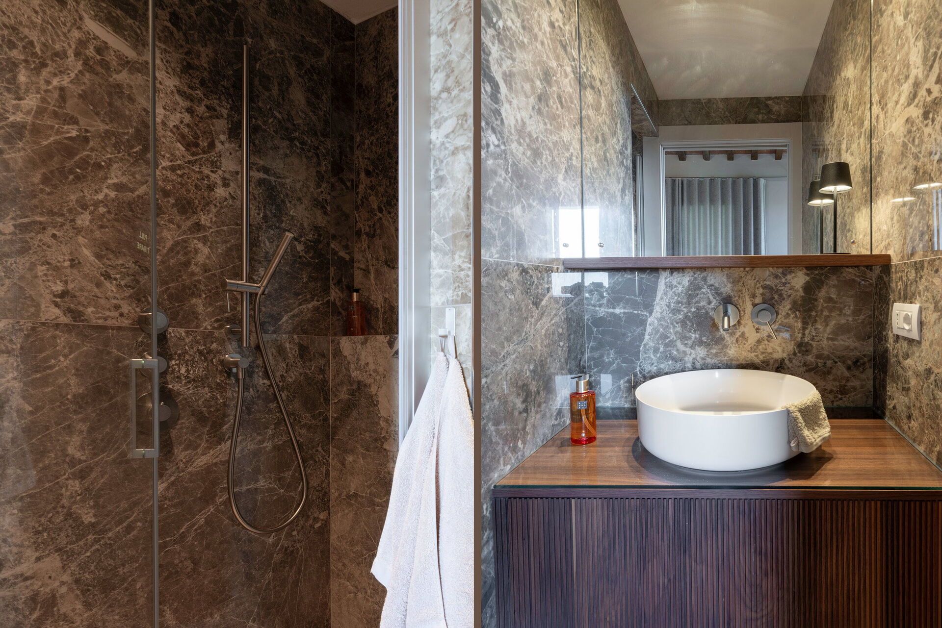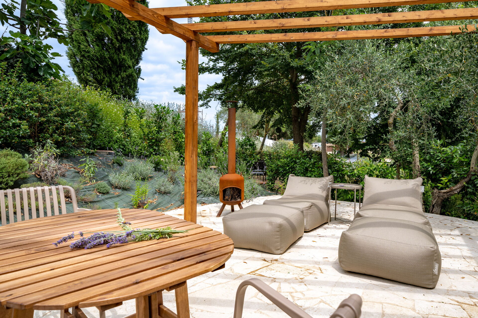 La piscina está climatizada de mayo a octubre y es compartida exclusivamente por los diez apartamentos y las tres villas.