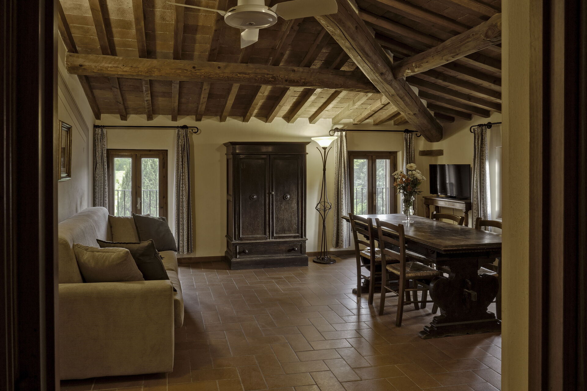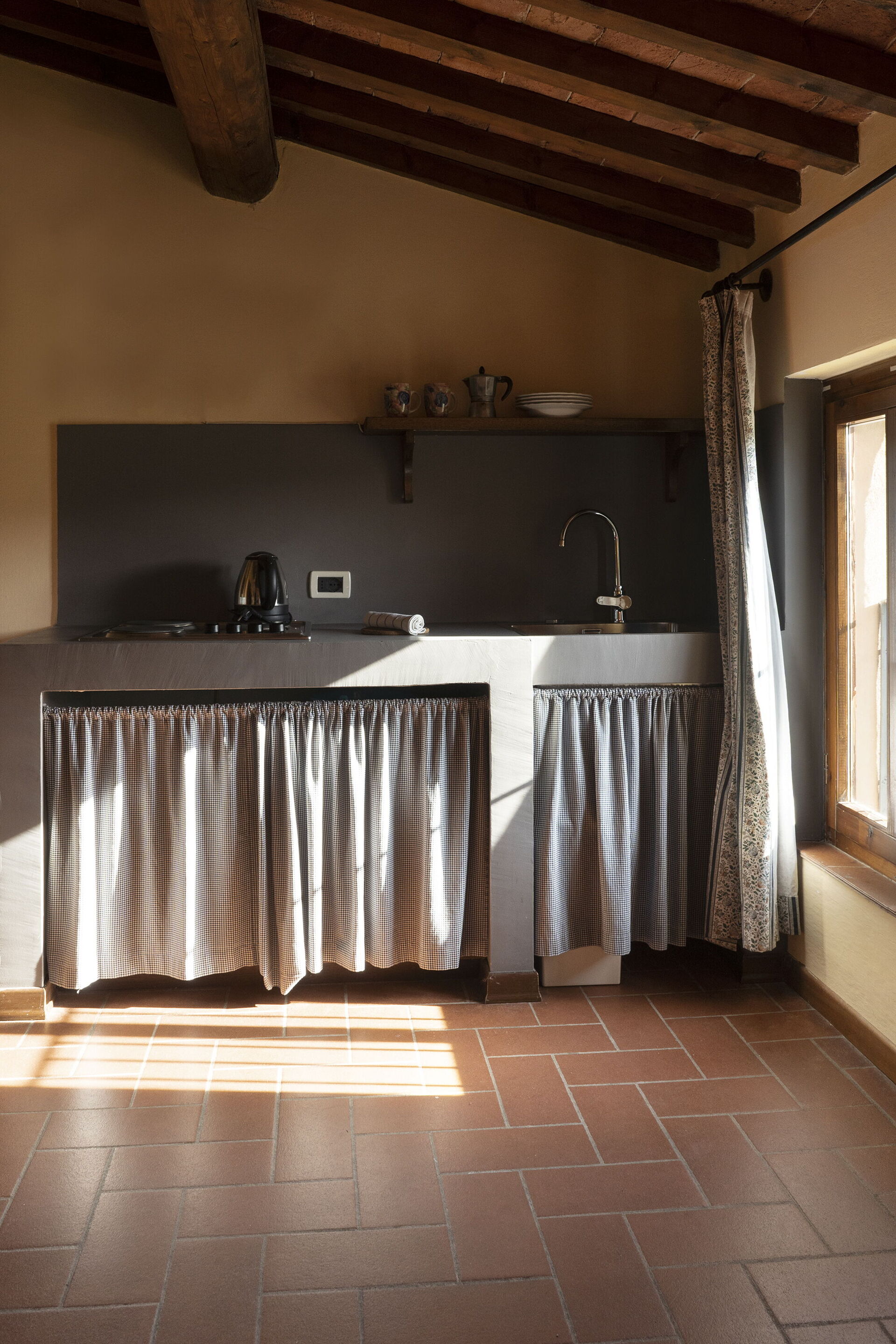Un antiguo caserío toscano finamente restaurado, la estructura se divide en 16 mini-apartamentos, todos con baño privado, cocineta, sala de estar y entrada independiente.