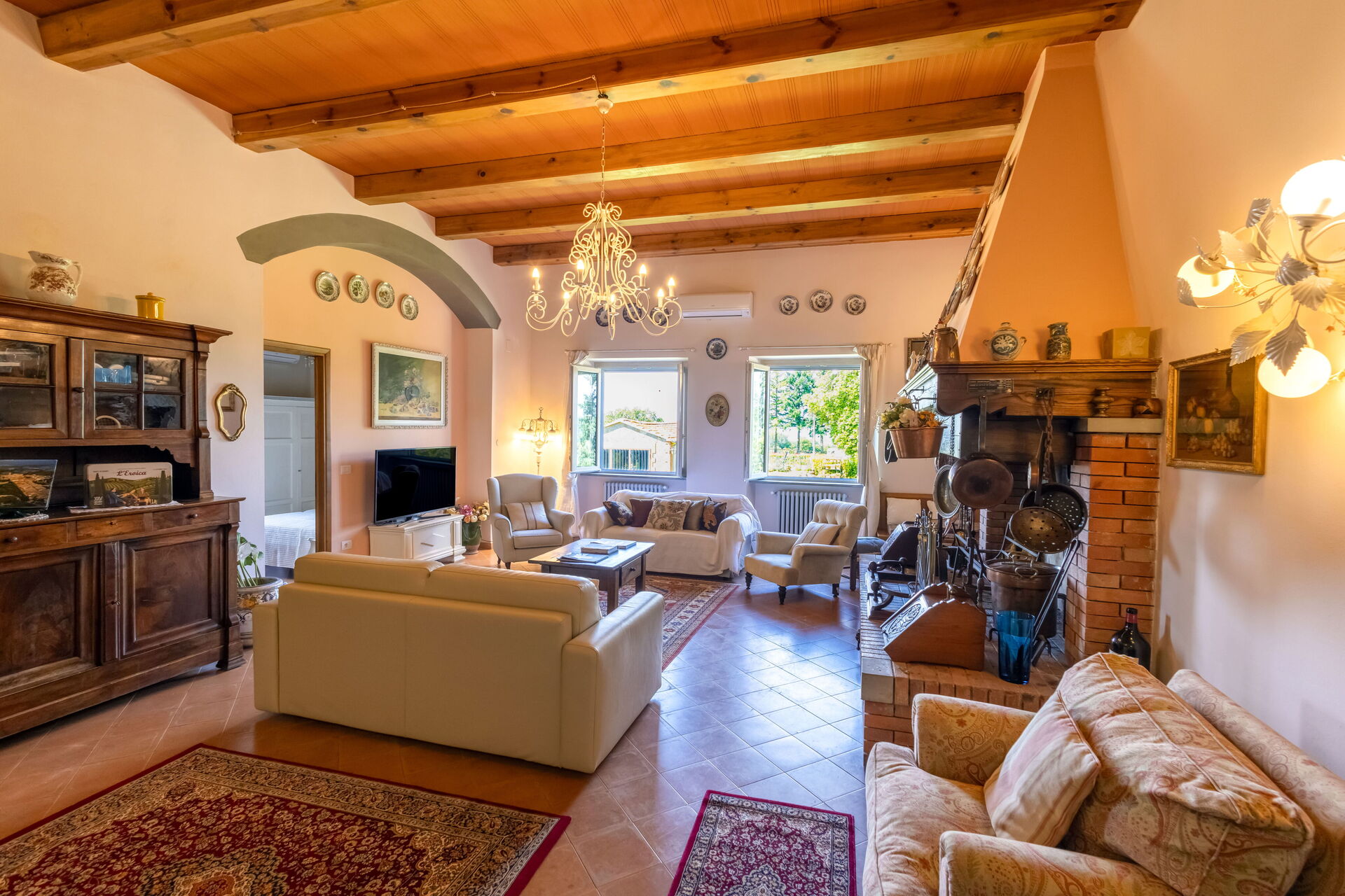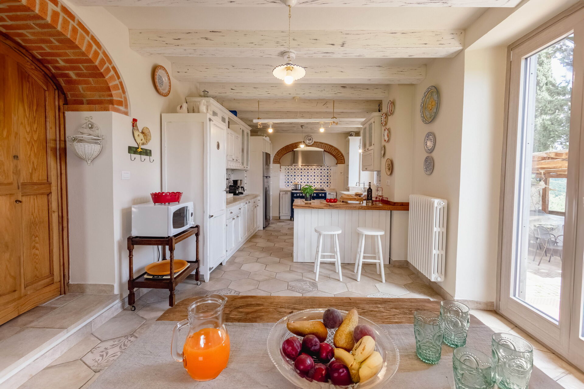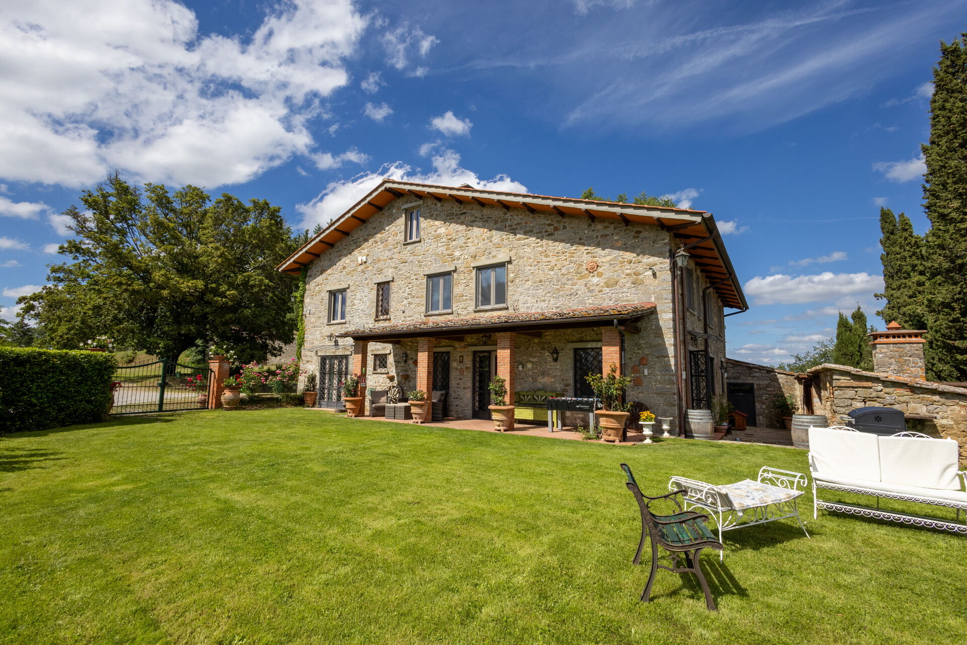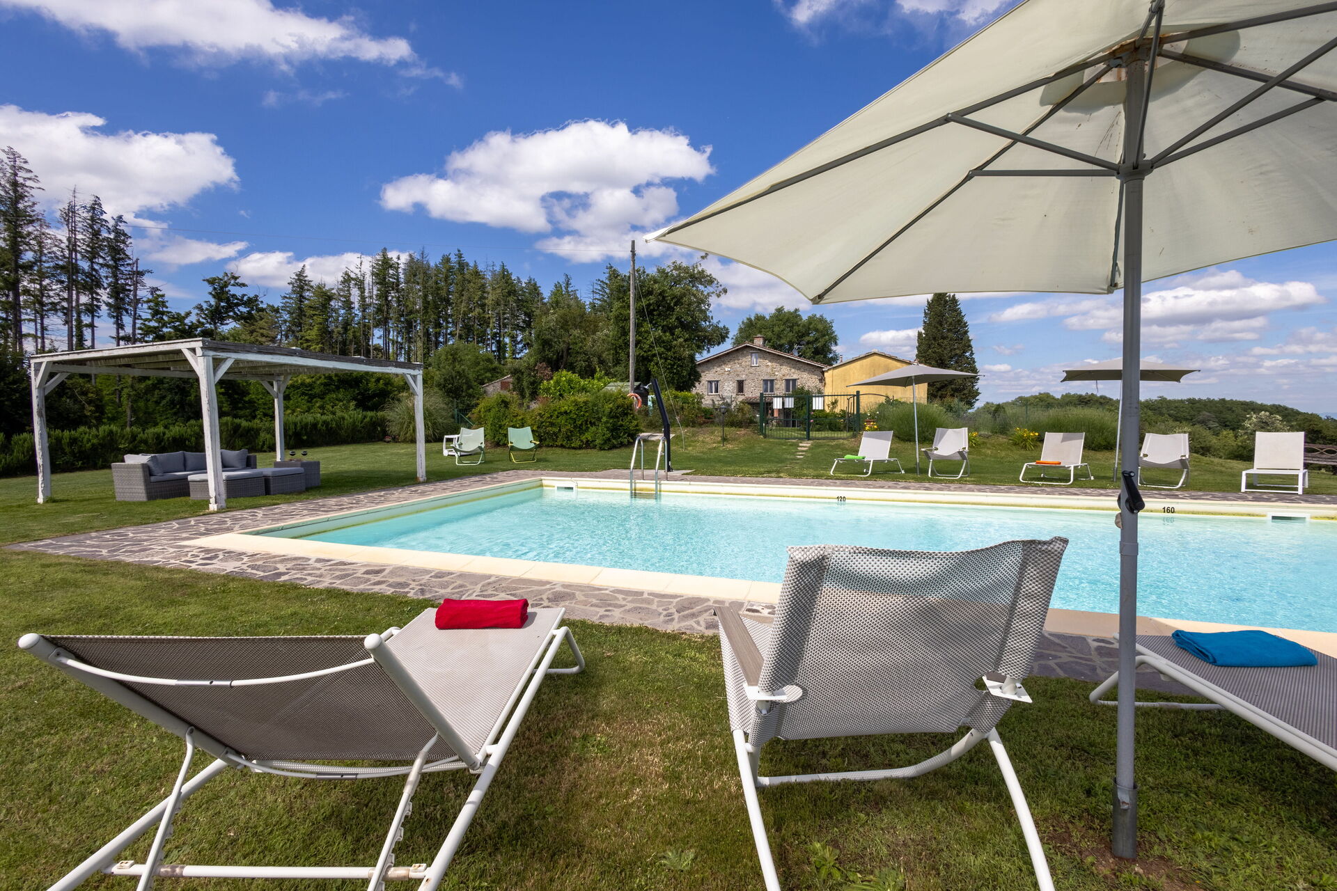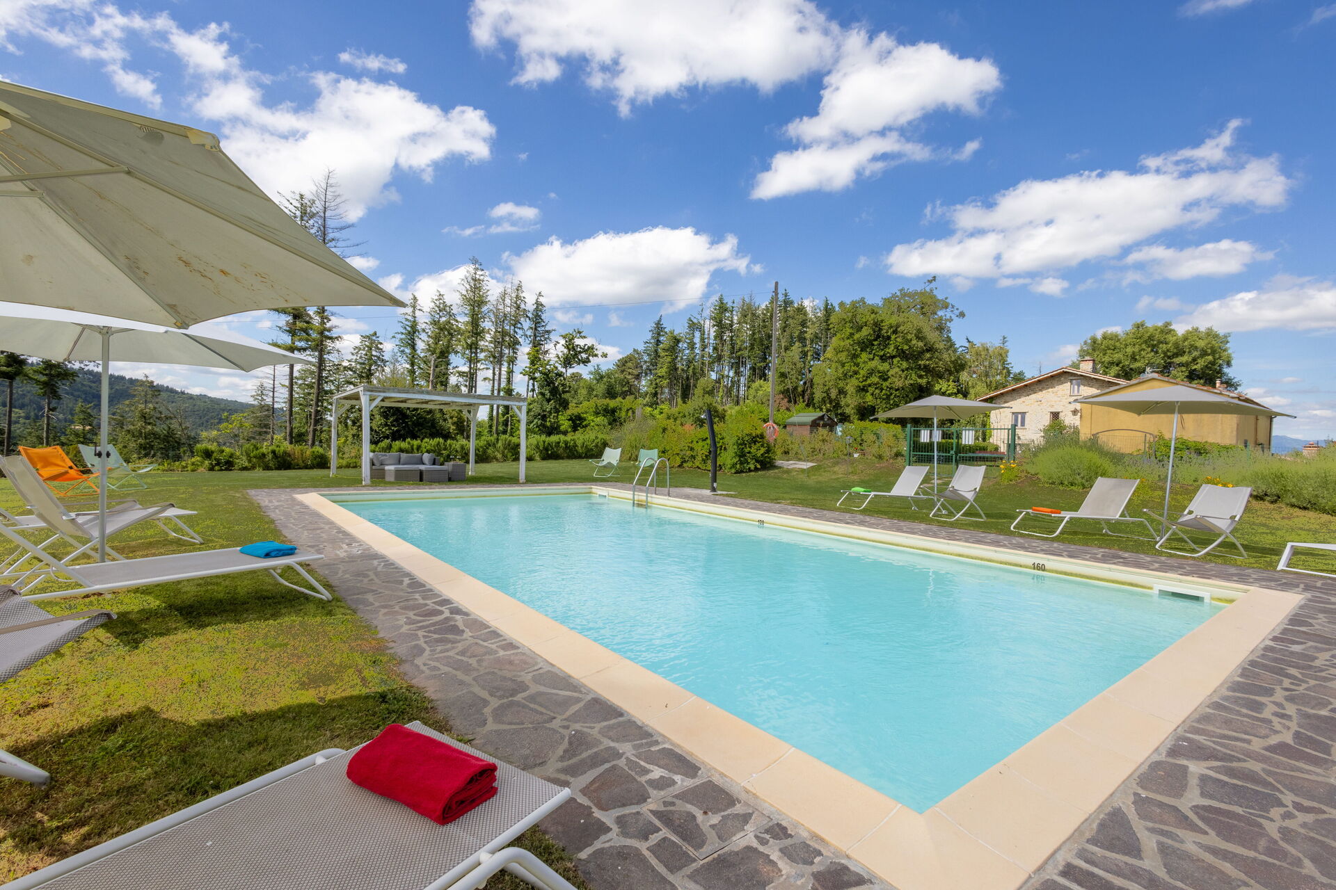 Después de llegar será bienvenido por el propietario u ama de llaves y encontrará una hermosa propiedad limpia y acogedora with views of las colinas and las montañas ideal para unas vacaciones relajantes en Toscana. Después un día pasado haciendo compras, disfrute de una buena copa de vino con sus amigos y su familia al lado de la piscina - lo mejor para relajarse después de un largo día. Para su placer, afuera hay patio y parrilla. Cenar con familia y amigos es un aspecto de gran importancia en la cultura toscana. Aproveche de una cocina bien equipada para preparar comidas utilizando productos locales durante sus vacaciones. La cocina incluye cafetera, microondas, toaster, estufas y nevera, además de, muchas vajillas y cubiertos para hasta 14 personas. Come 'al fresco' como un local, la veranda es el lugar perfecta para disfrutar de la comida, la compañía y el hermoso clima toscano.