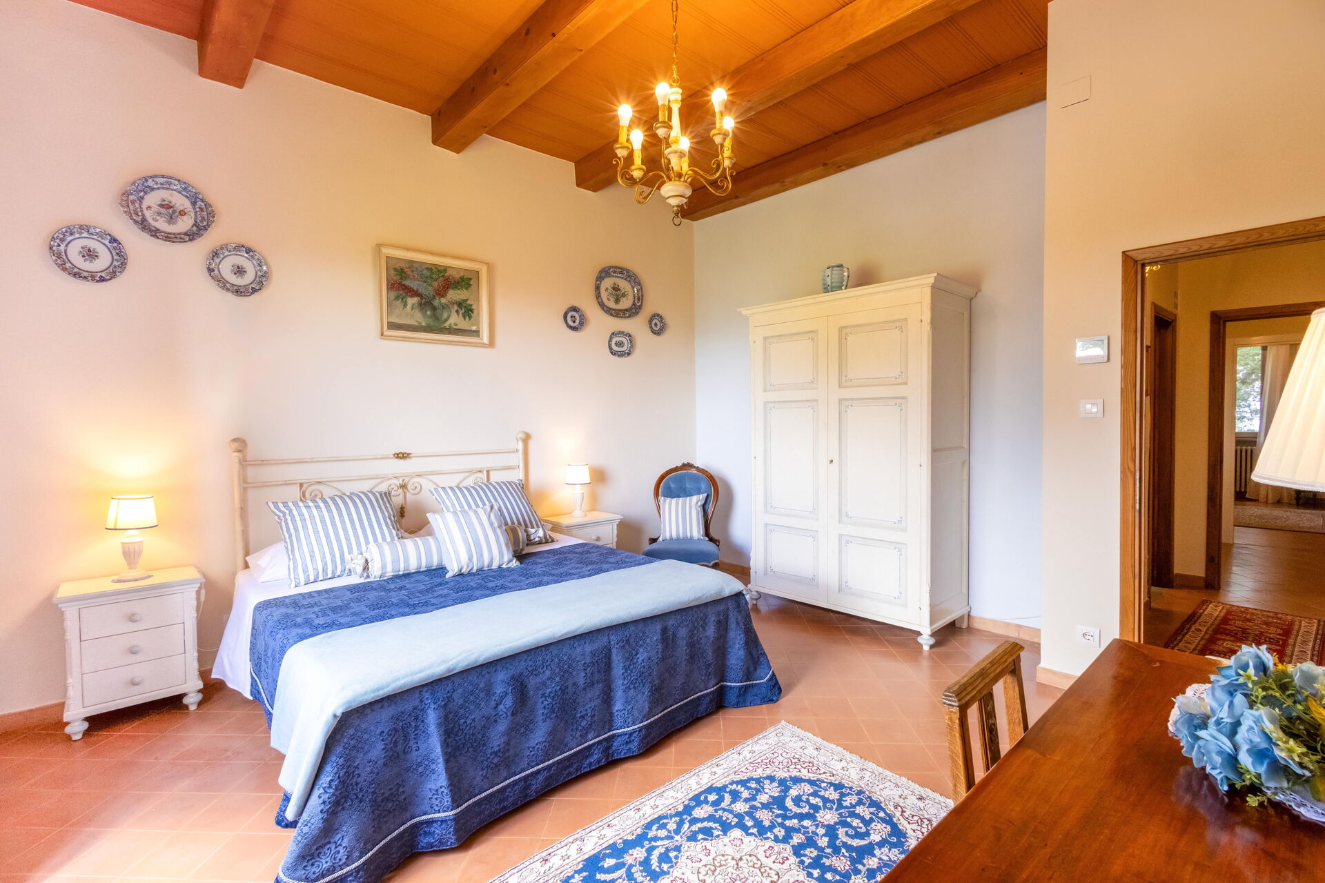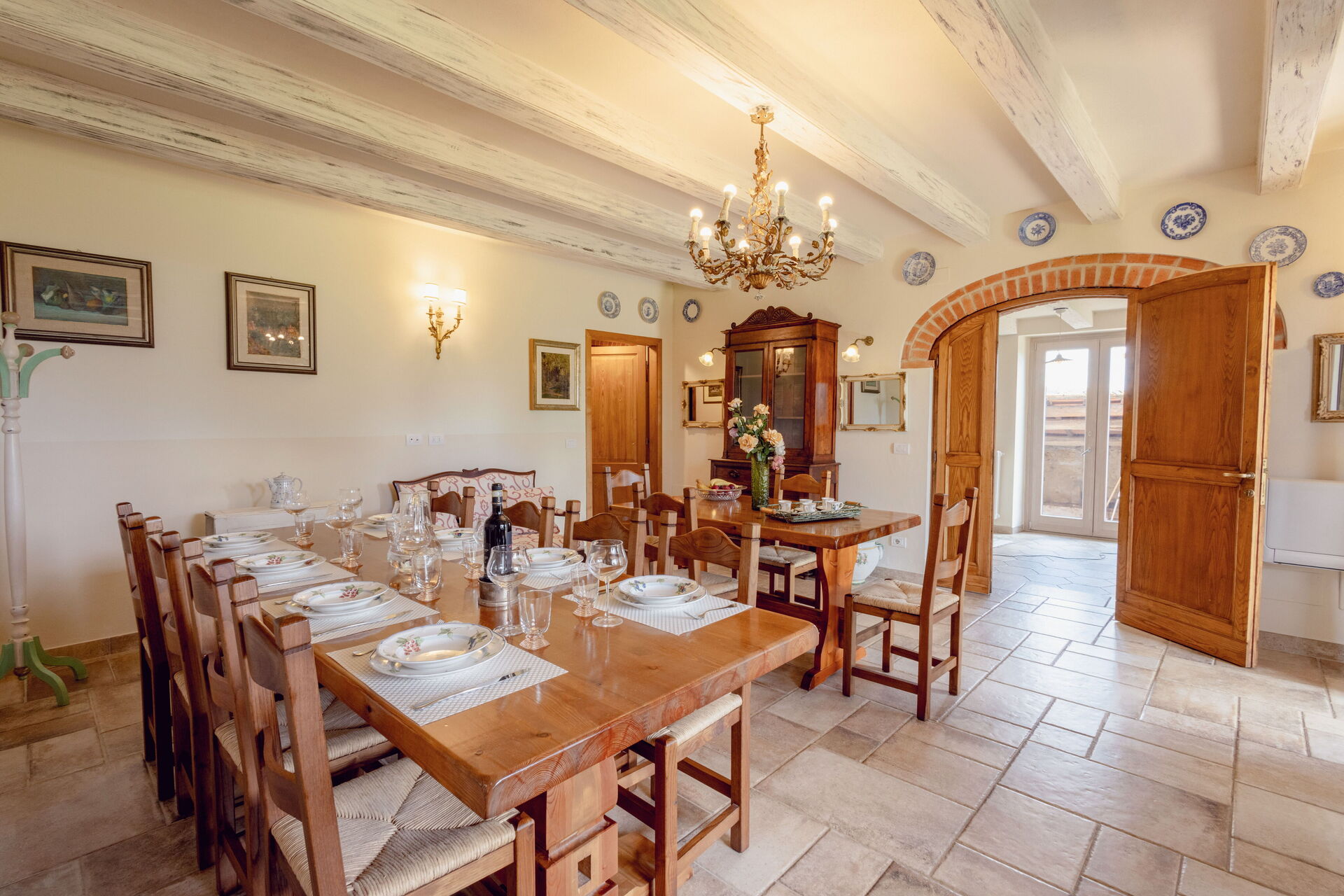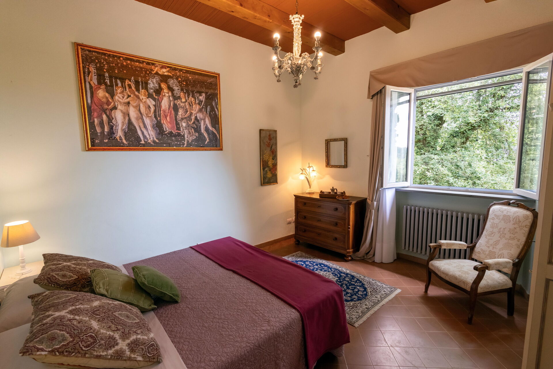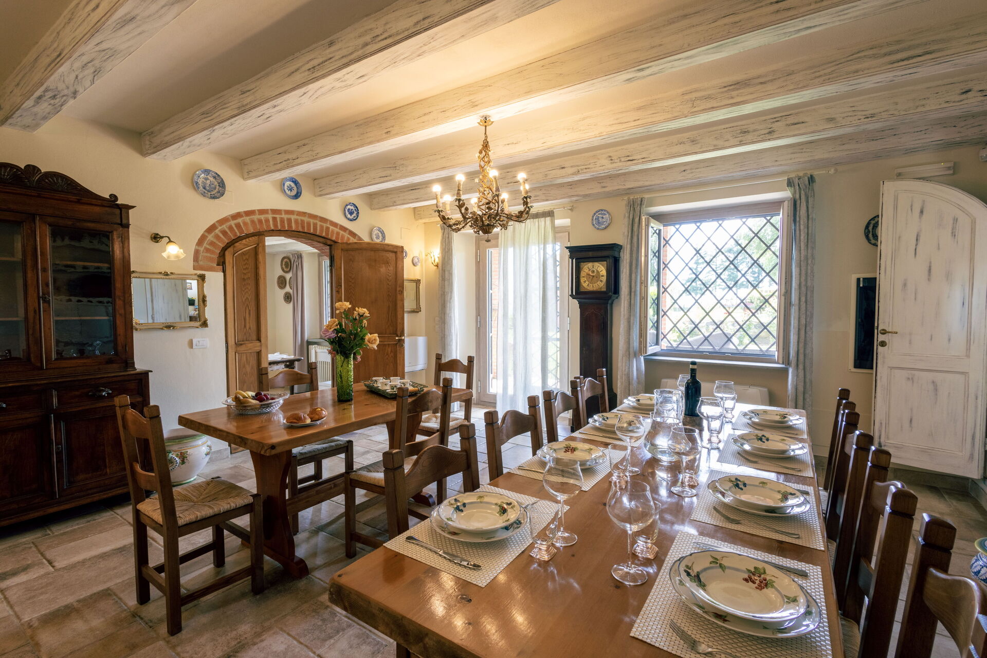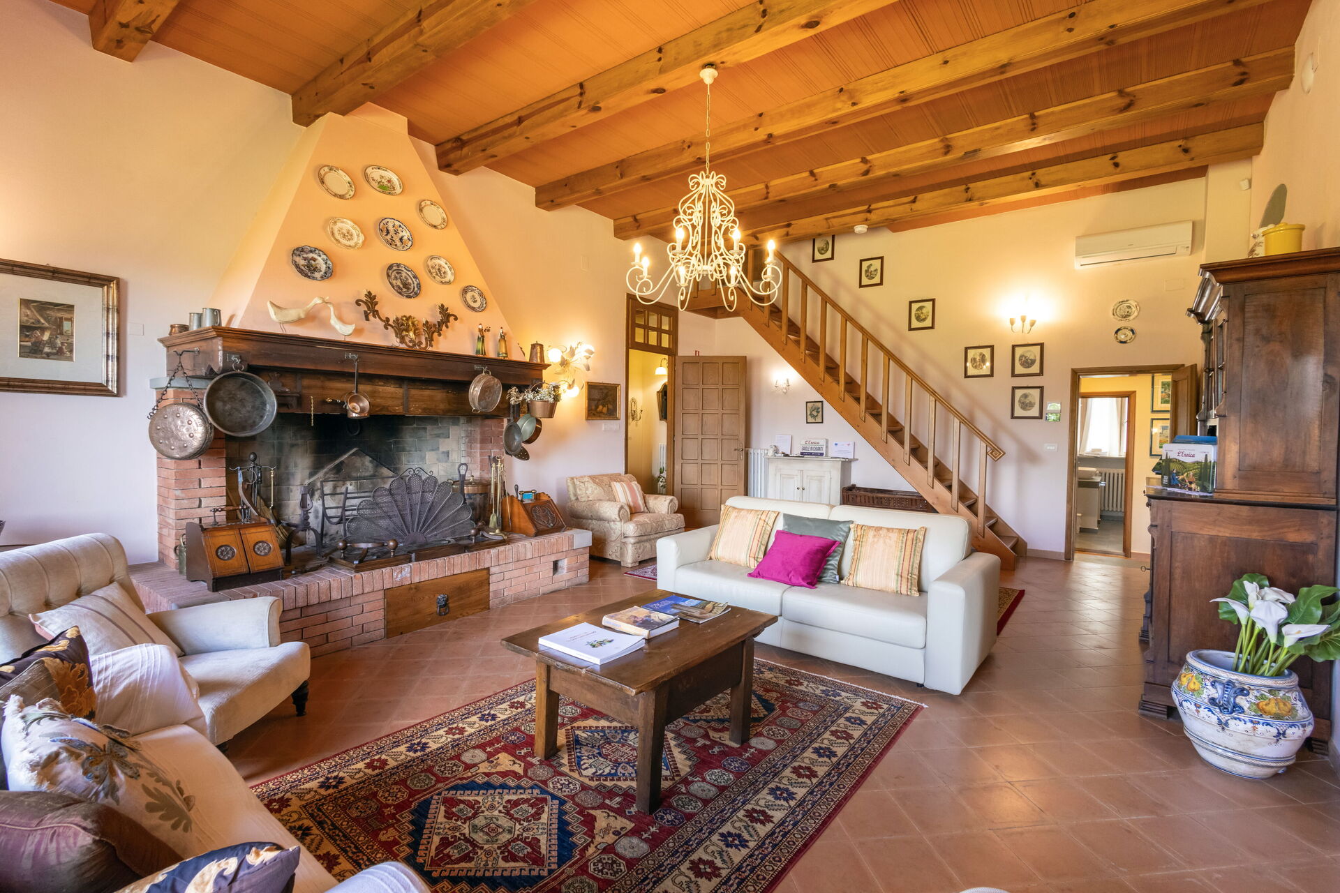 Después de llegar será bienvenido por el propietario u ama de llaves y encontrará una hermosa propiedad limpia y acogedora with views of las colinas and las montañas ideal para unas vacaciones relajantes en Toscana. Después un día pasado haciendo compras, disfrute de una buena copa de vino con sus amigos y su familia al lado de la piscina - lo mejor para relajarse después de un largo día. Para su placer, afuera hay patio y parrilla. Cenar con familia y amigos es un aspecto de gran importancia en la cultura toscana. Aproveche de una cocina bien equipada para preparar comidas utilizando productos locales durante sus vacaciones. La cocina incluye cafetera, microondas, toaster, estufas y nevera, además de, muchas vajillas y cubiertos para hasta 14 personas. Come 'al fresco' como un local, la veranda es el lugar perfecta para disfrutar de la comida, la compañía y el hermoso clima toscano.