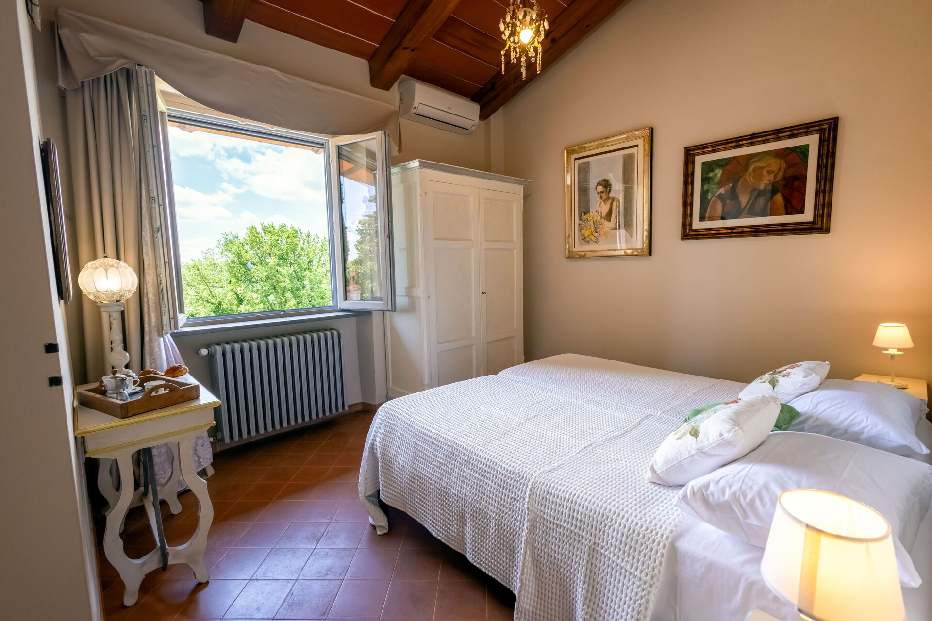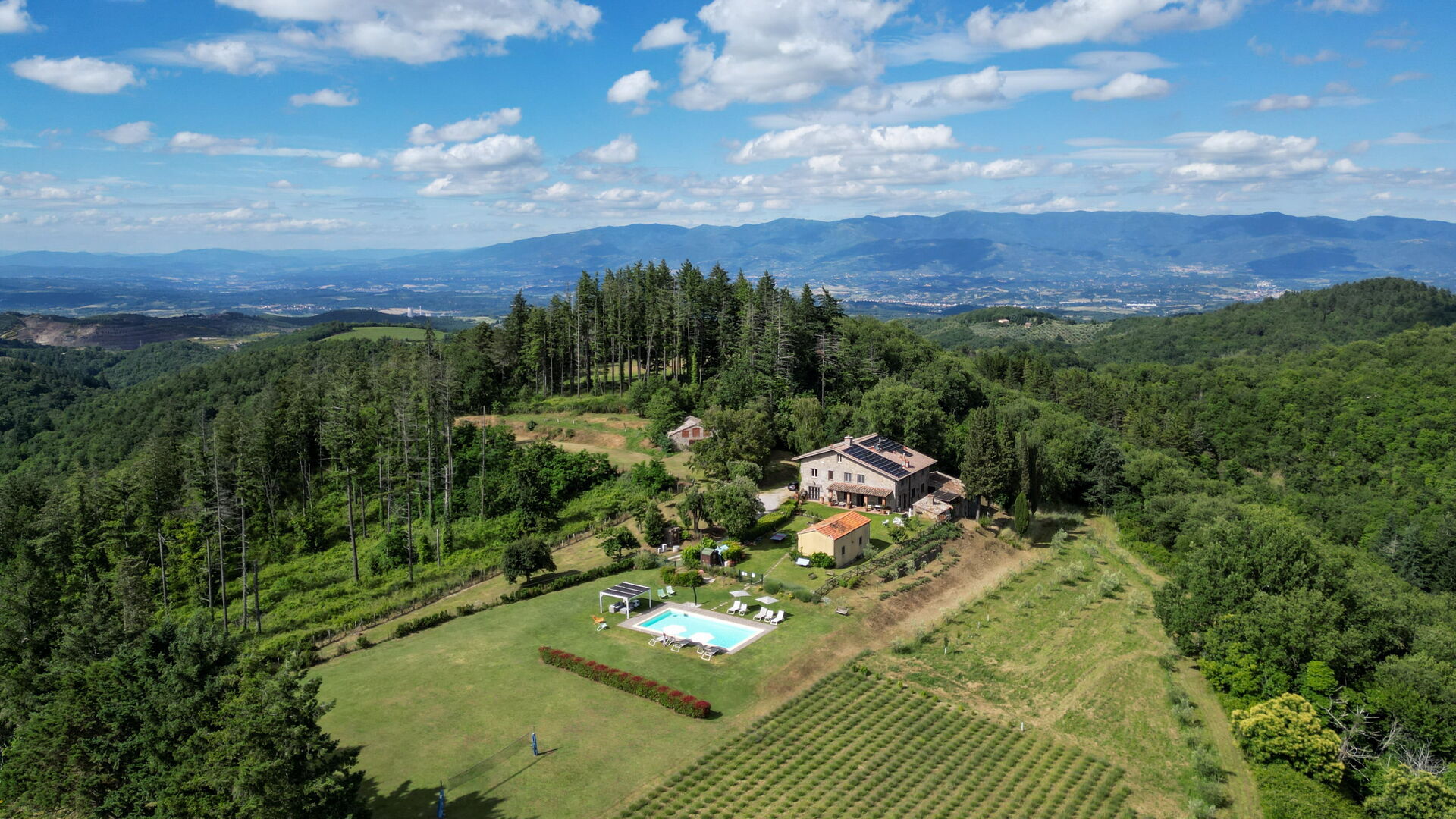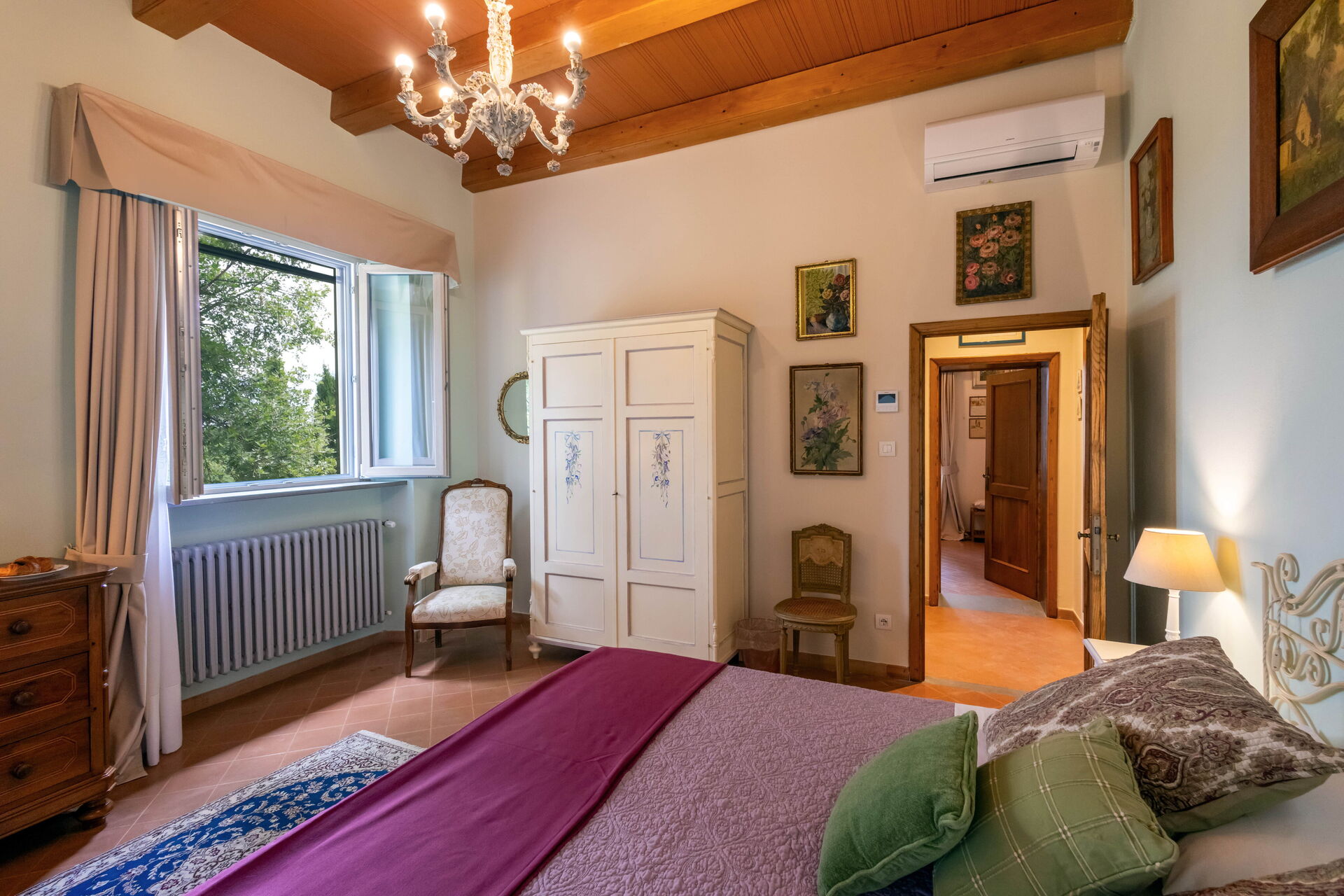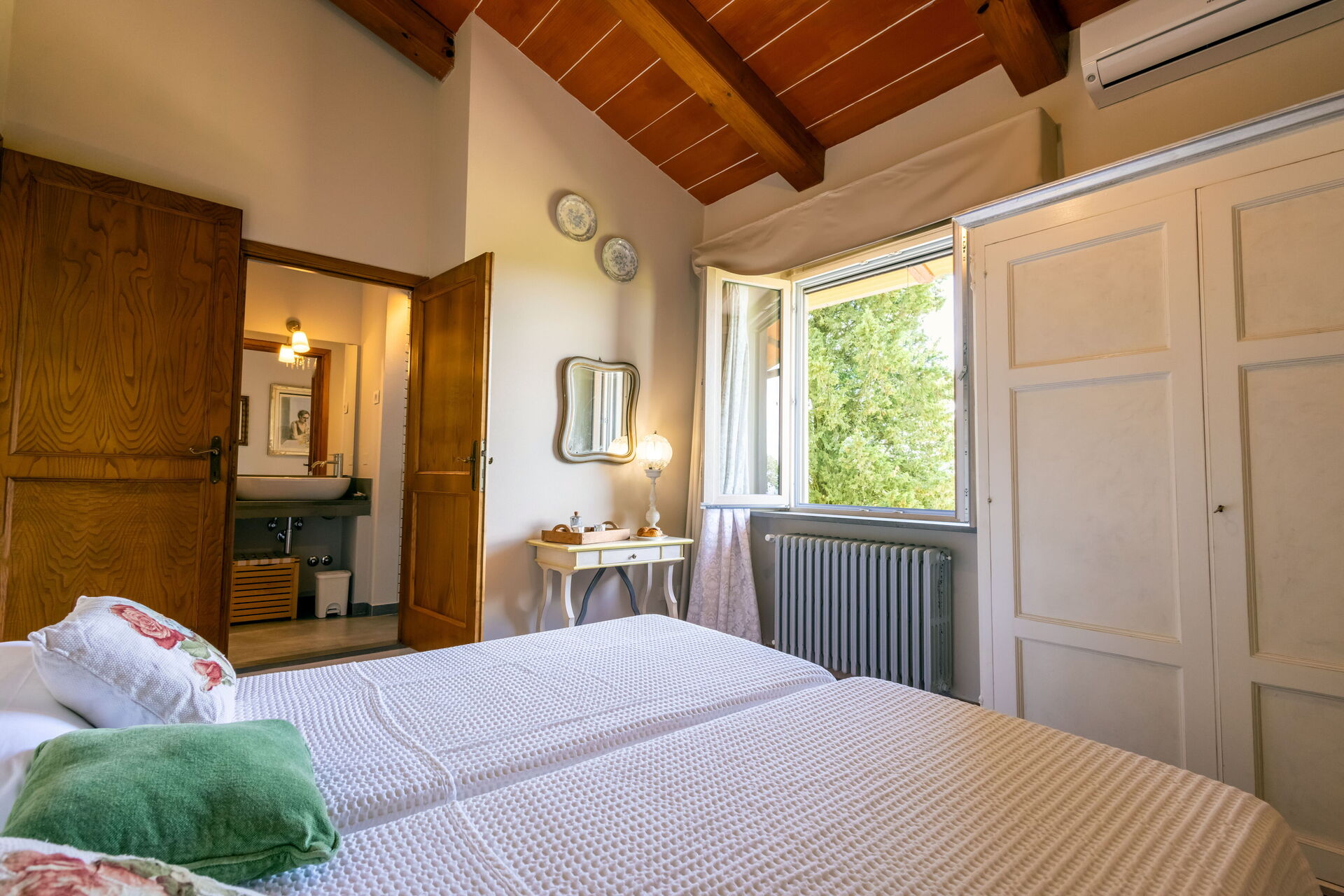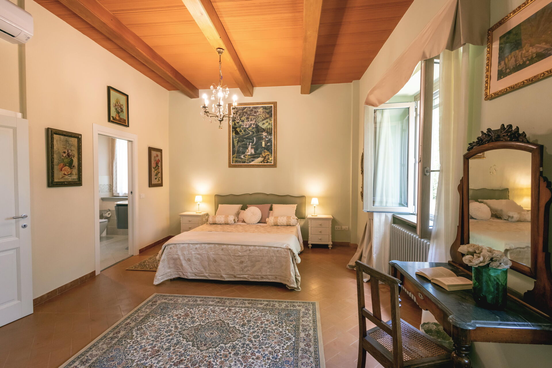 Después de llegar será bienvenido por el propietario u ama de llaves y encontrará una hermosa propiedad limpia y acogedora with views of las colinas and las montañas ideal para unas vacaciones relajantes en Toscana. Después un día pasado haciendo compras, disfrute de una buena copa de vino con sus amigos y su familia al lado de la piscina - lo mejor para relajarse después de un largo día. Para su placer, afuera hay patio y parrilla. Cenar con familia y amigos es un aspecto de gran importancia en la cultura toscana. Aproveche de una cocina bien equipada para preparar comidas utilizando productos locales durante sus vacaciones. La cocina incluye cafetera, microondas, toaster, estufas y nevera, además de, muchas vajillas y cubiertos para hasta 14 personas. Come 'al fresco' como un local, la veranda es el lugar perfecta para disfrutar de la comida, la compañía y el hermoso clima toscano.