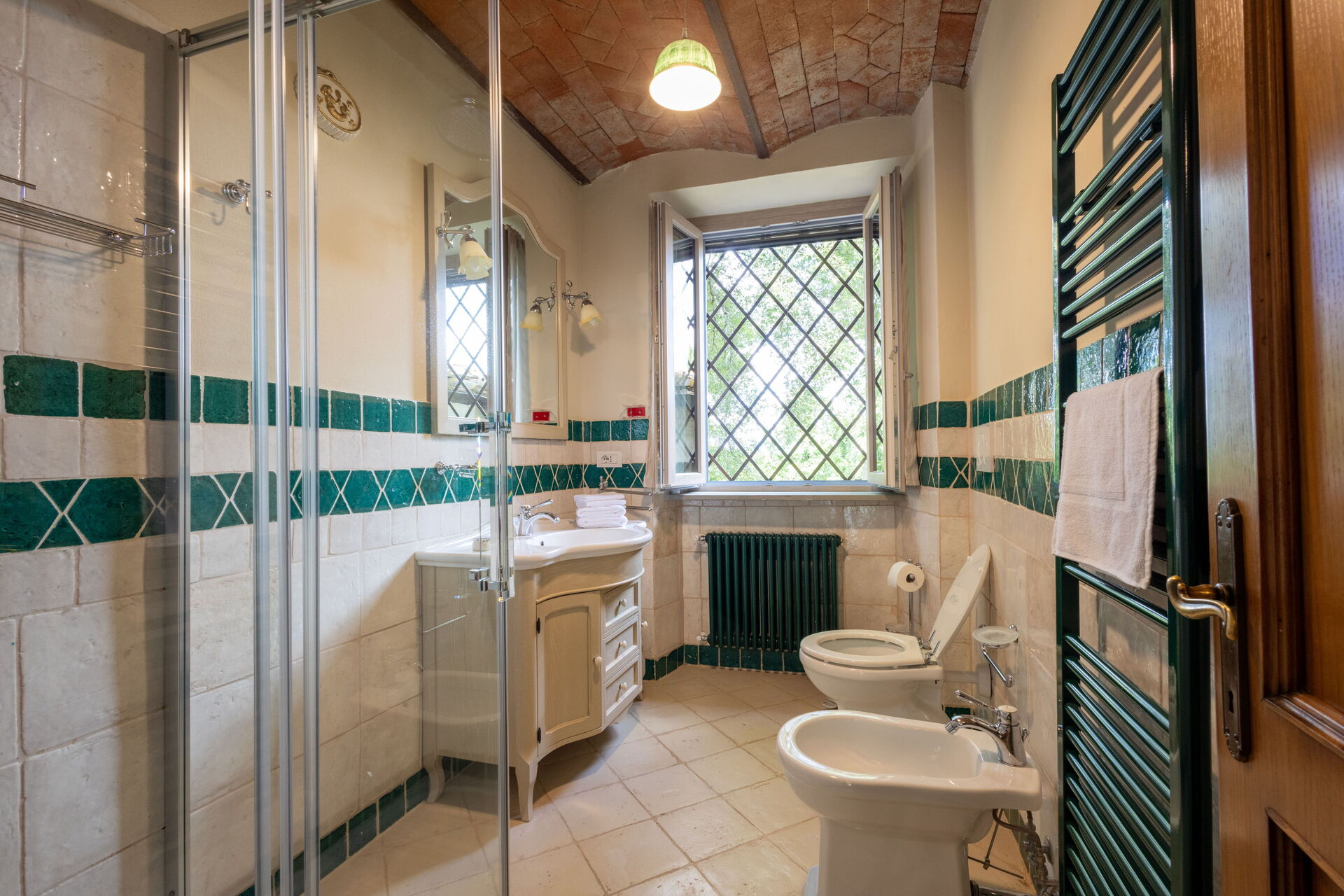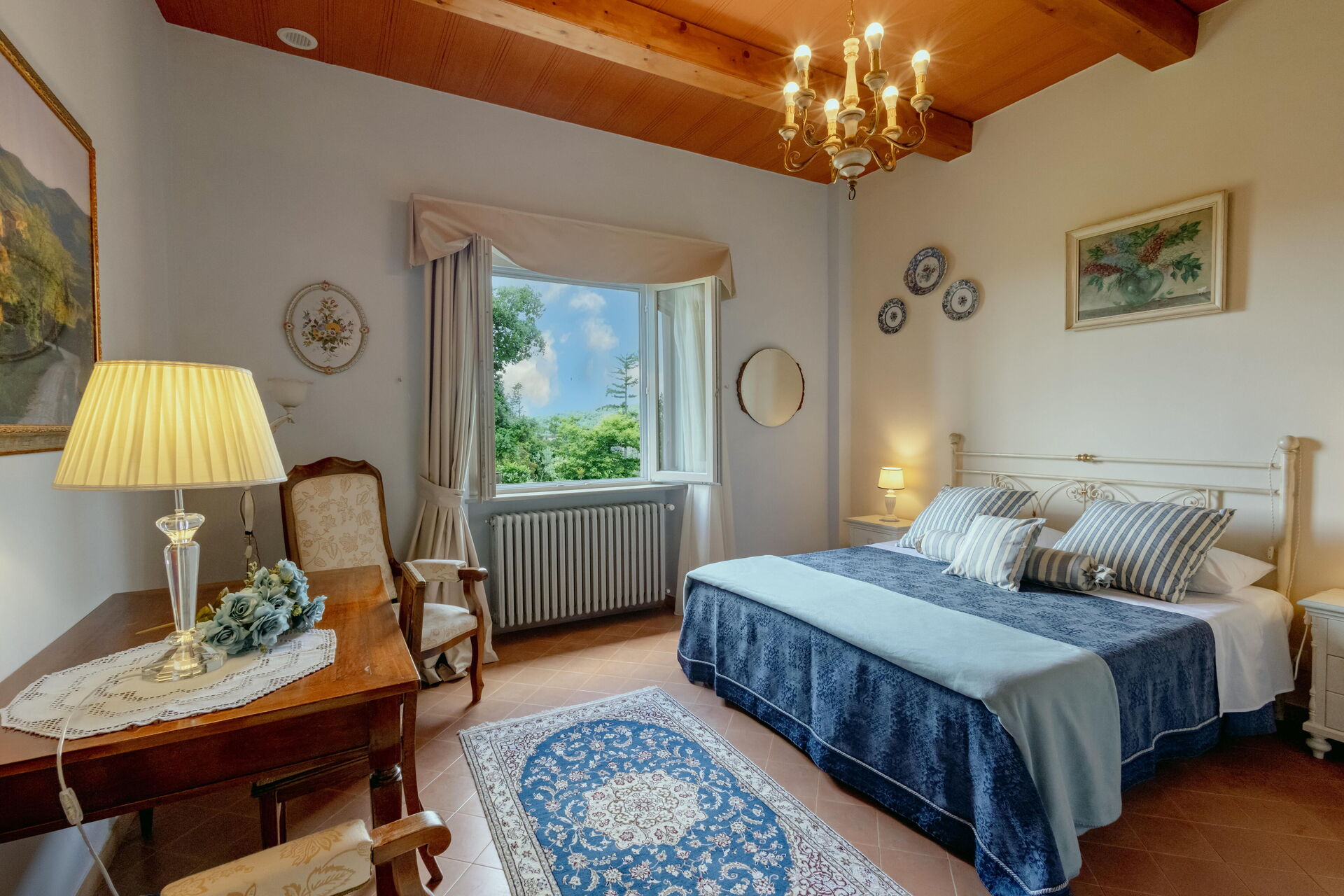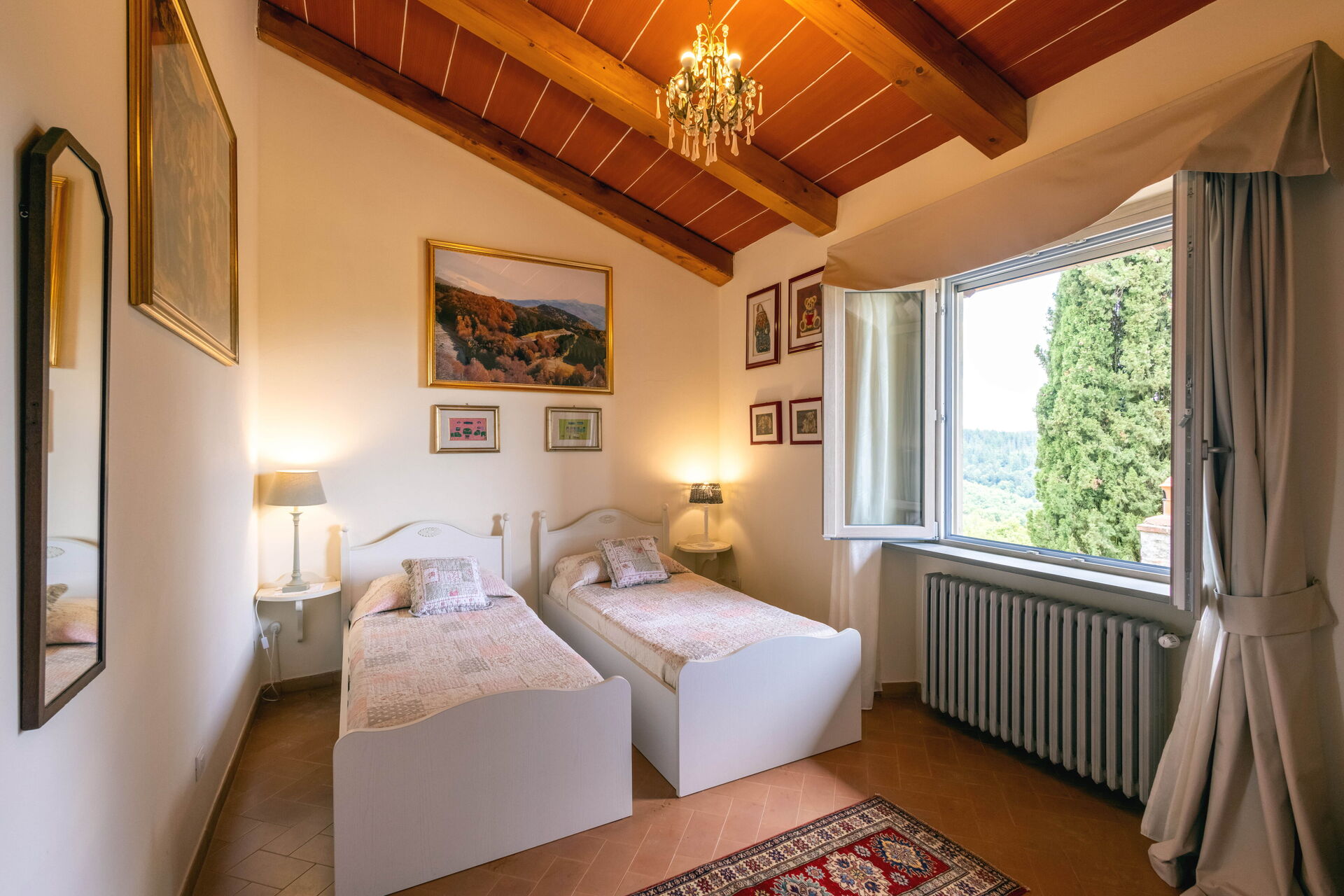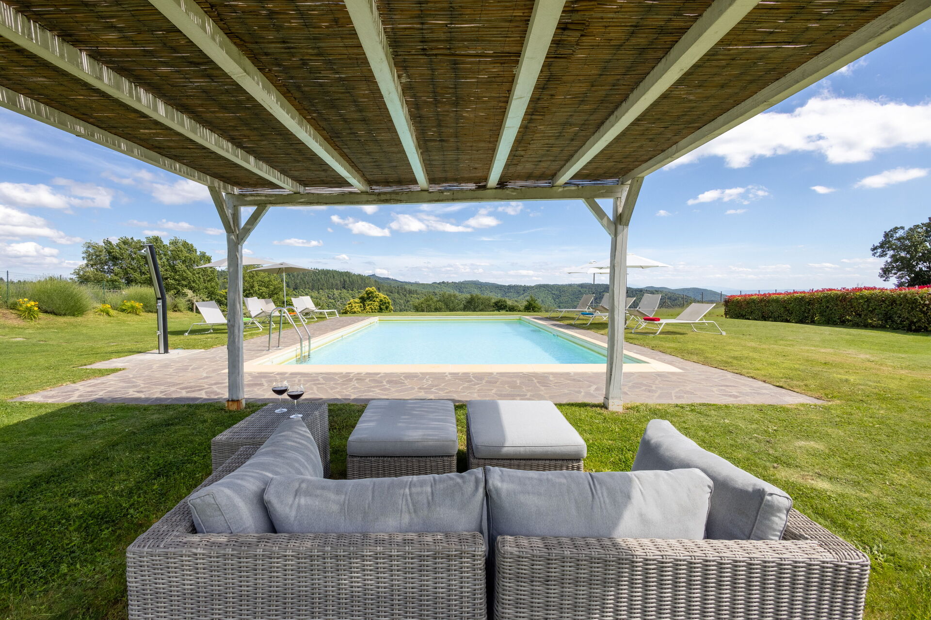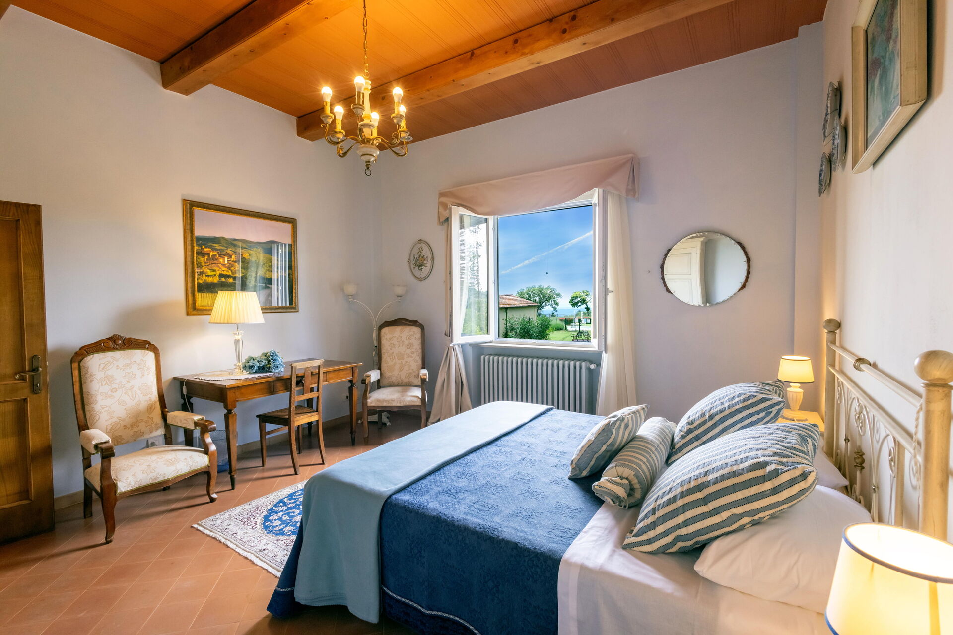 Después de llegar será bienvenido por el propietario u ama de llaves y encontrará una hermosa propiedad limpia y acogedora with views of las colinas and las montañas ideal para unas vacaciones relajantes en Toscana. Después un día pasado haciendo compras, disfrute de una buena copa de vino con sus amigos y su familia al lado de la piscina - lo mejor para relajarse después de un largo día. Para su placer, afuera hay patio y parrilla. Cenar con familia y amigos es un aspecto de gran importancia en la cultura toscana. Aproveche de una cocina bien equipada para preparar comidas utilizando productos locales durante sus vacaciones. La cocina incluye cafetera, microondas, toaster, estufas y nevera, además de, muchas vajillas y cubiertos para hasta 14 personas. Come 'al fresco' como un local, la veranda es el lugar perfecta para disfrutar de la comida, la compañía y el hermoso clima toscano.