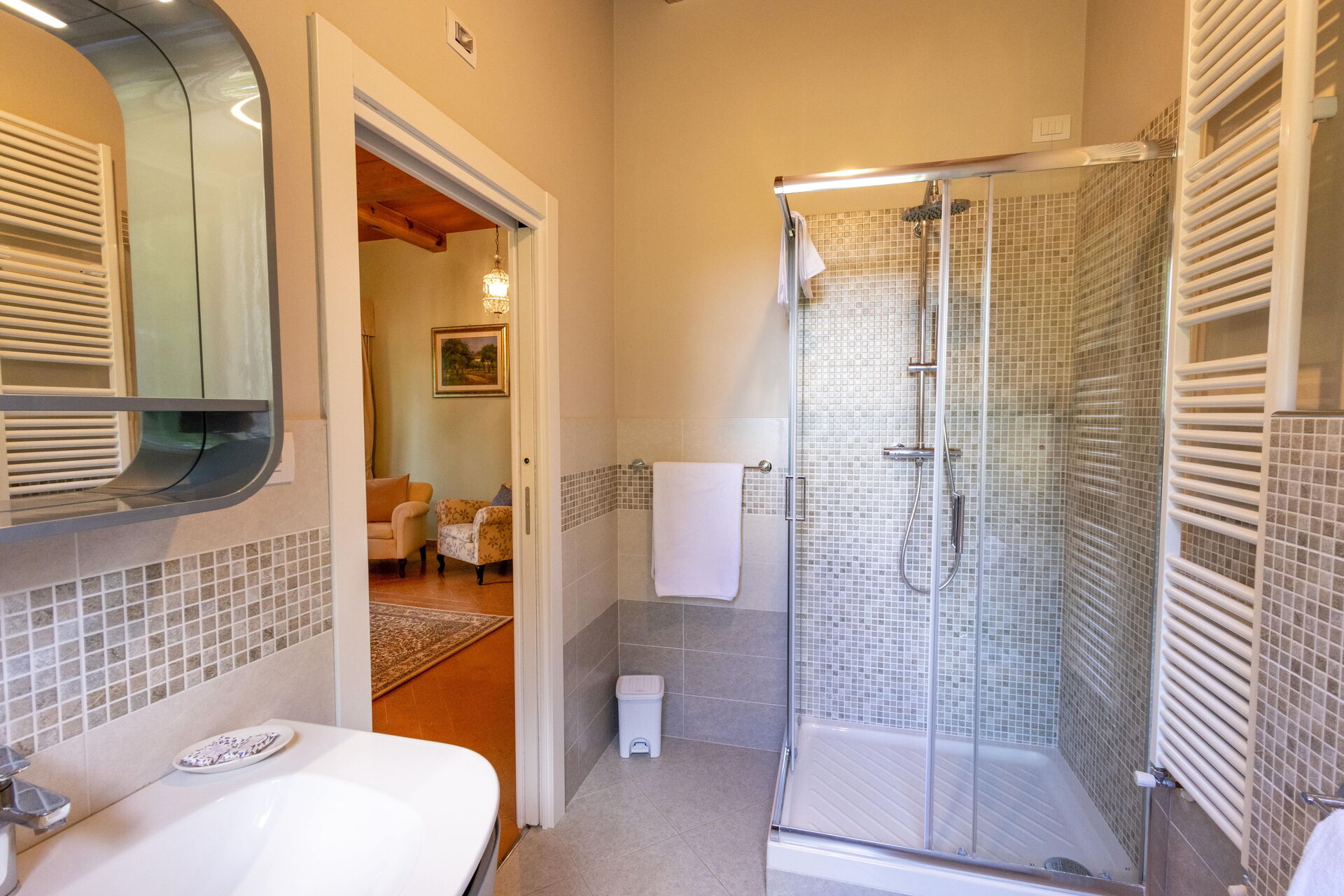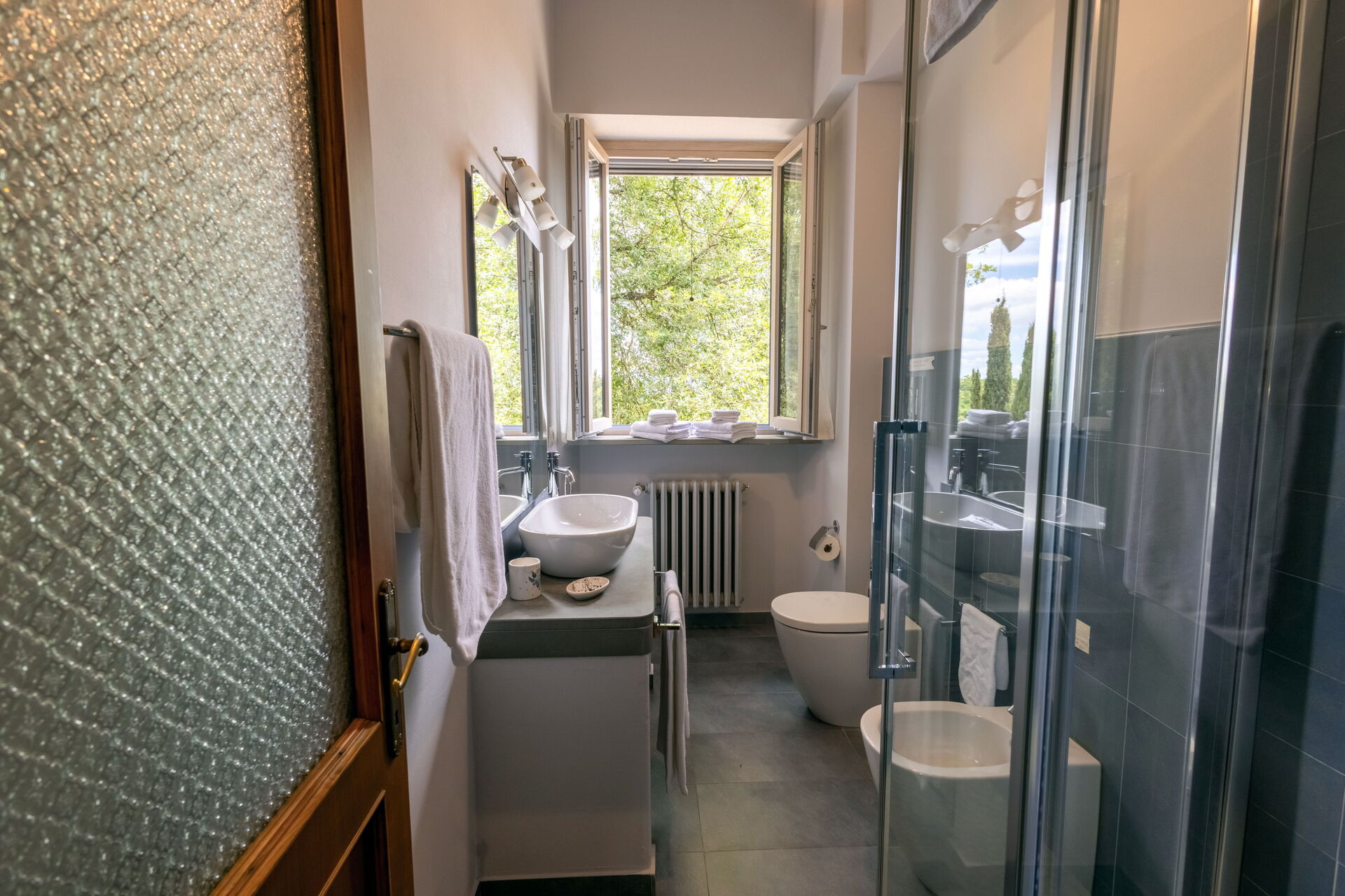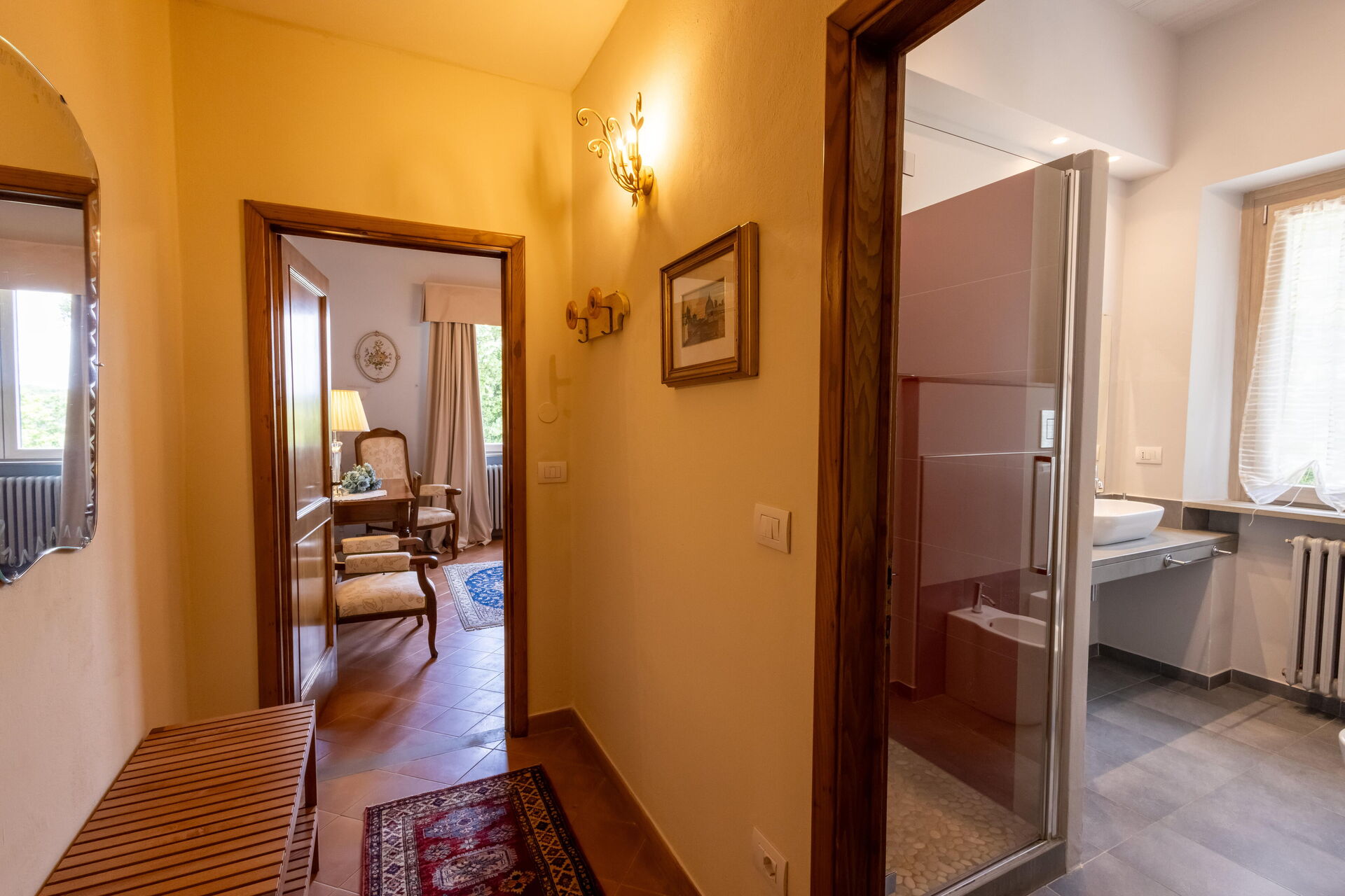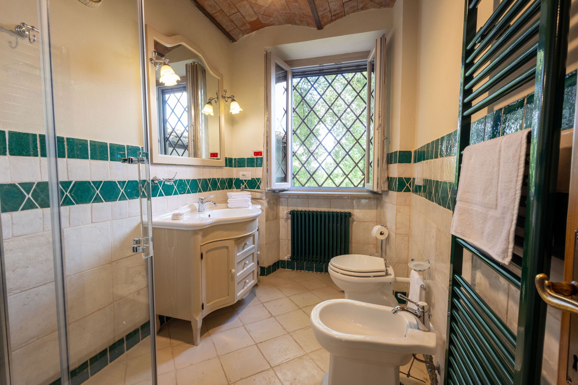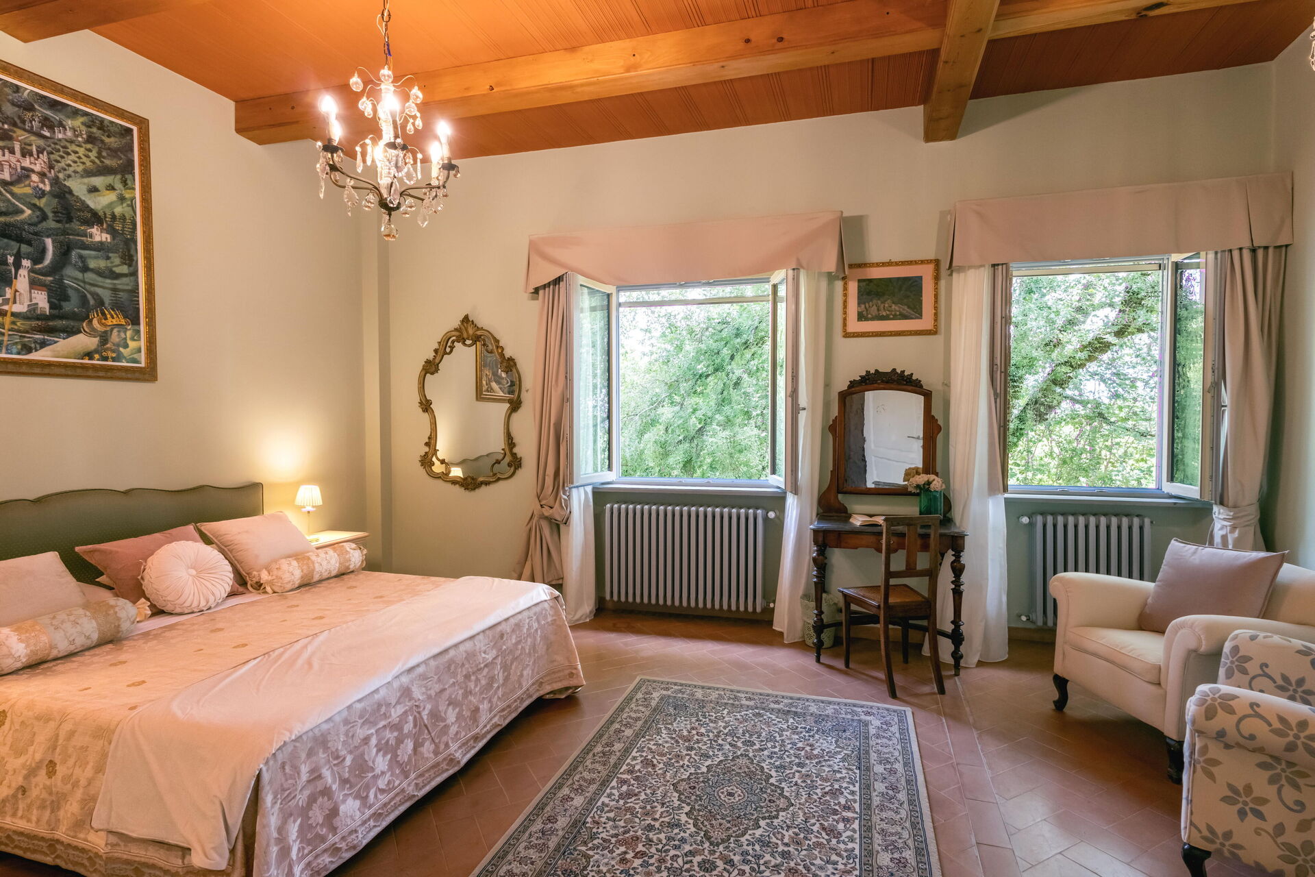 Después de llegar será bienvenido por el propietario u ama de llaves y encontrará una hermosa propiedad limpia y acogedora with views of las colinas and las montañas ideal para unas vacaciones relajantes en Toscana. Después un día pasado haciendo compras, disfrute de una buena copa de vino con sus amigos y su familia al lado de la piscina - lo mejor para relajarse después de un largo día. Para su placer, afuera hay patio y parrilla. Cenar con familia y amigos es un aspecto de gran importancia en la cultura toscana. Aproveche de una cocina bien equipada para preparar comidas utilizando productos locales durante sus vacaciones. La cocina incluye cafetera, microondas, toaster, estufas y nevera, además de, muchas vajillas y cubiertos para hasta 14 personas. Come 'al fresco' como un local, la veranda es el lugar perfecta para disfrutar de la comida, la compañía y el hermoso clima toscano.