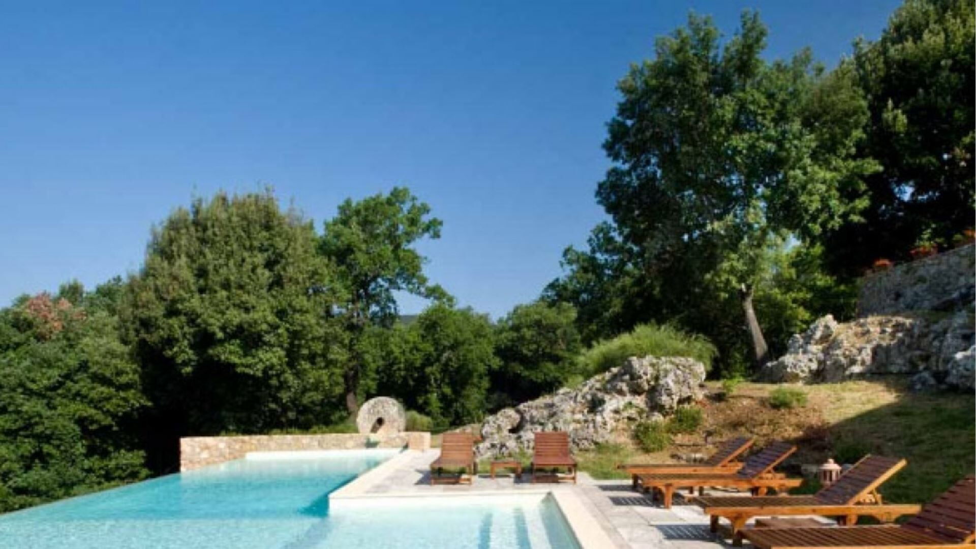 Los espacios exteriores de esta notable propiedad están diseñados para maximizar su disfrute del impresionante paisaje toscano. La pieza central es una espectacular piscina infinita de 4,5 por 13 metros, situada sobre una terraza de travertino que se integra perfectamente con el entorno rocoso natural circundante y ofrece vistas espectaculares de la Montagnola Senese. Una fuente de agua fresca fluye continuamente en la piscina, proporcionando un agua maravillosamente cristalina y un refrescante masaje natural para la espalda. Unos escalones desde el salón descienden al jardín inferior y al parque, donde encontrará terrenos bellamente ajardinados con pérgolas y múltiples terrazas perfectas para relajarse y cenar al aire libre. Una terraza cubierta da al patio, accesible desde el rellano superior, mientras que otra pequeña terraza amueblada junto al comedor ofrece vistas al bosque y al granero. El salón de la planta baja se abre a través de puertas francesas a una terraza de estilo zen con vistas a la piscina, ideal para disfrutar de cócteles por la noche y los últimos rayos de sol. El granero cuenta con una terraza pavimentada a la que se accede a través de dos grandes puertas, perfecta para cenar al aire libre. Los servicios exteriores adicionales incluyen una zona de barbacoa, un horno externo de leña para pan y pizza, y un espacio verde con pérgola, todo realzado por iluminación de seguridad y ambiental en todos los terrenos.