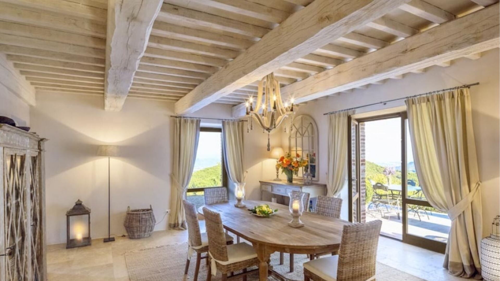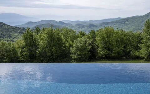Villa Santa es una villa de vacaciones de lujo situada en la cima de Monte Santa Croce dentro de una exclusiva finca umbra cerca de Perugia, Italia. Esta residencia impecablemente restaurada ofrece una ubicación extraordinaria con vistas de 360 grados de la finca circundante y la ondulante campiña umbra. Una de las propiedades más impresionantes de la finca, Villa Santa cautiva a los huéspedes con su refinado diseño interior y su espectacular piscina infinity climatizada que parece flotar sobre el valle de Murlo. La villa proporciona alojamiento elegante para viajeros exigentes que buscan un retiro tranquilo en una de las regiones más hermosas de Italia. Hay aparcamiento disponible en la propiedad, y los huéspedes pueden acceder a la villa a través de un camino de grava de 3 kilómetros apto para vehículos estándar y automóviles 4x4.