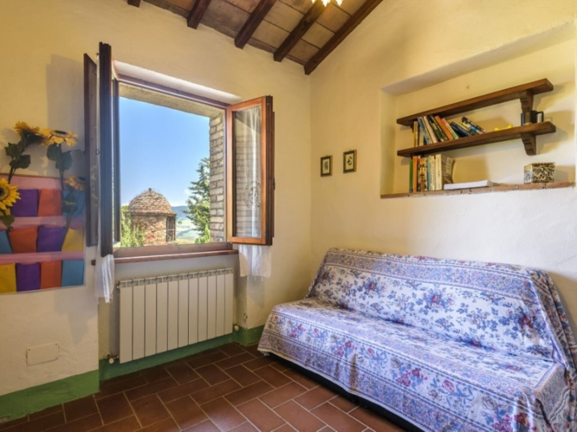 Podere del Mezzadro disfruta de una posición privilegiada a aproximadamente 1 km de la localidad de Contignano, proporcionando fácil acceso a servicios locales mientras mantiene un entorno rural tranquilo. La ubicación elevada de la propiedad en la cima de la colina ofrece magníficas vistas que abarcan desde el Monte Amiata hasta las colinas de Pienza, permitiéndole apreciar el paisaje distintivo de la región de Val d'Orcia. Las colinas circundantes cultivadas de cereales crean un panorama típicamente toscano, situándole al alcance de las reconocidas atracciones de la zona, pueblos históricos y la célebre región vinícola.
