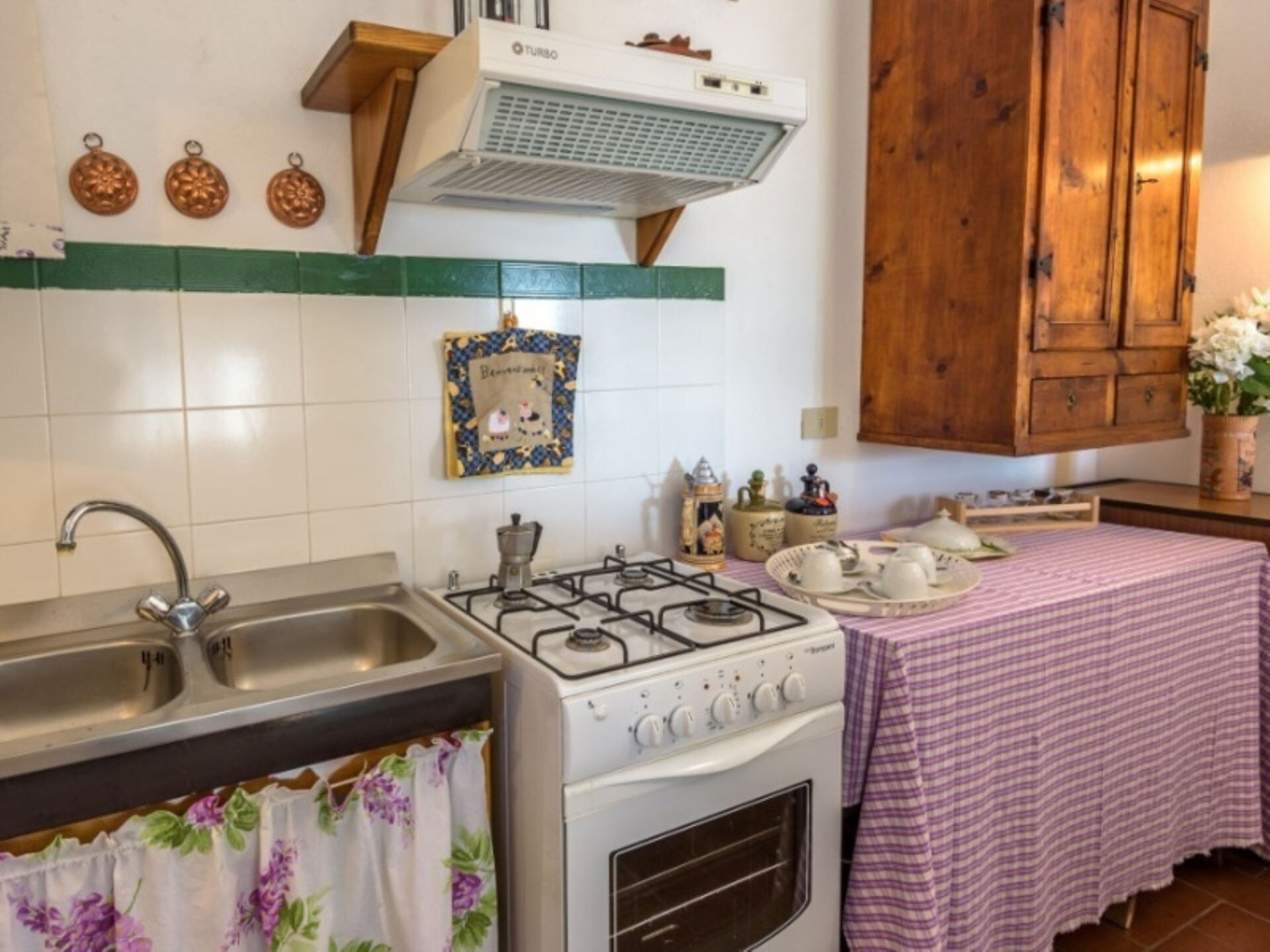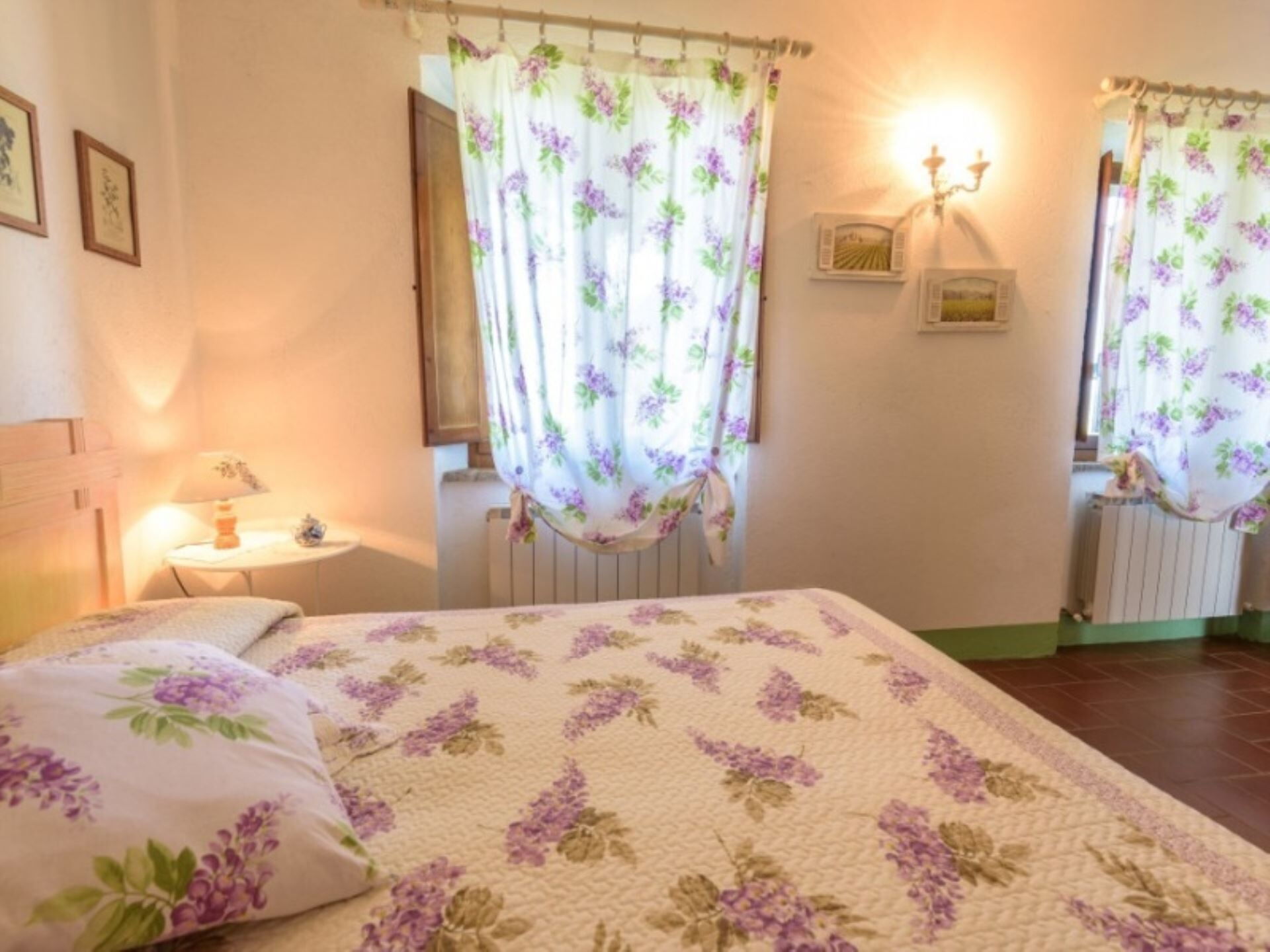 La casa de labranza tiene una capacidad máxima de 11 huéspedes distribuidos en 5 apartamentos independientes llamados Glicine, Lavanda, Oleandro, Lilla y Geranio, ofreciendo un total de 5 dormitorios y 5 baños en toda la propiedad. El apartamento Geranio está ubicado en la segunda planta e incluye un amplio salón con zona de comedor, cocina, baño con ducha, dormitorio doble y pequeño estudio. El apartamento Lillà ocupa la segunda planta e incluye un amplio salón con zona de comedor, cocina, baño con ducha, dormitorio doble y dormitorio individual, con acceso a una terraza amueblada con mesa y sillas. El apartamento Lavanda en la planta baja comprende un salón con amplia cocina americana, zona de comedor, dormitorio doble, estudio, baño con ducha y un trastero. El apartamento Glicine, también en la planta baja, consta de un salón con cocina americana, dormitorio doble, baño con ducha y un trastero. El apartamento Oleandro, creado a partir de la renovación del antiguo cobertizo, contiene un salón con zona de comedor, cocina, baño con ducha, dormitorio doble y pequeño estudio.