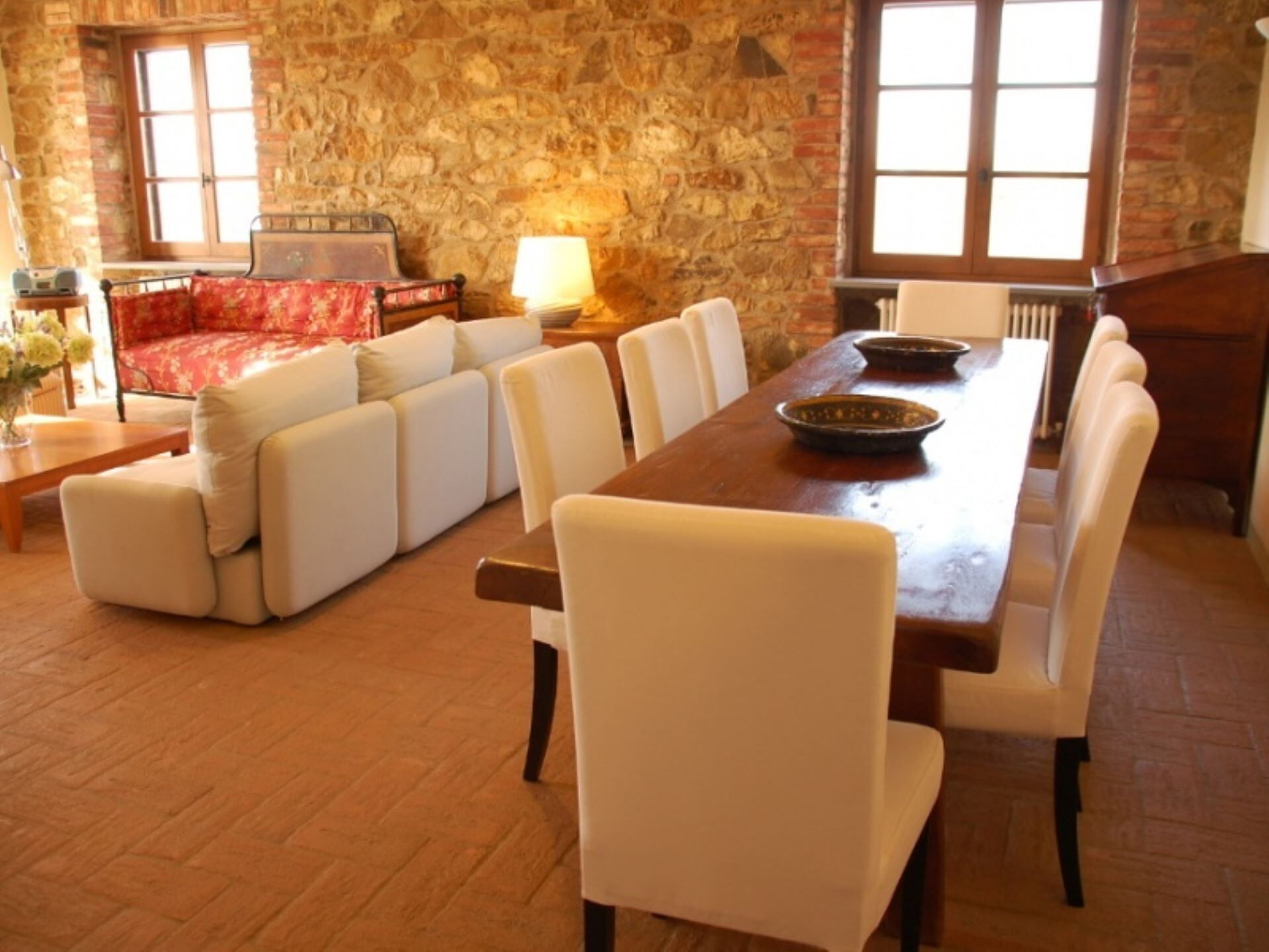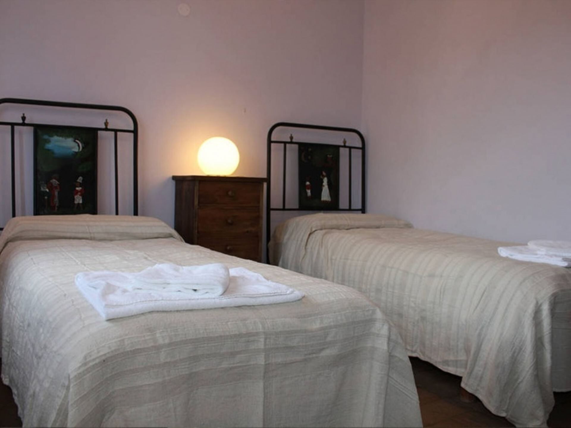 La villa independiente tiene una capacidad máxima de 10 huéspedes en el edificio principal y 4 huéspedes adicionales en el cottage. La propiedad ofrece 5 dormitorios y 5 baños distribuidos en las dos estructuras. El edificio principal aloja a 8 más 2 huéspedes y cuenta con un amplio salón con chimenea en la planta baja, con dos puertas que conducen a la terraza cubierta y al jardín. La planta baja también contiene una espaciosa cocina de estilo rústico con encimera de mármol y una chimenea barbacoa, un dormitorio doble con vestidor y acceso al jardín, un baño con ducha y un cuarto de lavandería separado. La primera planta del edificio principal comprende 2 dormitorios dobles y 1 dormitorio doble, con una zona de estar entre los dormitorios amueblada con un cómodo sofá cama doble. Esta planta también incluye 2 baños, uno equipado con ducha y el otro con bañera. El cottage aloja a 2 más 2 huéspedes y tiene una amplia entrada que conduce a una extensa área de estar con cocina abierta, caracterizada por techos muy altos con ladrillos y vigas a la vista. El dormitorio principal tiene vistas al olivar, con un baño adyacente que cuenta con ducha. Una escalera de caracol asciende a un hermoso altillo con techo parcialmente bajo, que contiene una cama individual y una de medida de una plaza y media. La misma escalera de caracol desciende a la planta inferior donde se encuentra un cuarto de lavandería con lavadora y un segundo baño con ducha.