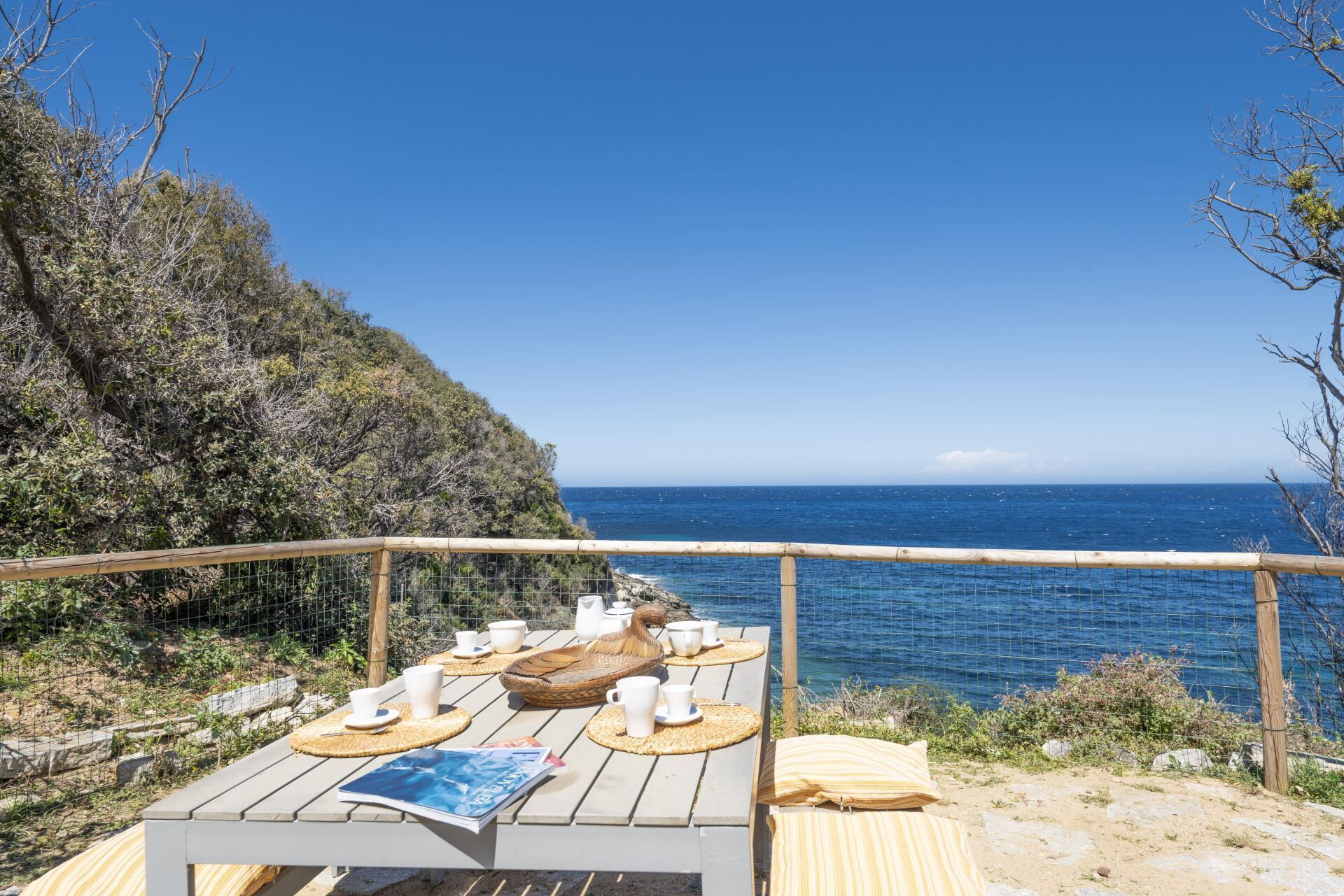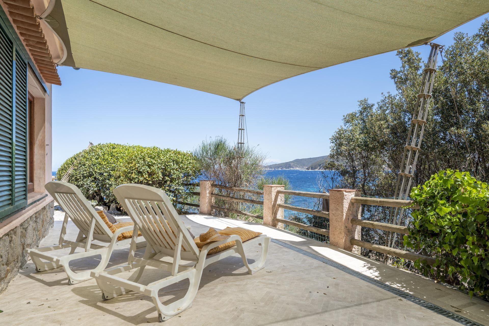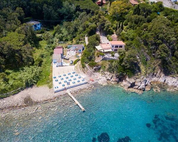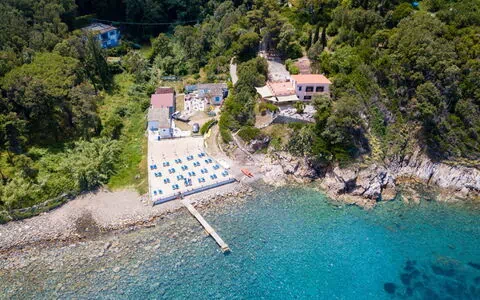 La villa está rodeada por un magnífico jardín mediterráneo que abarca más de 10.000 metros cuadrados, proporcionando amplio espacio para relajación y actividades al aire libre. Puede acceder al mar directamente desde la propiedad a través de una entrada privada, ofreciendo una comodidad incomparable para nadar y disfrutar del ocio junto al mar. La residencia cuenta con una amplia terraza panorámica amueblada con cómodas tumbonas, una mesa de comedor y sillas, permitiéndole saborear cada momento al aire libre mientras escucha el relajante sonido de las olas. La terraza ofrece impresionantes vistas al Golfo de Procchio y sirve como un lugar ideal para cenar al aire libre o simplemente disfrutar del paisaje costero. Una pequeña playa pública se encuentra cerca, caracterizada por arena natural mezclada con grava y rocas, creando una atmósfera tranquila y pacífica. Esta playa cuenta con un establecimiento de playa privado que opera un servicio de buffet frío y snack bar para su comodidad.