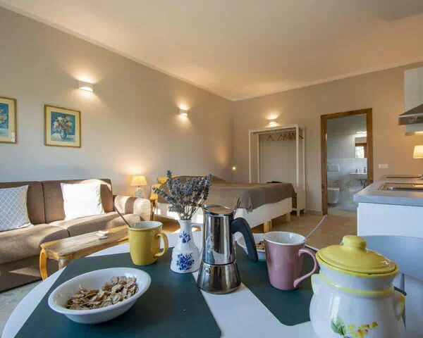 "Lavanda", estudio Loft en la planta baja. Con mobiliario moderno y de buen gusto: salón-comedor con 1 sofá-cama y aire acondicionado. 1 dorm. doble. Salida al jardín. Cocina (horno, 4 Placas de inducción, tostadora, hervidor de agua eléctrico, microondas). Ducha/bidet/WC. Calefacción. Muebles de terraza, tumbonas. Vista lejana bonita al jardín. El alojamiento dispone de: lavadora, trona, secador de pelo. Internet (Wifi). Permitido máximo 1 mascota / perro. IT048019C2KG90FH7Y